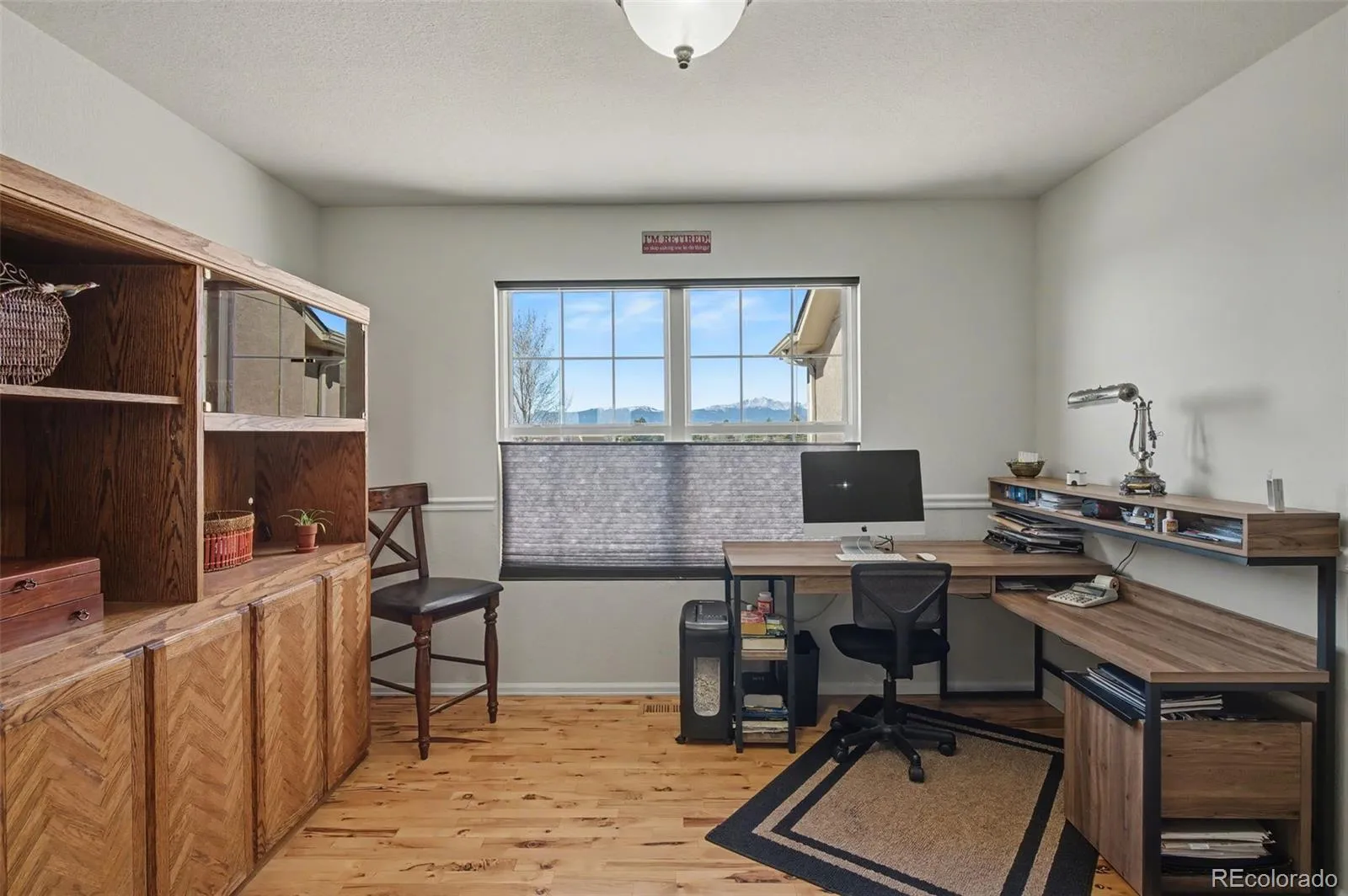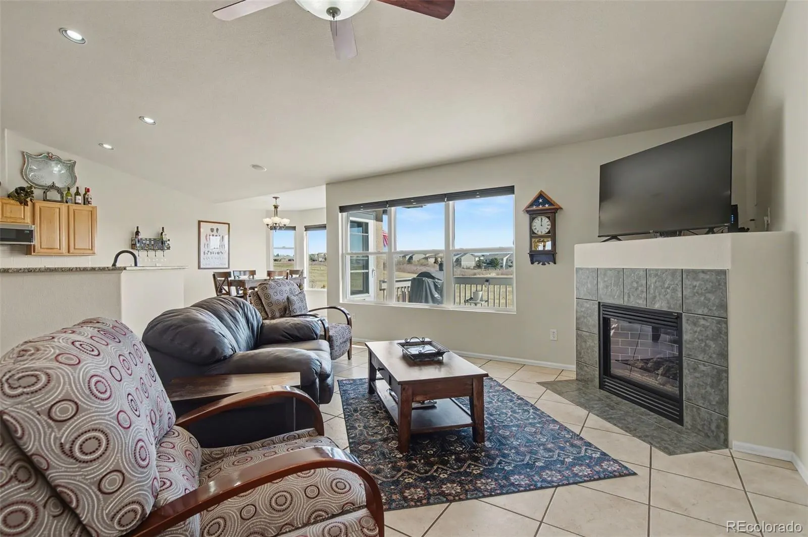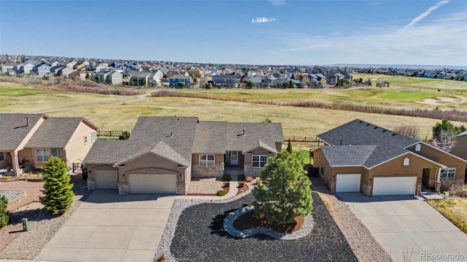 Golf course living with Pikes Peak views—this one stands out. Ranch-style home in Woodmen Hills sitting right on tee box #5 of Antler Creek Golf Course. This 5 bed, 3 bath home features a functional layout with a formal dining room that can also serve as an office. Kitchen includes granite countertops and stainless steel appliances. Spacious master suite offers a sitting area, updated bath, and walk-in closet. Enjoy a large backyard and spacious deck perfect for relaxing, entertaining, or watching golfers come through. Large bonus area in the basement currently used as a craft/work space could be converted into a 6th bedroom or used for storage. Three-car garage provides ample space for vehicles and toys. Many windows feature brand-new panes. Well maintained throughout with consistent upkeep. Enjoy access to two community rec centers and a growing area with new shopping and amenities nearby. Please be advised that the buyer and the buyer’s agent are responsible for verifying the square footage, HOA details, and all other information deemed reliable regarding the property.
