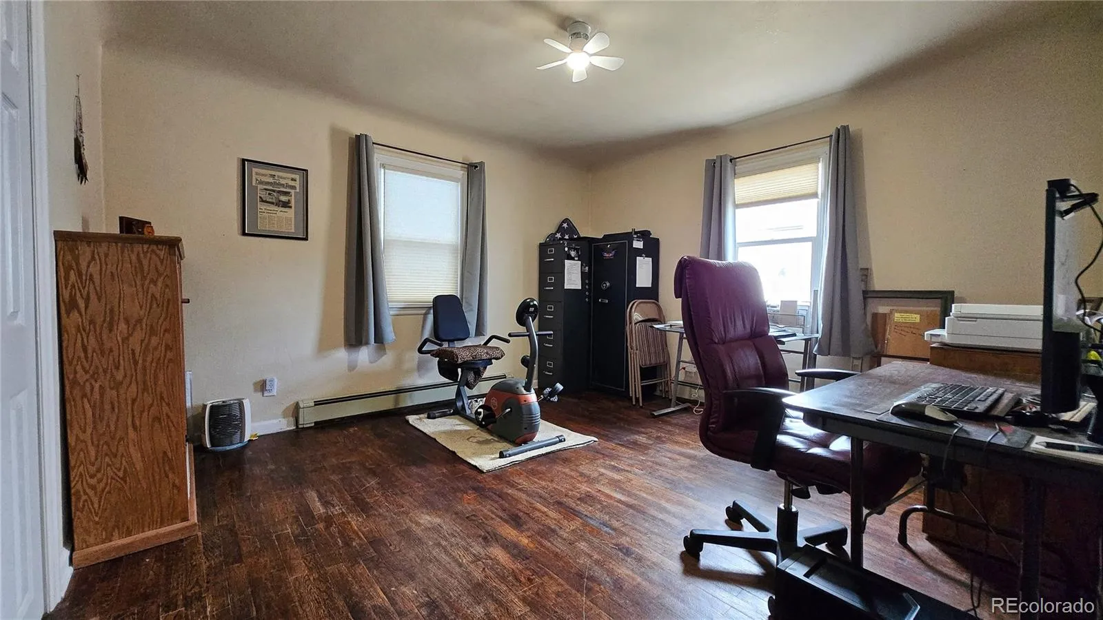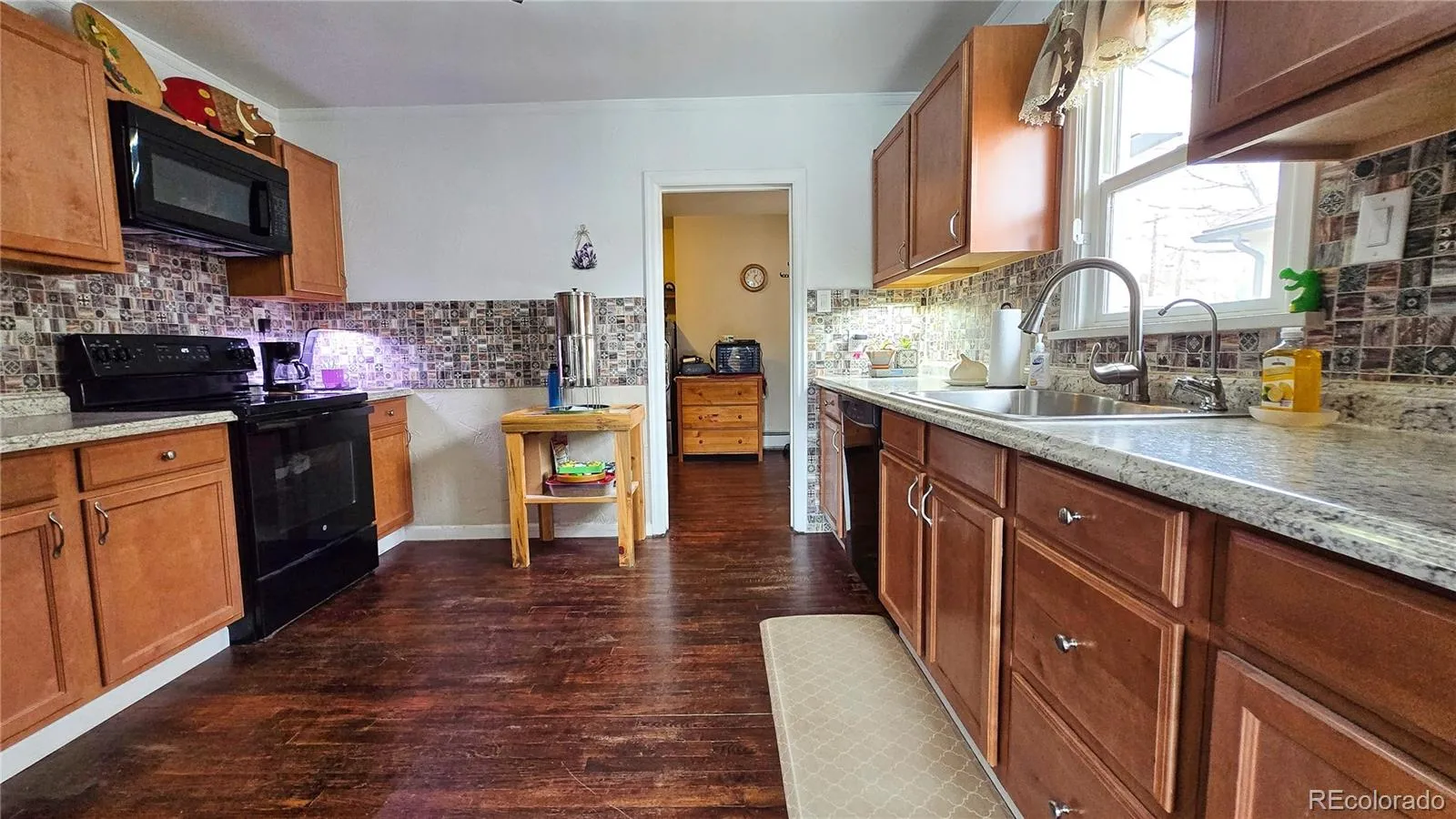 Welcome to this charming and thoughtfully updated 3-bedroom, 1-bath home in Walsenburg, Colorado. This beautiful home blends comfort, efficiency, and low-maintenance living, is move-in ready and filled with practical upgrades. Step inside to welcoming hardwood floors in an open living and dining room carefully crafted with coved ceilings with a vertical reveal. The remodeled kitchen added plenty of cabinets, laminate countertops and full perimeter tile backsplash offering modern finishes and a functional layout perfect for everyday living and entertaining. For more storage off the kitchen you will find a spacious pantry and laundry area. One side of the basement features a versatile bonus room – ideal for a home office, workout space, or additional living area while the other side includes mechanical room with radon mitigation system, shelving and even more storage space. Enjoy peace of mind with energy-efficient upgrades, including a Quiet Cool whole house fan, added insulation in both the attic and basement, as well as Hunter Douglas Energy Star blinds on all the windows to help maintain comfort year-round. Both the front and back yards are fully fenced and xeriscaped, minimizing maintenance while maximizing usability. There’s even a separate, small, fenced dog run along the side of the home – perfect for small pet owners. In the back of the lot is a detached oversized one-car garage accessed by the alley. Schedule your showing today!