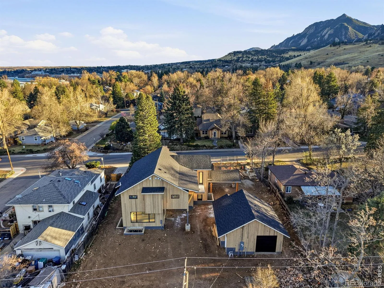 This completely reimagined home sits on nearly 1/3-acre in the coveted lower Chautauqua neighborhood and perfectly blends traditional design with modern features. Nestled near the base of the Flatirons and Historic Chautauqua Park, this location boasts incredible convenience to downtown Boulder, CU, and a vast network of open space trails. The historic integrity of the original 1938 stone cottage has been thoughtfully restored, elevated, expanded, and modernized. That original stone cottage seamlessly blends with a new, contemporary addition, all while honoring its historic roots. Finished home will offer 5 bedrooms (all en-suite) + office, 7 bathrooms, 2-car detached garage, porte cochere & covered back patio with access from both kitchen and living room. You are welcomed by a grand, vaulted entrance with a dedicated sitting area & custom cedar accented walls. The functional and elegant main level offers 9 foot ceilings, dedicated office, solid white oak flooring and gorgeous powder room. Spacious living room has custom built-ins, gas fireplace, & great flow into the dining space and kitchen. The chef’s kitchen boasts Walnut cabinetry, Miele appliances – 48″ gas range, 48″ built-in fridge and coffee system – oversized walnut wrapped island, and large walk-in pantry. Up the gorgeous staircase, you’ll have 3 en-suite guest bedrooms with vaulted ceilings, laundry room, & luxurious primary suite with 14 foot ceilings. The primary retreat features a spa-inspired bathroom with heated floors, steam shower, soaking tub, walk-in closet with generous storage, and balcony. The fully finished basement offers 9 foot ceilings, large family room, half bath, wet bar, 5th en-suite bedroom, and storage room. The oversized, two car garage has alley access with a pull through garage door. Net zero home with dual HVAC systems, 20kW owned solar system, & EV charger in garage. Home also comes pre-wired for Lutron (integrated control of audio, lighting, window shades, & security system).