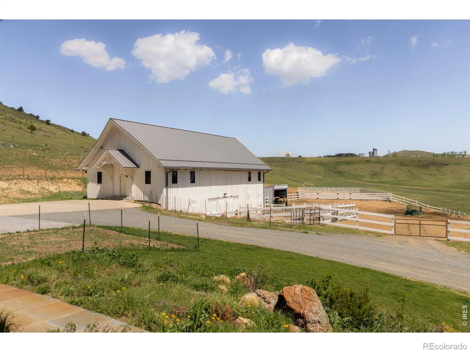 6025 Koda Trail, known as Koda Ranch, is a rare 85-acre luxury estate in the foothills of Golden, Colorado offering exceptional privacy, mountain views, and a one-of-a-kind combination of luxury living, acreage, and equestrian amenities with direct access to White Ranch Park trails. The five-bedroom, seven-bath main residence blends natural materials and thoughtful design with reclaimed hardwood floors, painted tongue-and-groove ceilings, soaring windows, and a striking stone fireplace. The chef’s kitchen features Colorado Yule Marble countertops, a 5-foot galley sink, Sub-Zero appliances, a walk-in pantry with custom cabinetry, and a built-in breakfast nook with easy access to outdoor gathering spaces. The main level includes a serene primary suite with spa-like bath and sliding doors to the outdoors, a private office with balcony, mudroom with custom dog gate, laundry room with new washer and dryer, and an oversized three-car garage. Upstairs, three bedrooms each feature en suite baths, walk-in closets, and sleeping lofts, plus a lofted recreation area and reading nook. The lower level is a full height walk-out level with substantial natural light and functional living spaces. It includes a large secondary primary suite, rec room, butler’s pantry, plenty of storage, and direct access to a stone patio overlooking the land. Steps away, the 6,500+ sq ft recreation center creates a true wellness retreat with a 45-foot indoor pool, basketball and pickleball court, professional gym, yoga room with infrared panels, cedar sauna, cold plunge, lounge with fireplace, and full kitchen with Miele espresso station. A custom timber barn with stalls, paddocks, equipment storage, and a 2-bedroom apartment complements the equestrian facilities, while wells, a spring-fed pond, fruit trees, and panoramic views of North Table Mountain complete this exceptional Golden ranch property just minutes from downtown Golden and within easy reach of Boulder and Denver.