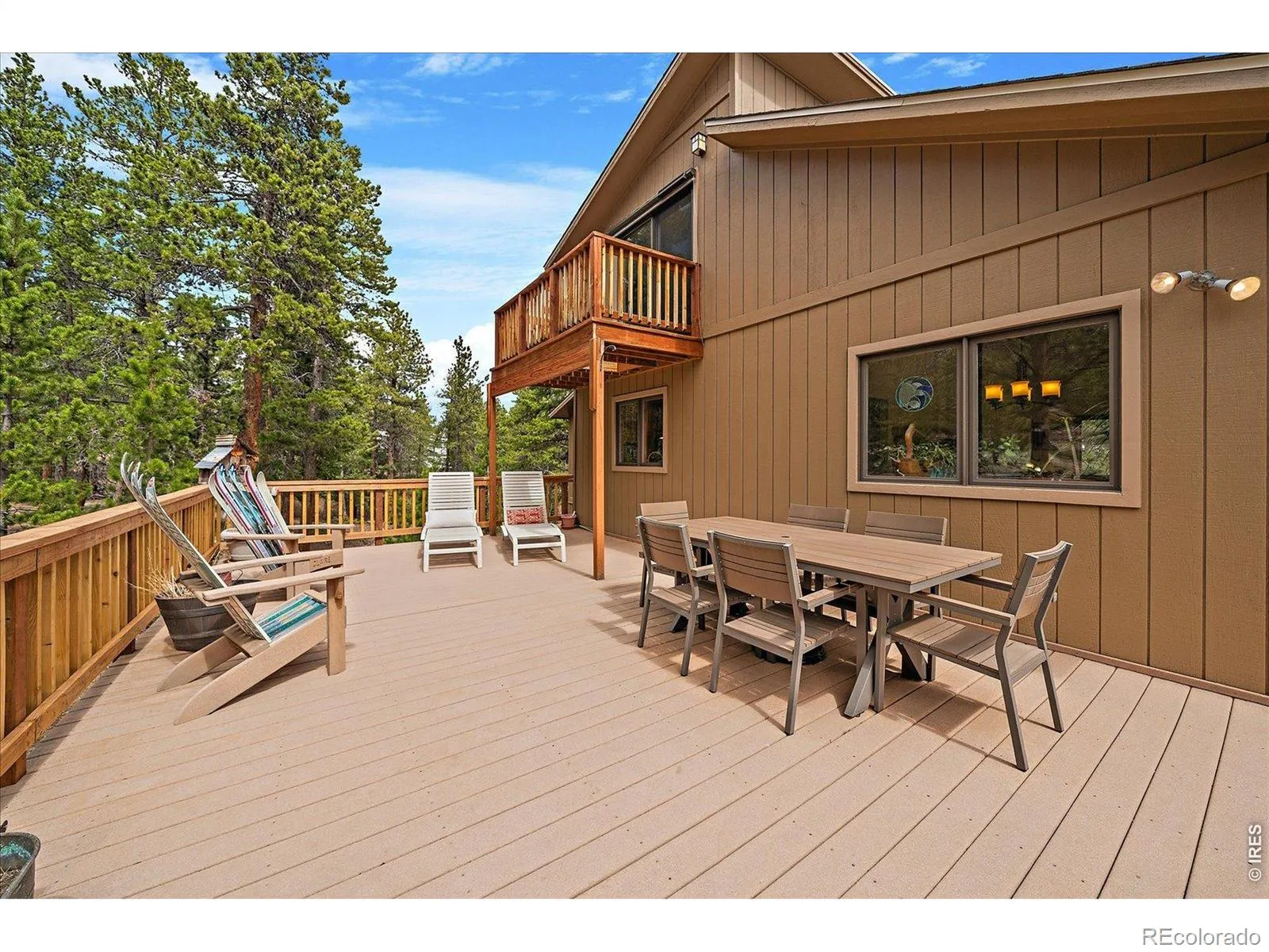 Nestled in the Rockies just 30 minutes from Boulder, Eldora, and Rocky Mountain National Park, this well-maintained home offers the quintessential mountain retreat with vaulted ceilings, abundant natural light from south-facing windows, and seamless indoor-outdoor living. Expansive decking invites you to take in the open sky, fresh alpine air, and views that change with each season. Multiple entry points make everyday living effortless, while the vaulted design enhances the sense of space and comfort. The primary suite occupies its own private level, serving as an exclusive sanctuary with an en-suite bath and a private deck overlooking the pristine National Forest. On the garden level, a bright walk-out family room with an electric fireplace joins a versatile office or additional bedroom, extensive storage, a laundry area and plumbing stubbed for a future bathroom. A separate, private 3-car garage and studio offers 572 square feet of versatile space, ideal for a secluded workspace or creative retreat. Set on 1.4 acres backing directly to the National Forest, the property ensures privacy and forest access. Residents may also join the optional Bar-K Ranch Association (not an HOA!) to enjoy three fishing lakes, stables, hiking trails, and a community garden. Bar-K Ranch is a unique enclave of spacious mountain homes set among rolling forests and open pastures, where residents enjoy a strong sense of community and the serenity of Colorado’s high country. Located near the historic charms of Jamestown and Ward where you will find great food and live music, this home perfectly balances secluded serenity with a vibrant, nature-rooted community. Whether you’re relaxing on the deck at sunset, exploring forested trails, or socializing by one of the neighborhood lakes, this home and community offer a lifestyle deeply rooted in the beauty and adventure of Colorado mountain living.