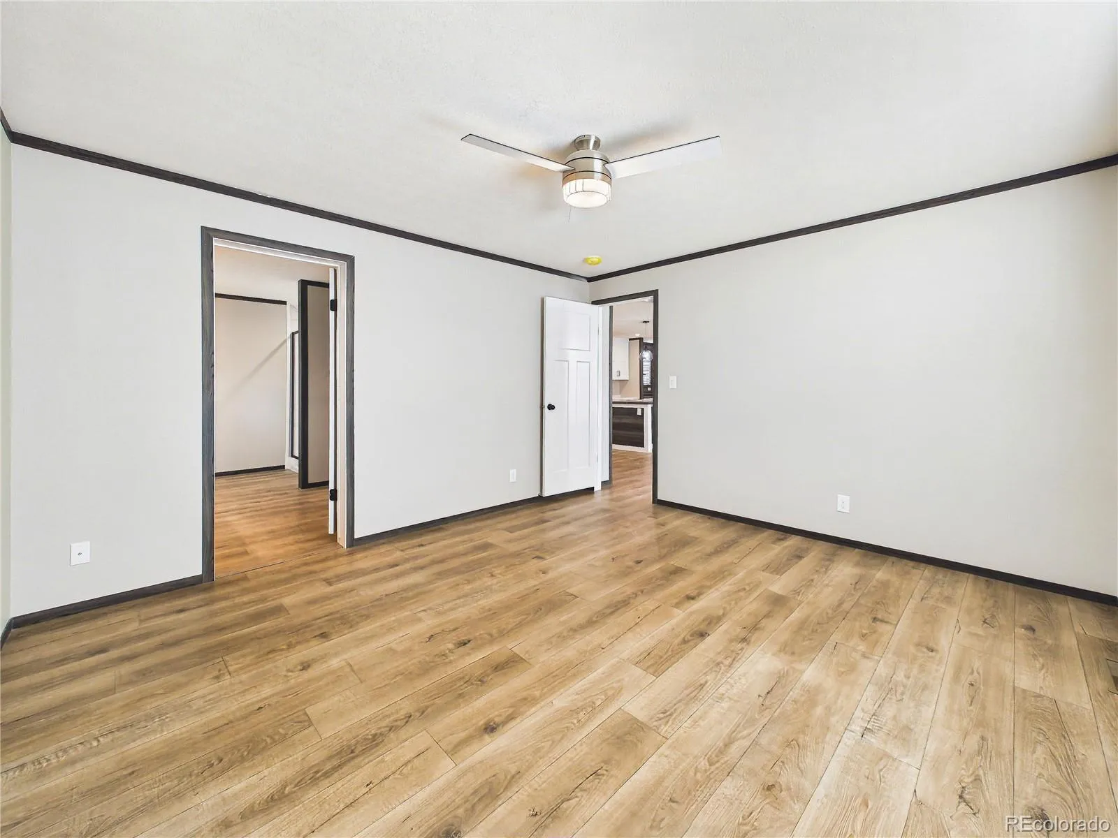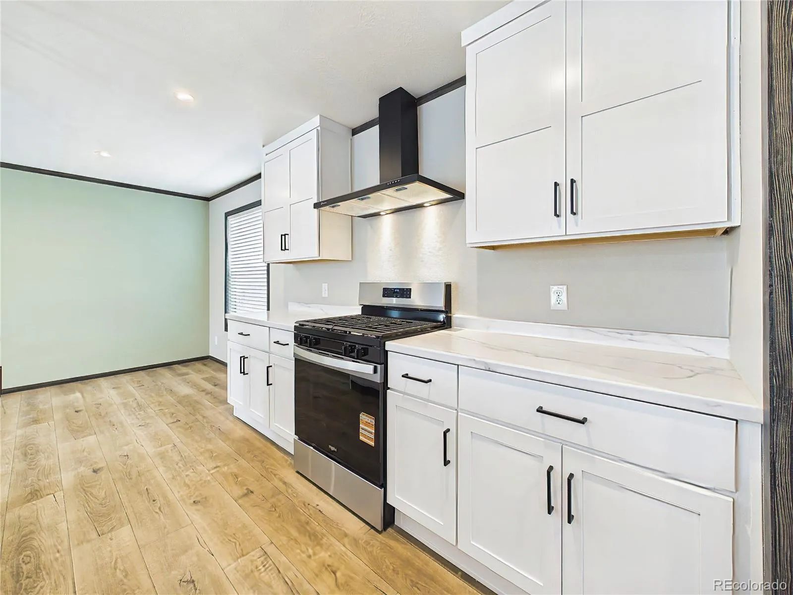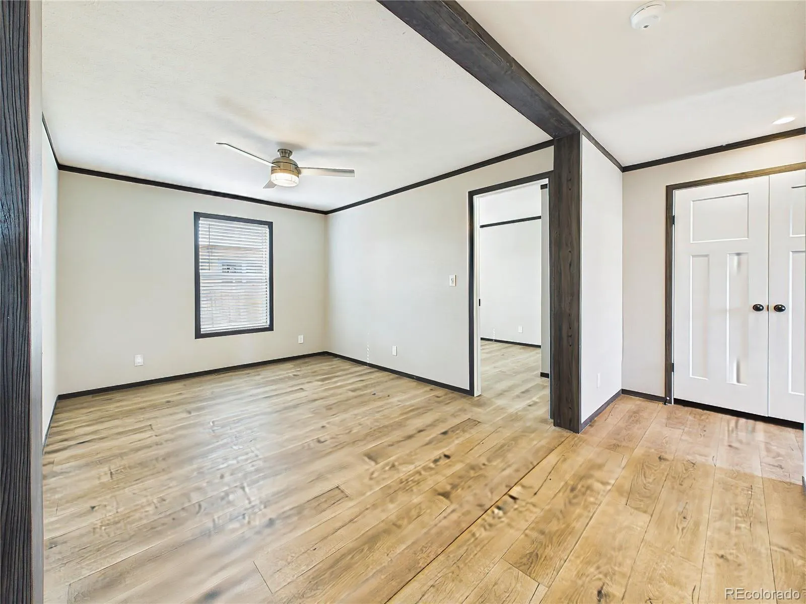 Welcome to this brand-new 4-bedroom, 2-bath ranch-style home located on a spacious corner lot in Pueblo West. Built in 2026, this thoughtfully designed 1,664 square foot home offers a bright and open floor plan with clean lines, modern finishes, and plenty of natural light throughout. The expansive living area features wide-plank wood-style vinyl flooring and flows seamlessly into the kitchen and dining spaces, creating an ideal layout for both everyday living and entertaining. The kitchen is a standout with a large center island, farmhouse-style sink, stainless steel appliances, shaker cabinetry, and pantry for added storage. Just off the kitchen, the cozy dining area is filled with natural light and complemented by a soft green accent wall. The private primary suite includes a walk-in closet and a well-appointed en-suite bath with dual vanities, a glass-enclosed shower, and a private water closet. Three additional bedrooms provide flexibility for guests, a home office, or hobbies, while a second full bathroom features stylish black matte fixtures and a tub/shower combo. A dedicated laundry room with wall-mounted shelving adds convenience and organization. Outside, the home offers excellent curb appeal with its charming red siding, front porch, and mature shade trees. With central air, natural gas heating, and vinyl windows, this home combines comfort and efficiency. Situated in Pueblo West School District 70 and just minutes from local amenities, this move-in ready property is an exceptional opportunity.
