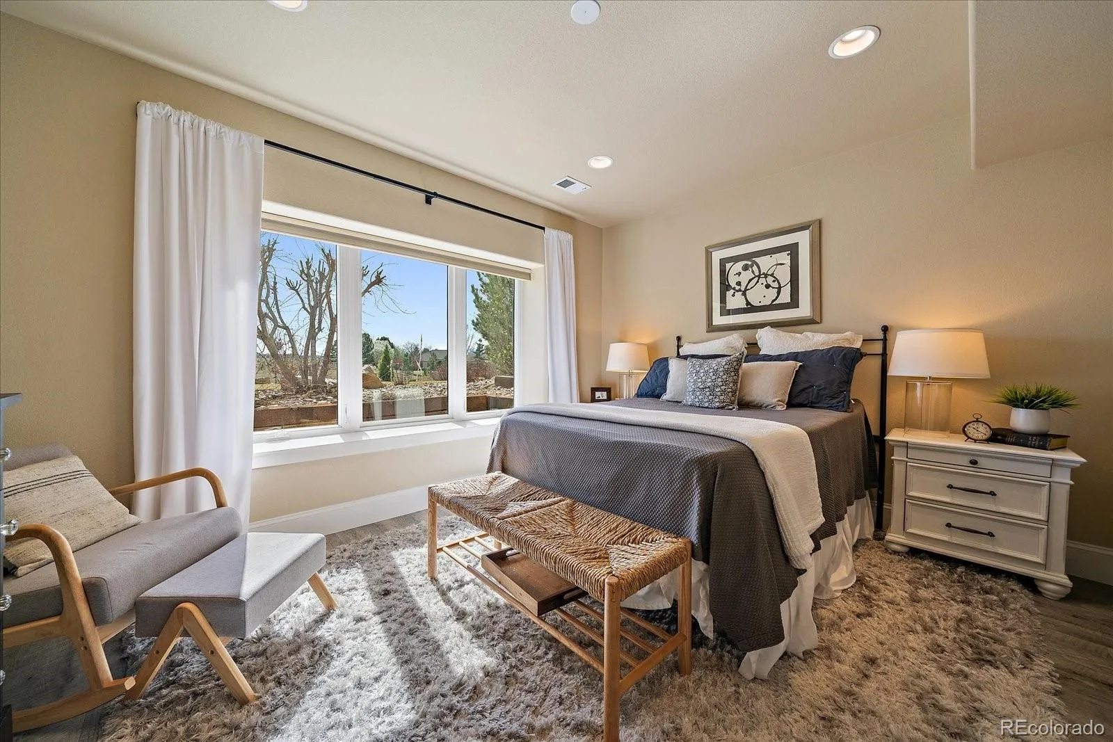 Set on a view-laden .37-acre lot backing to protected open space, this stunning walk-out ranch in coveted High Pointe Estates offers sweeping mountain views, unforgettable sunsets, and a lifestyle designed for effortless living and entertaining. Thoughtfully designed with 5 beds and 5 baths, this mountain modern estate is filled with natural light from Anderson casement windows and elevated by rich hardwood floors, wood beam accents & stone flanked fireplace. The chef’s kitchen is both beautiful and functional, featuring 42” knotty alder cabinetry, quartz countertops, an upgraded KitchenAid appliance package with Dacor cooktop, and a designer-influenced walk-in pantry w/ built-ins + a separate dry bar with bev fridge. The main-level primary suite is a true retreat with patio access, expansive views, and a luxurious 5-piece bath with soaking tub, oversized shower, dual vanities, and a spacious walk-in closet. A main-floor guest suite or study with en suite bath adds flexibility, while the oversized mudroom + a main level laundry and a powder bath enhance everyday ease. The finished walk-out basement impresses with soaring ceilings, open-concept rec spaces, and 3 additional bedrooms—each with walk-in closets, one with its own en suite bath, two share a large dual vanity Jack-and-Jill. Enjoy Colorado living year-round from two covered decks and patio + a serene front courtyard, surrounded by mature landscaping and perennial gardens with sprinkler & drip irrigation. Additional highlights include a finished 4-car garage, dual furnaces, Hunter Douglas window treatments, holiday lighting pre-wire, hot tub pre-wire & dual gas grill hookups. Residents enjoy exclusive amenities including a pool, clubhouse, tennis, trails, and with multiple premier golf courses nearby and I-25 just minutes away for commutes. Rare opportunity for a thoughtfully refined, beautifully maintained home on a premium lot!