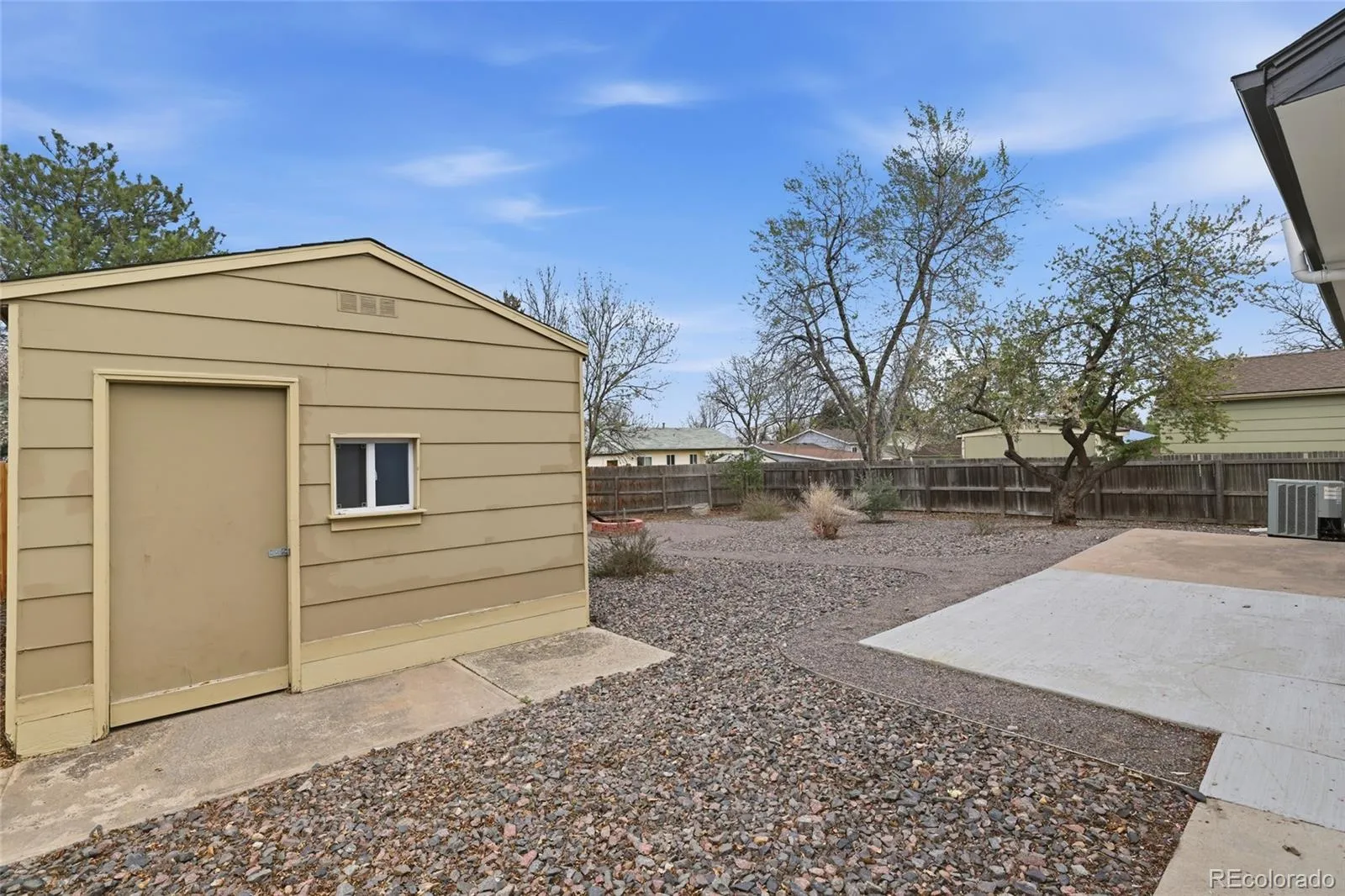 The backyard is landscape-free for low-maintenance living and features a large shed for additional storage, along with a fire pit—perfect for relaxing evenings or entertaining outdoors.