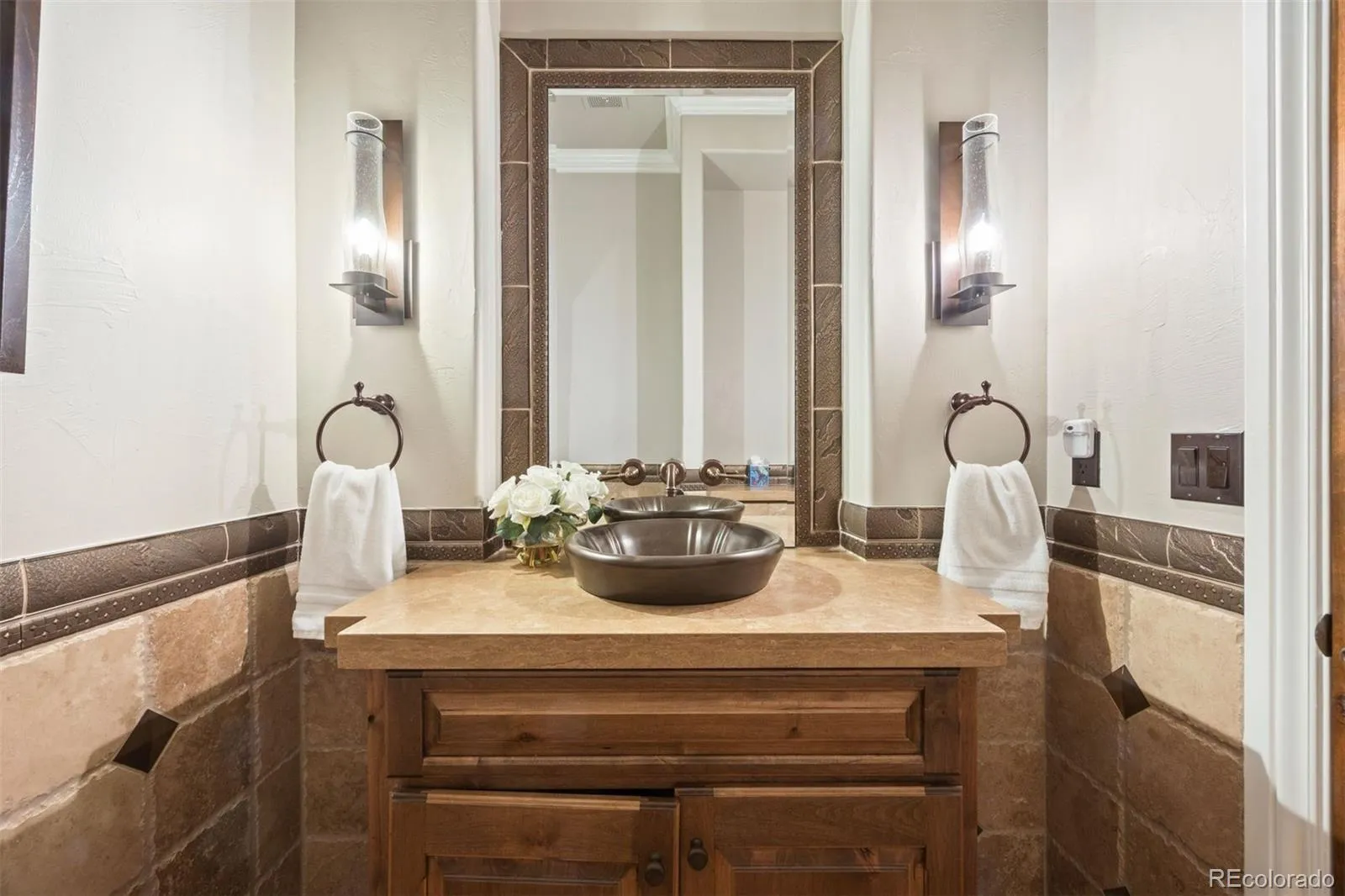 Set on a dramatic, tree-lined cliffside in the coveted Village at Castle Pines, this 4 bedroom | 6 bathroom custom residence captures sweeping mountain views from nearly every vantage point. On entry, your sightline extends through the regal foyer to a wall of glass, where mountain views take center stage. Anchoring the main level, the great room showcases a floor-to-ceiling limestone fireplace, coffered ceilings, and rich wood beam detailing. Nearby, the dining room is capped by crown molding and connects to a well-appointed butler’s pantry with custom cabinets, wine storage, and a Sub-Zero wine fridge. At the heart of the home, the kitchen features knotty alder cabinets, granite counters, a center island, Sub-Zero refrigerator, Wolf 6-burner range, double ovens, and an Asko dishwasher. Just beyond, a warm hearth room with a gas fireplace invites relaxed gatherings, while the breakfast nook opens to the covered deck with a built-in grill. The primary suite offers a coved ceiling, bay window framing mountain views, and another gas fireplace. A custom closet and a beautifully finished bathroom with marble counters, steam shower, and a soaking tub oriented toward the landscape complete the retreat. An opulent office with built-ins, wainscoting, and French doors creates a private workspace while a powder room and well-appointed laundry room add convenience to the main level. The walkout lower level features a spacious family room, double-sided fireplace, and a wet bar. Three additional bedrooms (each with en suite baths), a powder room, and flexible bonus space | gym provide versatility for guests or recreation. Outdoor living unfolds beautifully across covered decks overlooking flagstone patios, tiered waterfall, and a serene natural backdrop. Simply put, this residence pairs exceptional craftsmanship and breathtaking views with a rare combination of traits, enhanced by walkable access to pickle, tennis, a fitness center, restaurants, and shops.