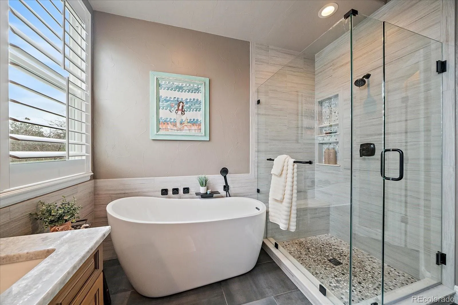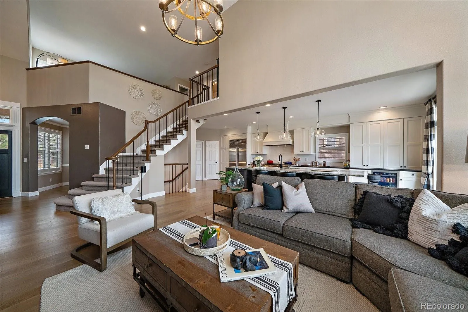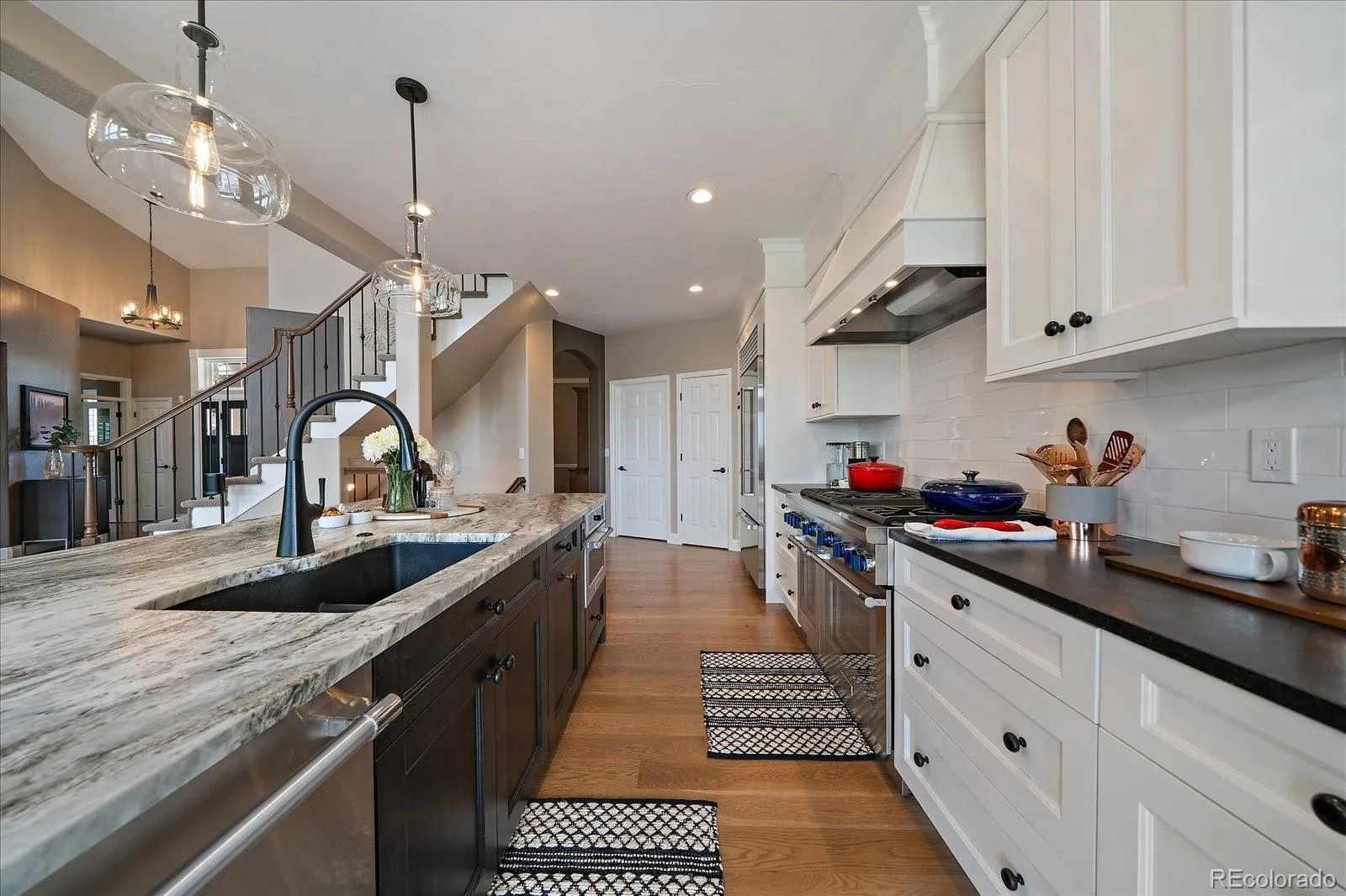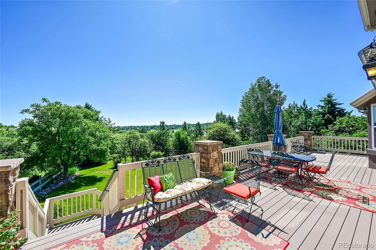 One of the best lots in Glen Oaks, this custom home sits on over 20,000 square feet backing to protected natural open space for true privacy, sunrise views, and no homes looking in. The setting feels like a private retreat with mature trees, natural landscape, a huge back deck, and a large flat lawn for relaxing, entertaining, or playing outside. Inside, the heart of the home is a fully reimagined, enlarged kitchen straight out of a design magazine, custom and one-of-a-kind. It has a Thermador 48 inch gas range with griddle and 6 burners and a Sub-Zero refrigerator, new cabinetry, leathered granite counters with an oversized Dolomite marble kitchen island with ample storage and beautifully appointed finishes. The main level lives easily with a rare primary suite, vaulted great room, formal study, and new 7-inch white oak flooring, while the fully finished walk-out basement adds generous space to spread out. Over $300K–$400K in improvements since ownership include a near-complete cosmetic refresh in the last five years: all new windows and exterior doors, plantation shutters on the main and upper levels, new interior and exterior paint, new carpet, and an updated laundry, dining room and two mini fridges. Outside, thoughtful landscaping adds garden areas, multiple seating zones, a Tough Shed, new painted deck with new stairs, and full irrigation with sprinklers and drip lines. Located in the highly desirable Glen Ridge neighborhood of Castle Pines North, known for custom homes on larger lots with easy access to miles of trails plus both private clubs and The Ridge at Castle Pines North, an award-winning public course, creating the elevated lifestyle that makes this community so sought-after. This home delivers the privacy, livability, and modern craftsmanship rarely found in one package.