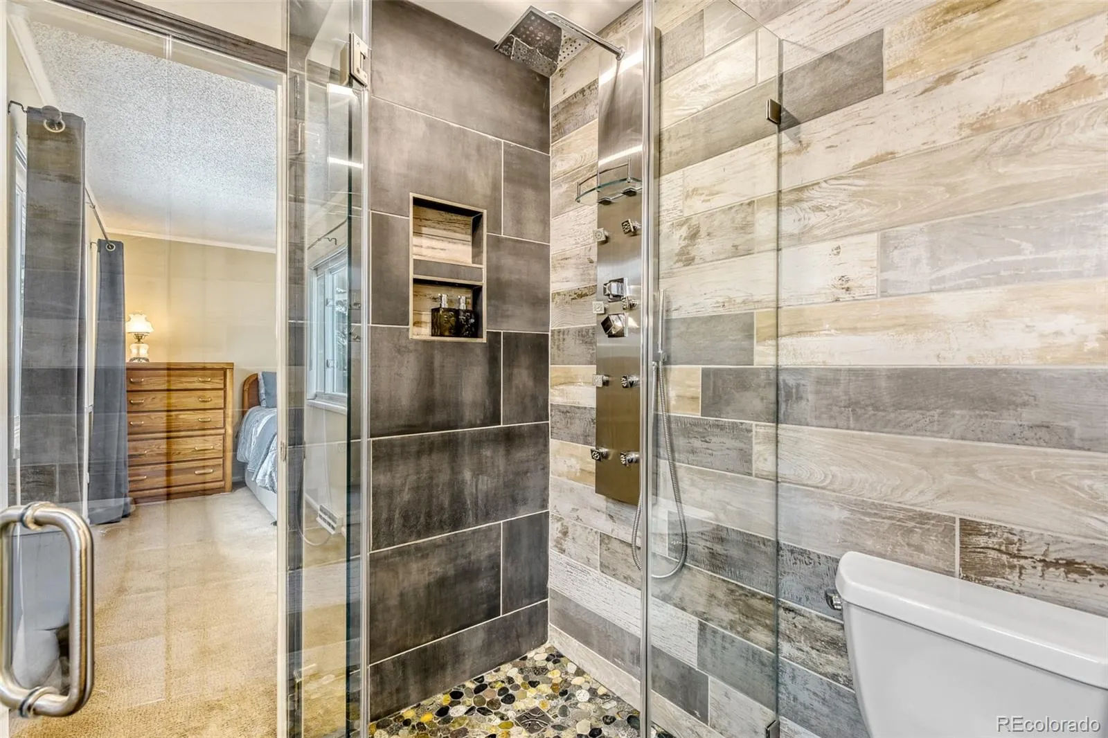 Welcome Home! Owners pride shows throughout! This Littleton GEM can be yours in the sought after Goldenwest Park neighborhood! ** NO HOA’s ** BACKS TO OPEN SPACE W/MOUNTAIN VIEWS ** CORNER LOT ** This home features a beautifully updated kitchen including gas stove top, double ovens, stainless steel appliances, eat in space, media center with built-in indoor/outdoor speakers and TV. Concerned about storage space? Look no more! The home chef will not be disappointed with the kitchen storage! Two bedrooms upstairs PLUS the dining room was originally a bedroom which, if needed, could be easily converted back. The primary bathroom has been updated and provides a spa like experience with a multiple spray head shower wall and a ceiling heating system to keep you warm on those chilly days. Basement includes an egress window recently installed and is room adjacent to the current non-conforming bedroom + ¾ bathroom + family room w/electric fireplace = cozy guest or family member living space!
