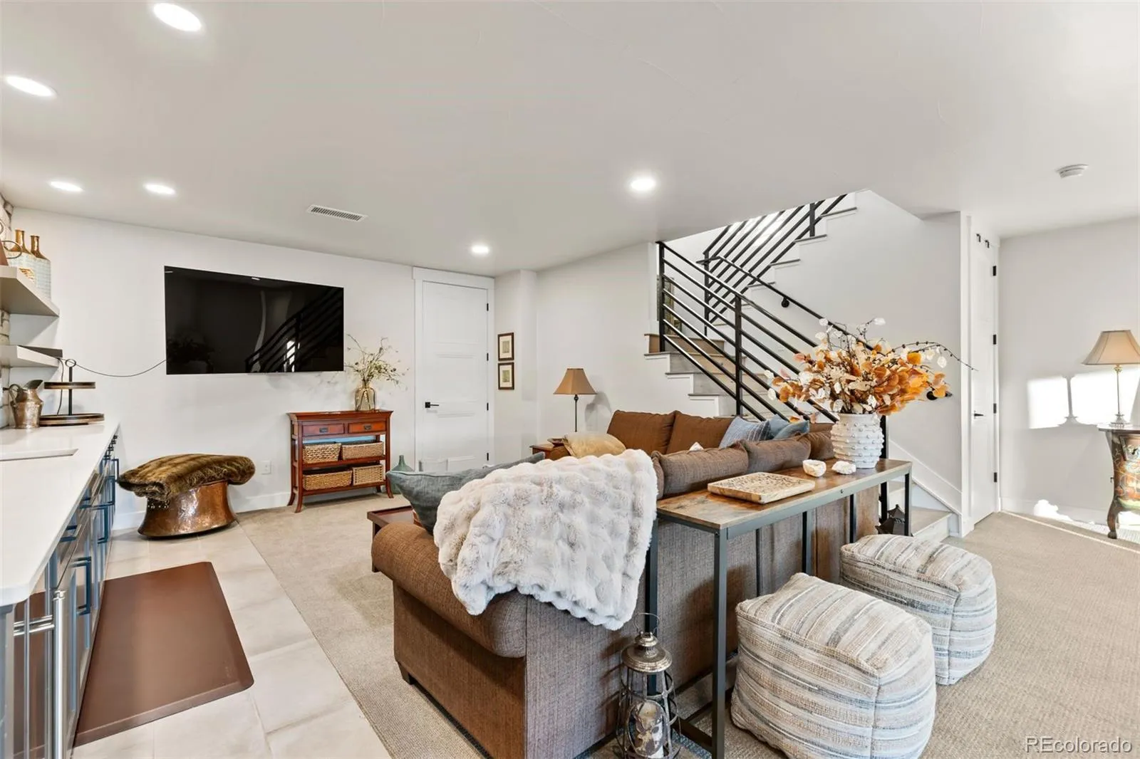 Additional highlights include a fully finished 4-car garage with epoxy flooring, an electric vehicle charging station, a well-designed laundry room with custom cabinetry and utility sink, and a walk-out lower level with four additional bedrooms, an expansive great room, and a stylish bar area.
