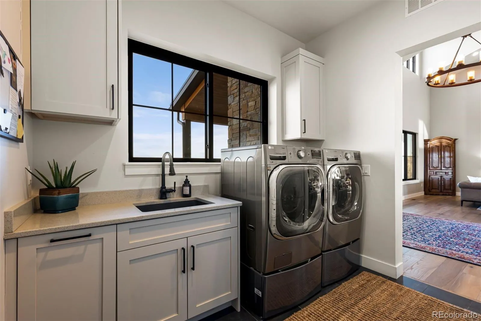 Outdoor living is equally impressive, featuring a private patio with firepit and tranquil waterfall feature—perfect for enjoying Colorado’s natural beauty.