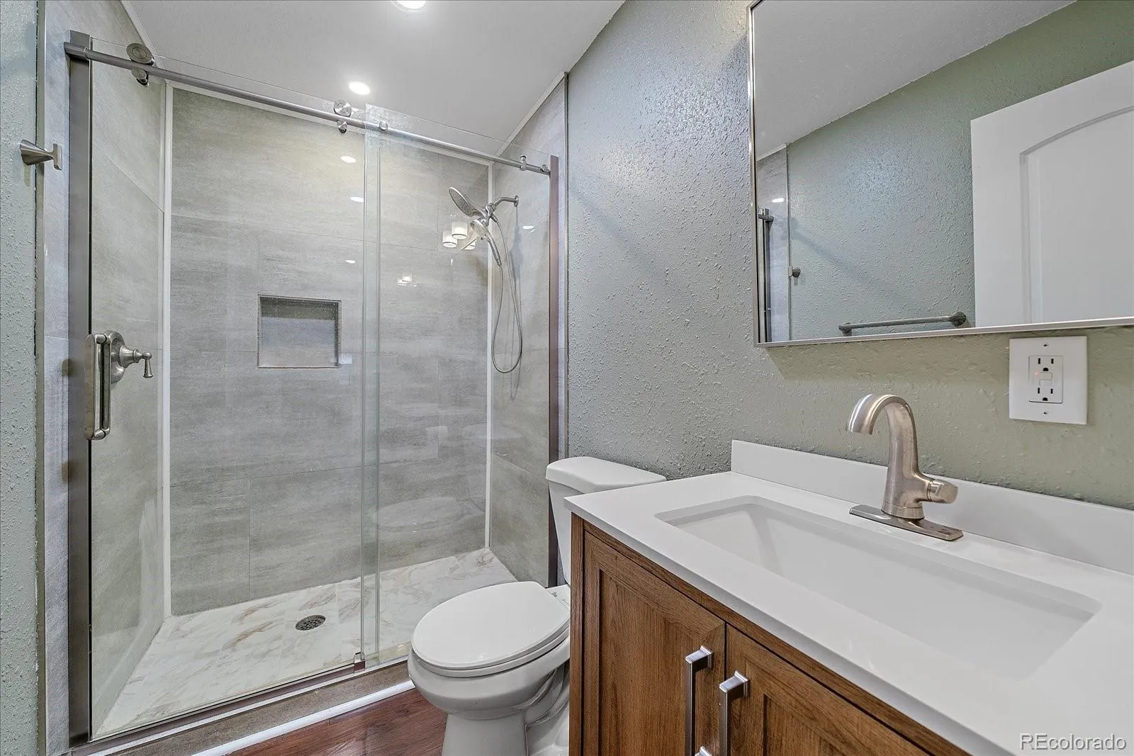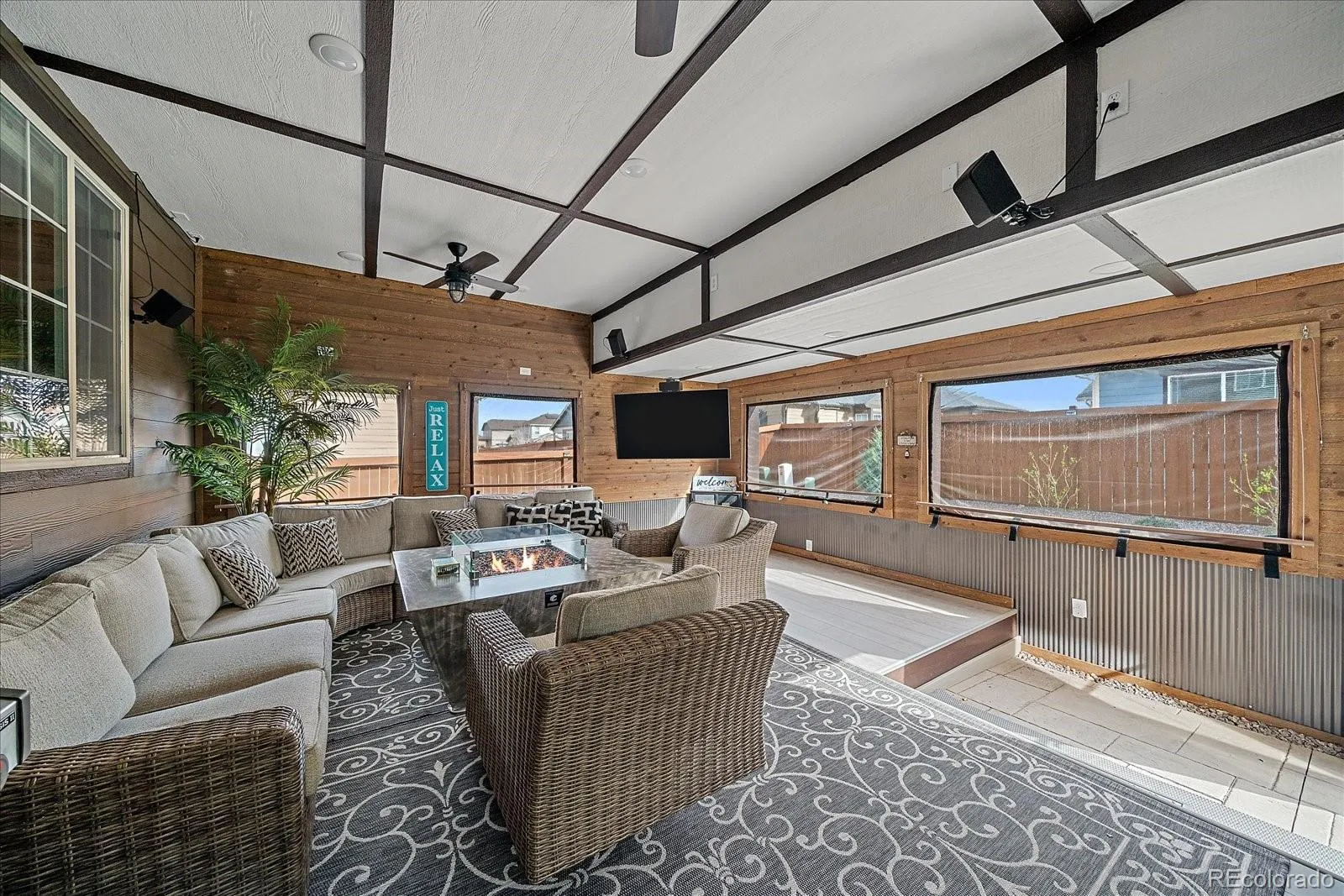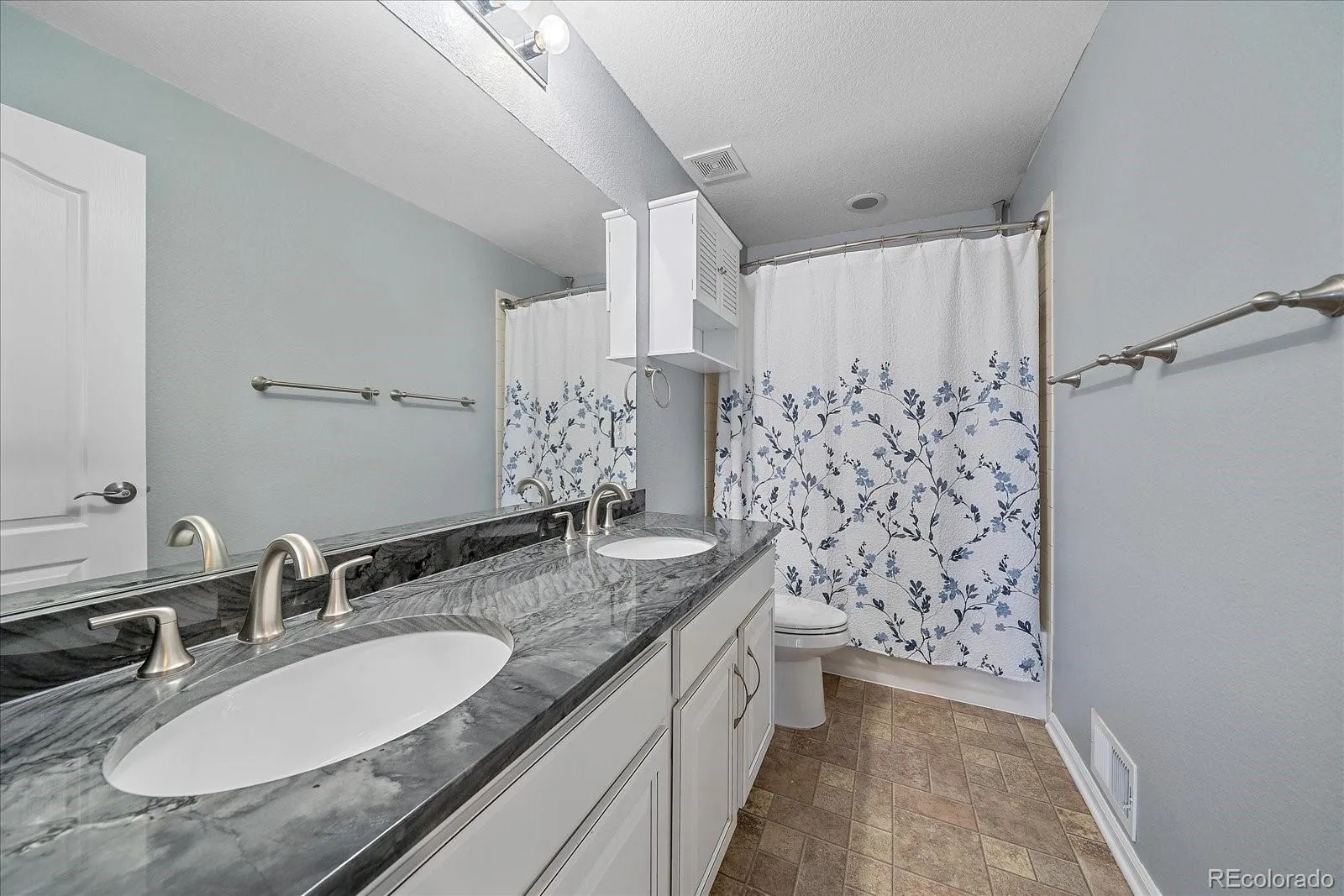 The finished basement provides even more living space with three additional bedrooms, a bathroom, and a large recreation area perfect for guests, hobbies, or movie nights. Outside, the stamped concrete patio creates an inviting backyard retreat for relaxing or entertaining. Additional highlights include LED lighting throughout, a smart thermostat, smart exterior lights, an included security system, a solar attic fan, a whole house fan, a water softener, wiring for 1 GB internet speeds, all furniture negotiable, and a new roof installed in 2024. Conveniently located near I-70 and E-470, with easy access to shopping, dining, and schools, this home offers the perfect blend of style, space, and location.
