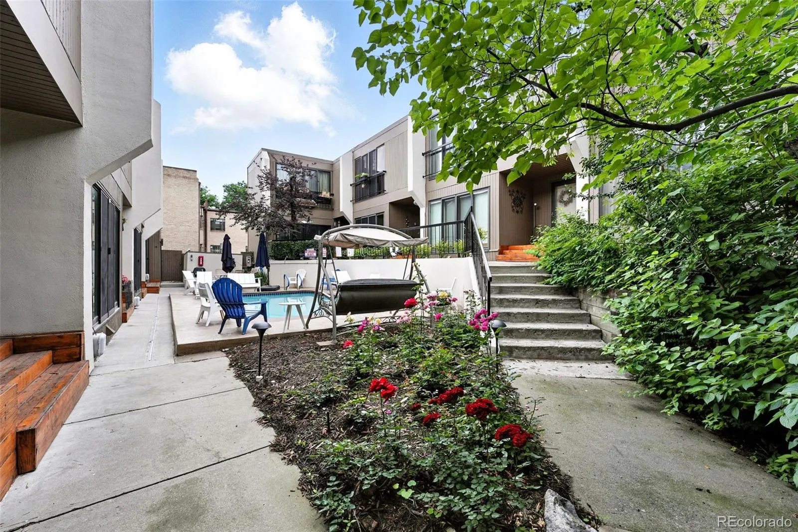 Welcome to your “urban treehouse” in Denver’s Governors Park neighborhood. This impeccably remodeled townhome blends modern elegance with everyday comfort, offering a serene retreat surrounded by lush greenery but just steps from the city’s best amenities. Inside, the bright, open floor plan features gleaming hardwood floors, two spacious bedrooms, and three beautifully remodeled bathrooms. The kitchen is a culinary dream with top-of-the-line appliances, sleek fixtures, and floor-to-ceiling “greenhouse” windows flooding the space with natural light. The adjacent dining room makes for a perfect space to host a delightful meal. Flow seamlessly into the living room where a new high-end gas fireplace adds warmth and charm—perfect for cozy nights or lively gatherings. Upstairs, you’ll find 2 spacious sun-lit bedrooms; one is a primary with a luxurious soaking tub and custom closet, and the other , large and airy with an en suite bath. Step outside to your private front porch overlooking a lush landscaped courtyard and sparkling pool, ideal for relaxation, socializing, and soaking up the sun. Parking is a breeze with a rare 2-car attached garage PLUS 4 additional reserved driveway spaces; a true luxury in this sought-after neighborhood. A responsive HOA ensures nearly maintenance-free living, so you can focus on enjoying your home without worry. The location is unbeatable—situated on a gorgeous residential block and just steps from premier restaurants, boutique shopping, parks, wineries, breweries, and cultural hotspots. Capitol Hill, Uptown, and Downtown are all within easy reach, offering the perfect balance of vibrant city living and a friendly, communal neighborhood feel. And enjoy a quick walk to Trader Joes to pick up groceries. Whether you’re unwinding by the pool, entertaining in the light-filled living space, or exploring nearby attractions, this home offers the ideal setting for a great lifestyle. Don’t miss this rare opportunity—schedule your showing today!