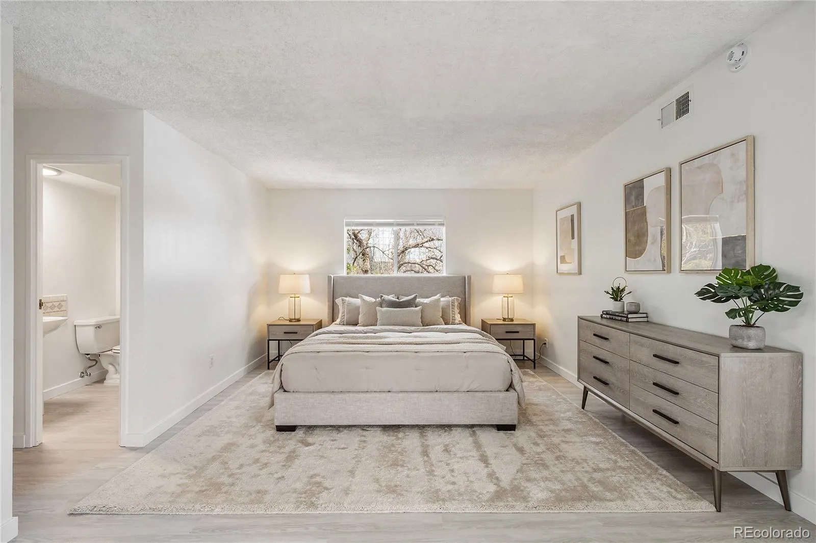 Step inside to a fully remodeled interior featuring a bright, open-concept layout designed for comfortable living and easy entertaining. You’ll love the modern wood-look flooring, fresh neutral palette, and energy-efficient dual-pane windows that fill the space with natural light.The kitchen and bathrooms have been thoughtfully updated with contemporary finishes, giving the home a clean, move-in-ready feel. The spacious primary suite offers private balcony access through sliding glass doors, a beautifully updated en-suite bath with a sleek glass step-in shower, and a large walk-in closet. A versatile secondary bedroom provides flexible space for guests, a home office, or additional storage.