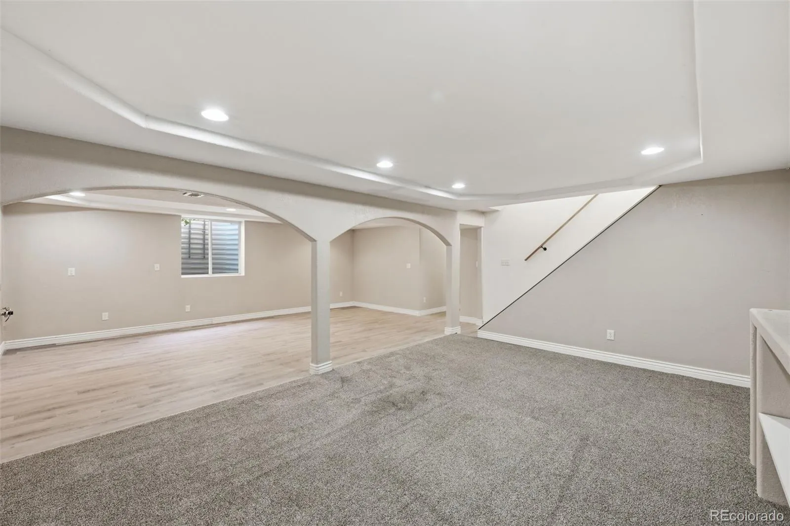 Experience the quintessential Colorado lifestyle in this beautifully updated 4-bedroom, 3-bathroom ranch home at 1042 S Holland Ct, perfectly positioned for those seeking both relaxation and adventure in Lakewood. Spanning 3,087 total square feet, this residence is designed for seamless indoor-outdoor living, featuring a massive 20×14 ft back deck with a hot tub and prvate yard—ideal for starlit soak sessions—and a charming 28×9 ft stone front patio for morning coffee. Inside, the home glows with natural light from large windows and a sliding glass door, highlighting the rich hardwood floors and fresh paint throughout the spacious living and dining areas. The chef-ready kitchen is an entertainer’s dream, boasting granite countertops, a gas range, and a cozy eat-in layout. Retreat to the primary suite with its private 3/4 bath, or head down to the finished basement, a versatile space featuring a large fourth bedroom with a walk-in closet and a luxurious full bathroom equipped with double sinks and a soaking tub. Practicality meets modern comfort with an attached 2-car garage, stainless steel appliances, and a 2019 washer/dryer set included for a truly move-in-ready experience. Located in Jefferson County near local amenities, this property offers the space you need and the lifestyle you’ve been dreaming of. This Lakewood gem combines mid-century character with contemporary updates, making it the perfect sanctuary.