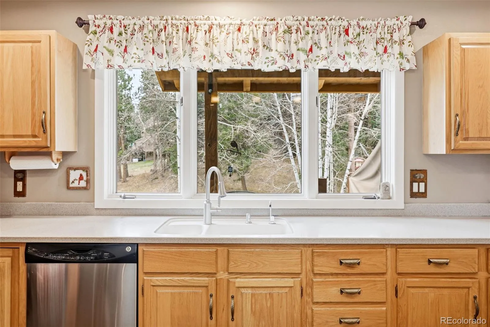 Experience the best of Evergreen living in this beautifully situated Timbervale Drive home, offering a rare combination of privacy, natural beauty, and convenient access to town. With sweeping views of the meadow and open space, this home offers a warm, inviting aesthetic paired with everyday comfort. The sun-filled main level features expansive windows and a sunken living room with striking floor-to-ceiling wood-burning fireplace. Step onto the partially covered deck to take in peaceful meadow views—perfect for morning coffee or evening relaxation. The kitchen flows seamlessly into the dining area and is equipped with stainless steel appliances, slate flooring, abundant cabinetry, and windows that capture the surrounding scenery. Upstairs, the primary suite showcases stunning views, vaulted ceilings, dual closets, and a spacious en-suite bath. Two additional bedrooms and a shared bathroom complete the upper level. The walk-out basement offers excellent natural light and additional living space, including a rec room, dedicated office, full bathroom and direct access to a stone patio to enjoy nature. Outdoors, the setting truly shines. Bordering open space, the expansive area feels like a private yard without the maintenance—ideal for relaxing or entertaining. Enjoy watching local wildlife and taking in the tranquil surroundings from your deck. Recent updates, including a newer roof and windows, provide added peace of mind. The neighborhood features a 20+ acre meadow with a pond, tennis/pickleball court, a historic barn for gatherings, additional resident storage and is adjacent to the historic Hiwan Homestead Museum. Located just minutes from downtown Evergreen, you’ll enjoy easy access to shops, dining, recreation, Evergreen lake and community events.