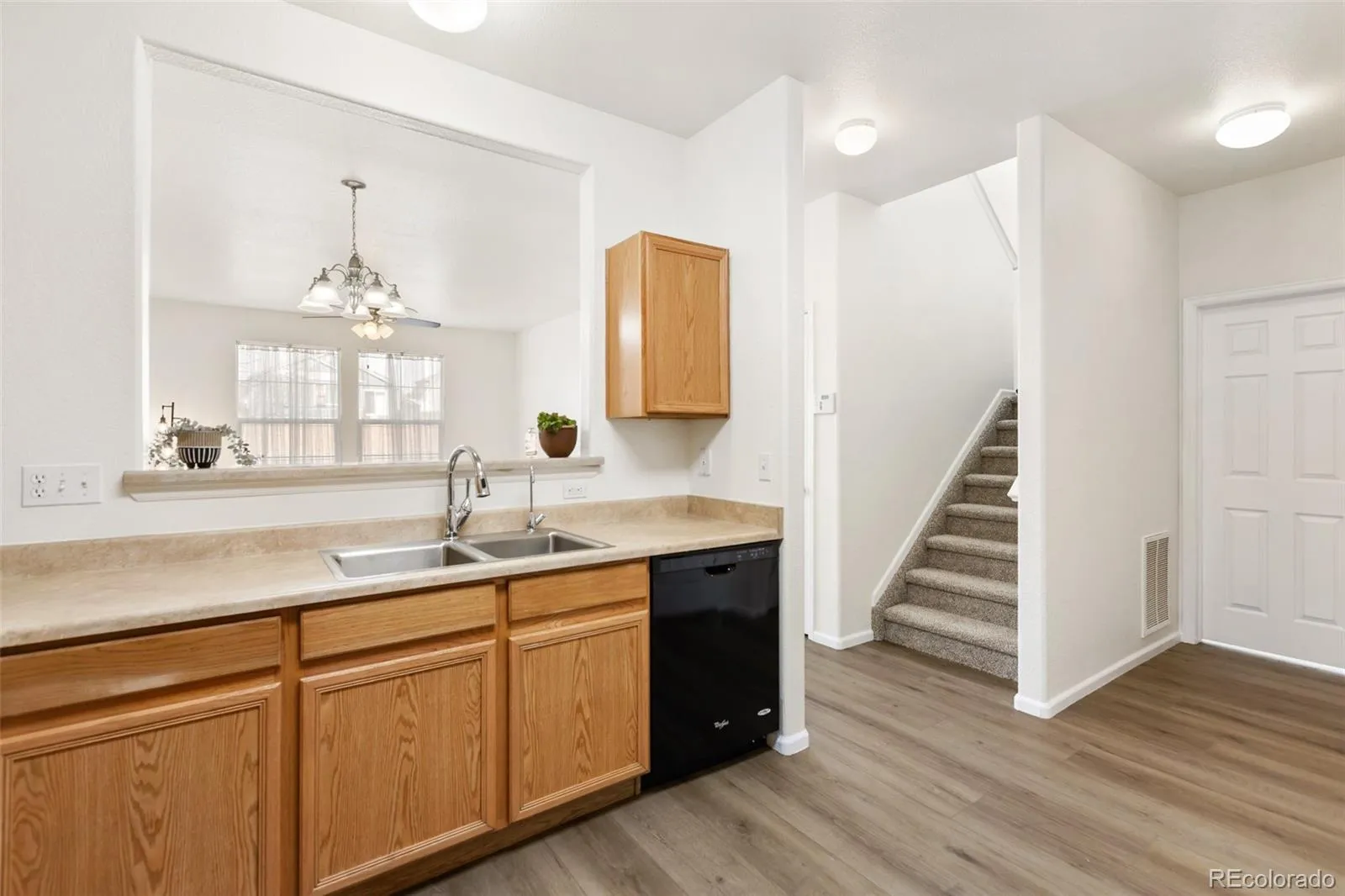 Welcome to this highly desirable end-unit offering an abundance of natural light and a thoughtfully designed floor plan. The spacious kitchen features stainless steel appliances, generous cabinetry, and a convenient pass-through to the dining area—perfect for both everyday living and entertaining. The popular layout provides a comfortable and functional flow throughout the home. The large primary bedroom includes a walk-in closet space and a private en-suite bath, creating a relaxing retreat. A separate laundry area is conveniently located near the half bath, and the washing machine is included for added value. Enjoy the benefits of recent updates, including fresh interior paint, luxury vinyl and new carpet throughout the home, giving the property a clean and move-in-ready environment. Enjoy secure, protected access to your new home through the attached, oversized 2-car garage with additional storage capacity for all your occasional items. Ideally located just minutes from the Fort Carson gate, with easy access to shopping, dining, and everyday conveniences along Powers Boulevard. The home is also within walking distance to open space, parks, and nearby restaurants, offering both comfort and convenience in a highly desirable location. Don’t miss this rare opportunity to own a updated, beautiful townhome!