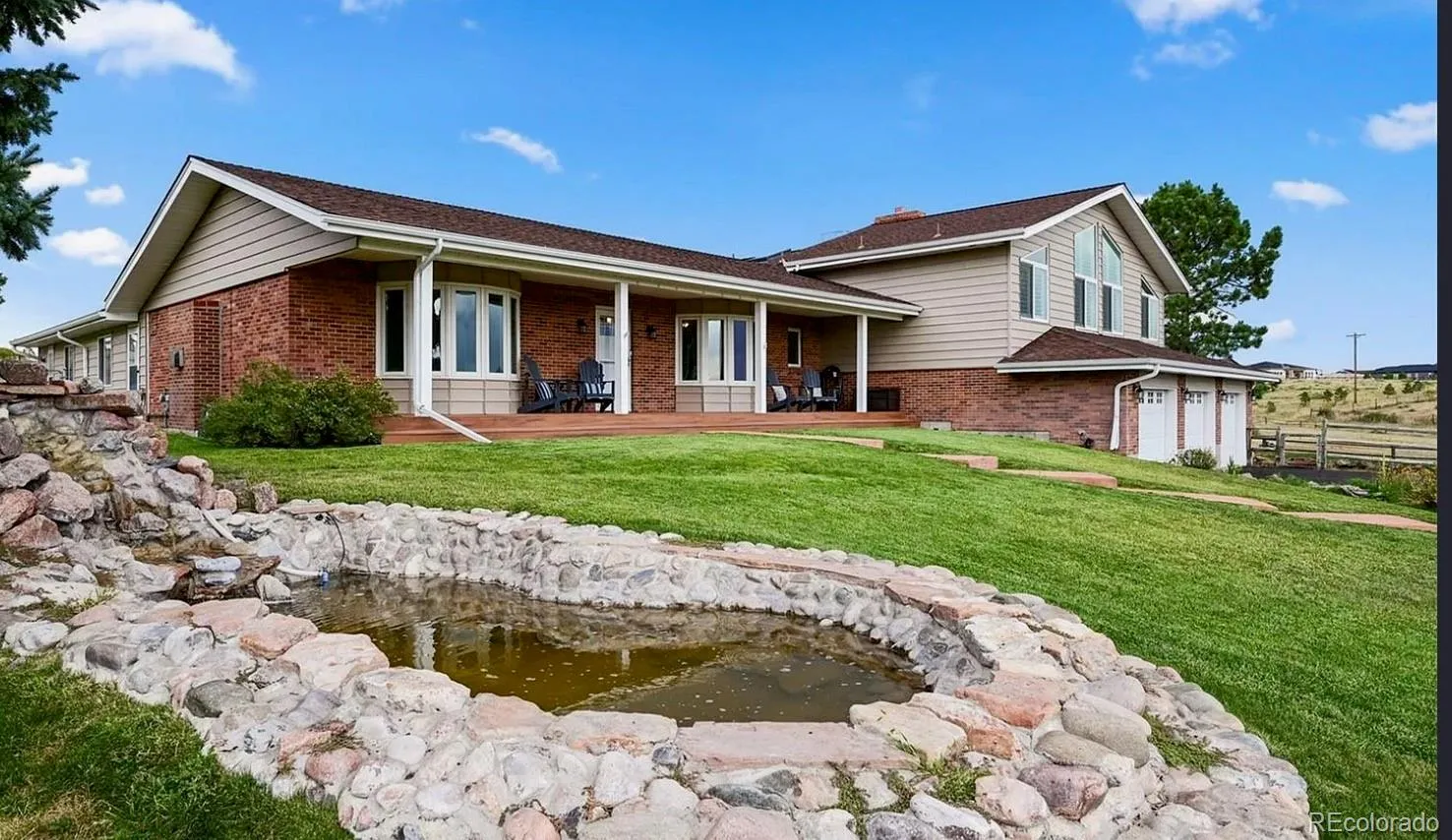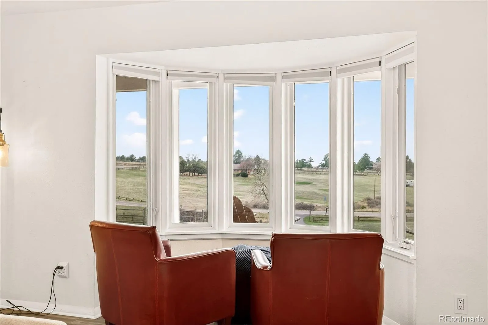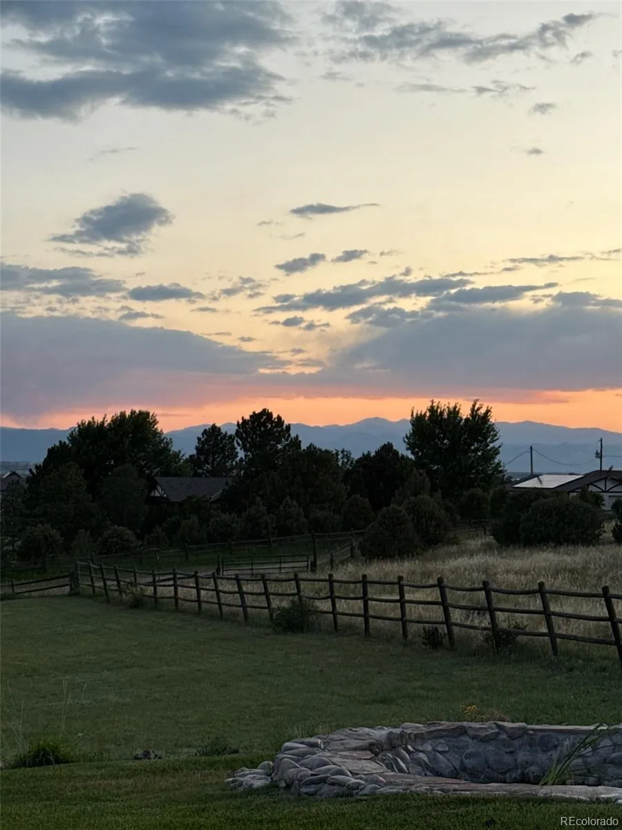 Bask in commanding views from Pikes to Longs Peak at the 5-acre Rancho Cielo (“Sky” or “Heaven”). This estate offers a blend of modern updates with timeless charm, creating a retreat that feels both elevated and warm! The lovely living room welcomes you with a cozy fireplace and large bay windows that perfectly frame the mountains. The kitchen/dining area share the same breathtaking panorama through their own bay windows. The beautifully refreshed kitchen offers granite countertops, a large island, stainless steel appliances, updated lighting, and a walk-in pantry. Next, step into the home’s showpiece: an impressive 1,400-sq-ft great room designed for unforgettable entertaining. This space features a full wet bar, a dramatic floor-to-ceiling fireplace, and surround sound. French doors open to a private outdoor oasis with TREX deck, hot tub, and a gas grill—perfect for gatherings or quiet evenings under a star-filled sky! Upstairs, the primary suite has vaulted ceilings, bay windows with plantation shutters, attached bonus space, and more mountain vistas! The en-suite bath includes a soaking tub, separate shower, dual vanities, and generous closet space. Two additional bedrooms and baths complete the upper level. The lower level has versatile space ideal for multi-generational living, office, or bedroom – with cozy fireplace sitting area and nearby bath. Downstairs is another spacious bedroom or bonus room with closet and egress. Outdoors, enjoy the serene covered front porch year-round while watching wildlife or stunning sunsets! Equestrian amenities include a 2-stall barn, fenced pastures, and access to neighborhood bridle paths. The 3-stall garage includes an EV charger, and 1-acre yard features an electric fence. Newer solar panel system is owned! Located minutes from downtown Parker and E-470, this property is quick access to DTC, downtown and endless recreation. Rancho Cielo offers a rare opportunity to own a sanctuary with unmatched views! More photos 4/2