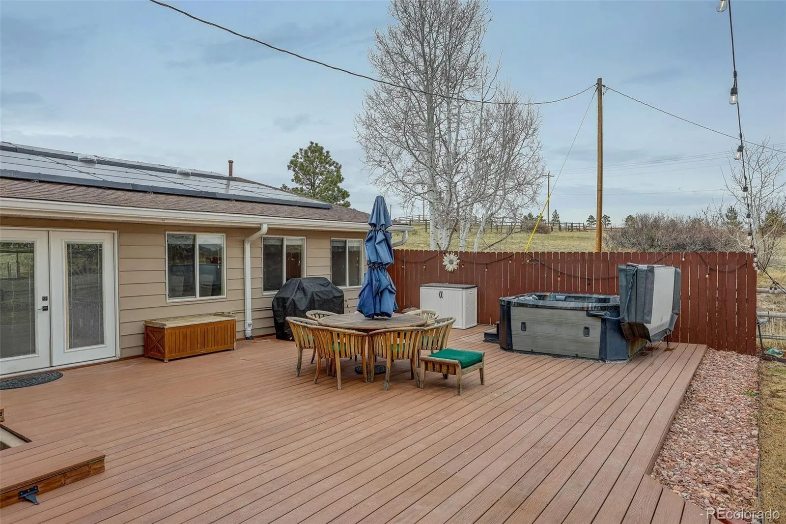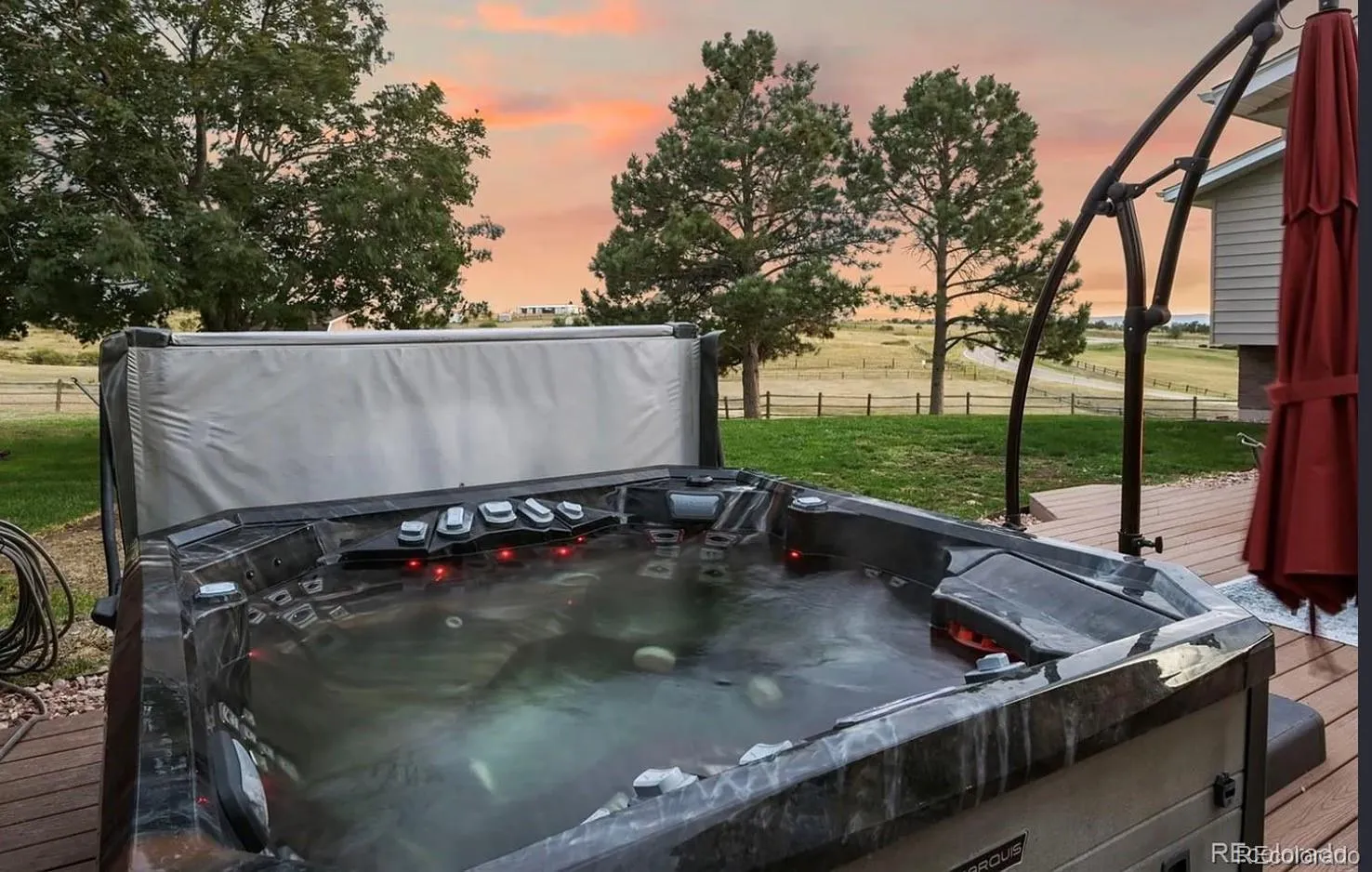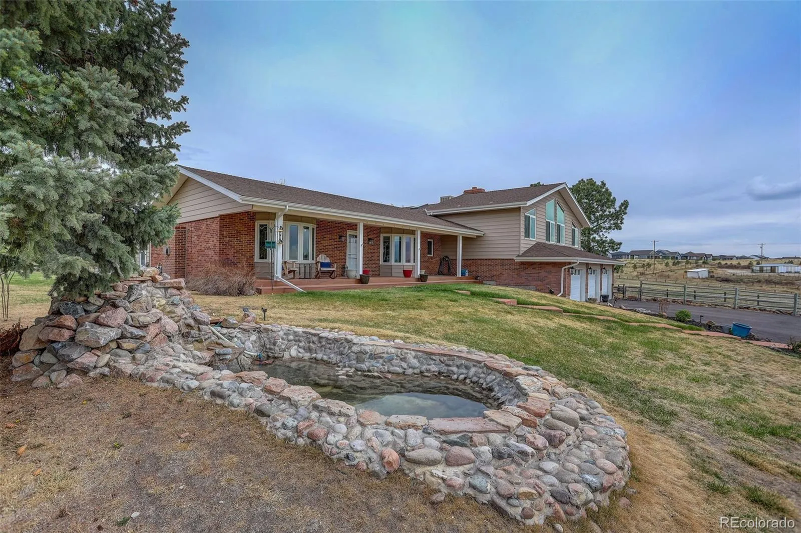 Bask in commanding views from Pikes to Longs Peak at the 5-acre Rancho Cielo (“Sky” or “Heaven”). This estate offers a blend of modern updates with timeless charm, creating a retreat that feels both elevated and warm! The lovely living room welcomes you with a cozy fireplace and large bay windows that perfectly frame the mountains. The kitchen/dining area share the same breathtaking panorama through their own bay windows. The beautifully refreshed kitchen offers granite countertops, a large island, stainless steel appliances, updated lighting, and a walk-in pantry. Next, step into the home’s showpiece: an impressive 1,400-sq-ft great room designed for unforgettable entertaining. This space features a full wet bar, a dramatic floor-to-ceiling fireplace, and surround sound. French doors open to a private outdoor oasis with TREX deck, hot tub, and a gas grill—perfect for gatherings or quiet evenings under a star-filled sky! Upstairs, the primary suite has vaulted ceilings, bay windows with plantation shutters, attached bonus space, and more mountain vistas! The en-suite bath includes a soaking tub, separate shower, dual vanities, and generous closet space. Two additional bedrooms and baths complete the upper level. The lower level has versatile space ideal for multi-generational living, office, or bedroom – with cozy fireplace sitting area and nearby bath. Downstairs is another spacious bedroom or bonus room with closet and egress. Outdoors, enjoy the serene covered front porch year-round while watching wildlife or stunning sunsets! Equestrian amenities include a 2-stall barn, fenced pastures, and access to neighborhood bridle paths. The 3-stall garage includes an EV charger, and 1-acre yard features an electric fence. Newer solar panel system is owned! Located minutes from downtown Parker and E-470, this property is quick access to DTC, downtown and endless recreation. Rancho Cielo offers a rare opportunity to own a sanctuary with unmatched views! More photos 4/2