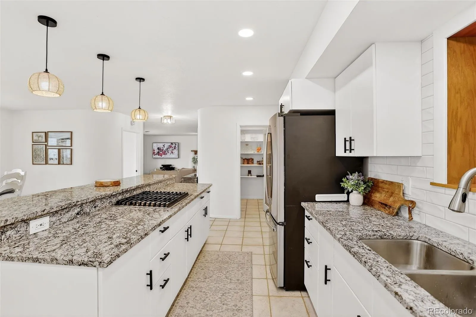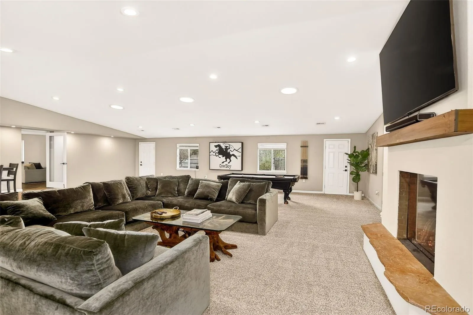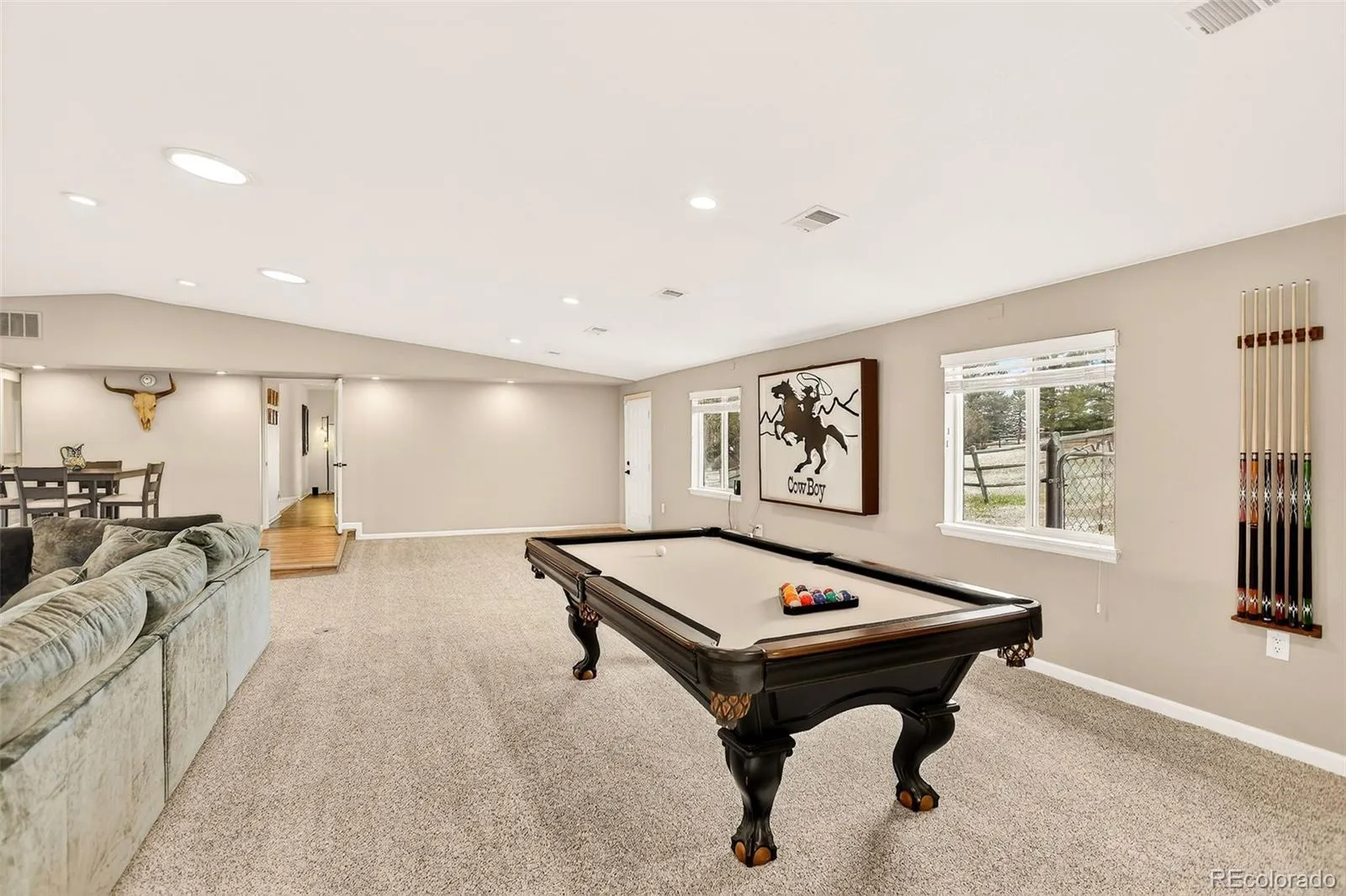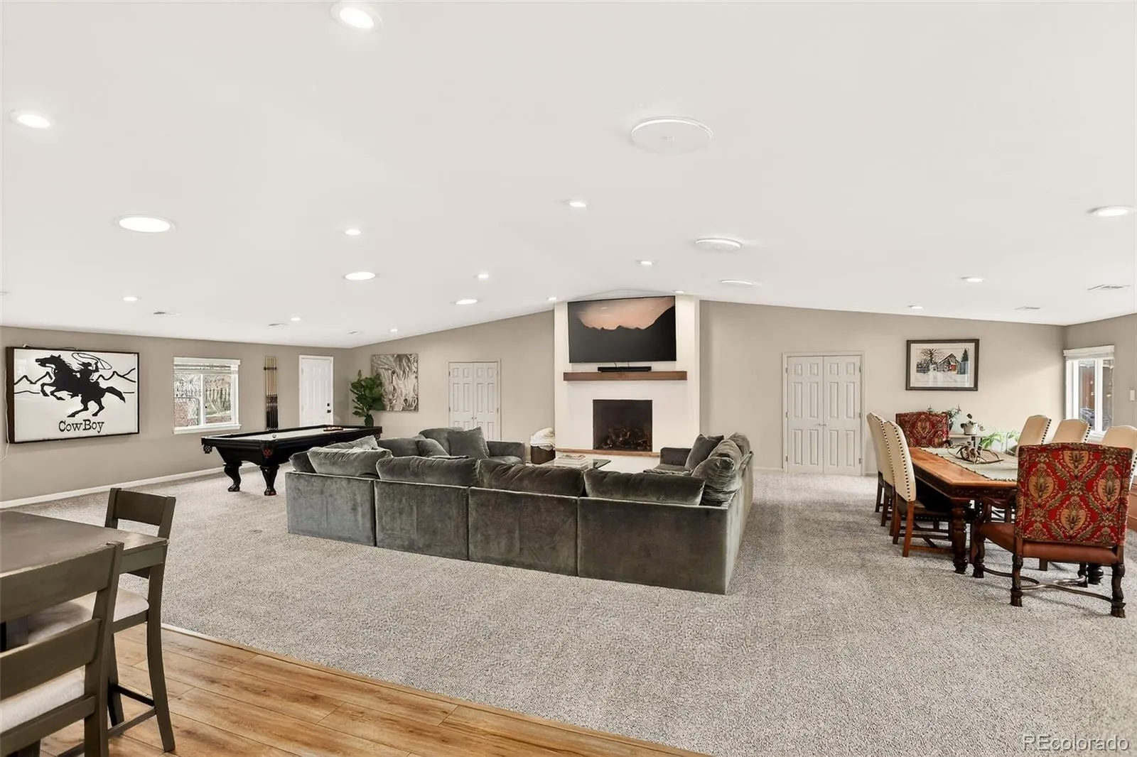 Bask in commanding views from Pikes to Longs Peak at the 5-acre Rancho Cielo (“Sky” or “Heaven”). This estate offers a blend of modern updates with timeless charm, creating a retreat that feels both elevated and warm! The lovely living room welcomes you with a cozy fireplace and large bay windows that perfectly frame the mountains. The kitchen/dining area share the same breathtaking panorama through their own bay windows. The beautifully refreshed kitchen offers granite countertops, a large island, stainless steel appliances, updated lighting, and a walk-in pantry. Next, step into the home’s showpiece: an impressive 1,400-sq-ft great room designed for unforgettable entertaining. This space features a full wet bar, a dramatic floor-to-ceiling fireplace, and surround sound. French doors open to a private outdoor oasis with TREX deck, hot tub, and a gas grill—perfect for gatherings or quiet evenings under a star-filled sky! Upstairs, the primary suite has vaulted ceilings, bay windows with plantation shutters, attached bonus space, and more mountain vistas! The en-suite bath includes a soaking tub, separate shower, dual vanities, and generous closet space. Two additional bedrooms and baths complete the upper level. The lower level has versatile space ideal for multi-generational living, office, or bedroom – with cozy fireplace sitting area and nearby bath. Downstairs is another spacious bedroom or bonus room with closet and egress. Outdoors, enjoy the serene covered front porch year-round while watching wildlife or stunning sunsets! Equestrian amenities include a 2-stall barn, fenced pastures, and access to neighborhood bridle paths. The 3-stall garage includes an EV charger, and 1-acre yard features an electric fence. Newer solar panel system is owned! Located minutes from downtown Parker and E-470, this property is quick access to DTC, downtown and endless recreation. Rancho Cielo offers a rare opportunity to own a sanctuary with unmatched views! NO HOA!