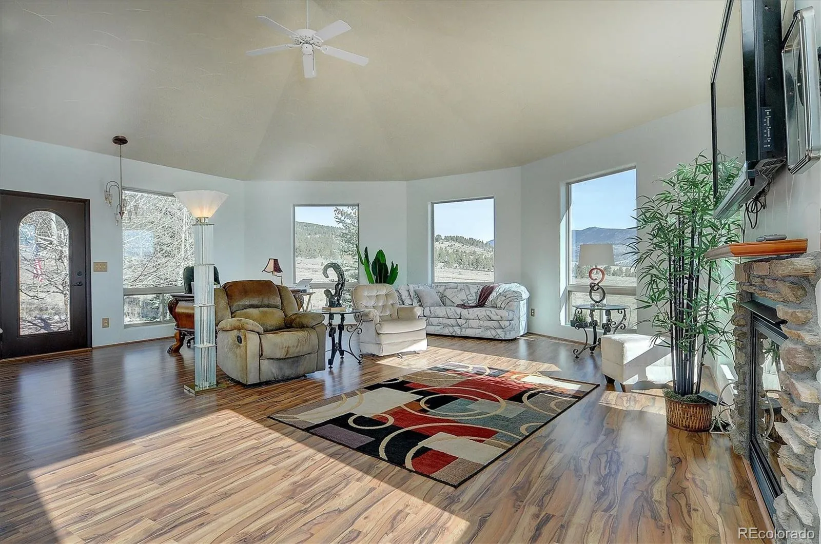 Welcoming home in an idyllic setting bordering the 720-acre Heckendorf State Wildlife Area offering sweeping mountain, valley, and wildlife views. This thoughtfully designed floorplan offers shared and private spaces for flexible living options. At the heart of the home, a stunning atrium with expansive windows opens to a raised, low-maintenance deck—perfect for indoor-outdoor living. The spacious kitchen, dining, and living areas make entertaining easy. Two mirror-image primary suites feature wraparound triple-pane windows with breathtaking views of surrounding peaks, valley, elk and pronghorn. Each suite has its own private entrance, opening to spacious living room with gas fireplace, bedroom area and en-suite bath. Additional highlights include a finished 2-car garage with workbench, three spacious detached storage sheds, asphalt drive and access to the gated Four Elk Camp community with nearby public land and a shared pond. Just 15 minutes from downtown Buena Vista—an ideal base for Colorado mountain living!