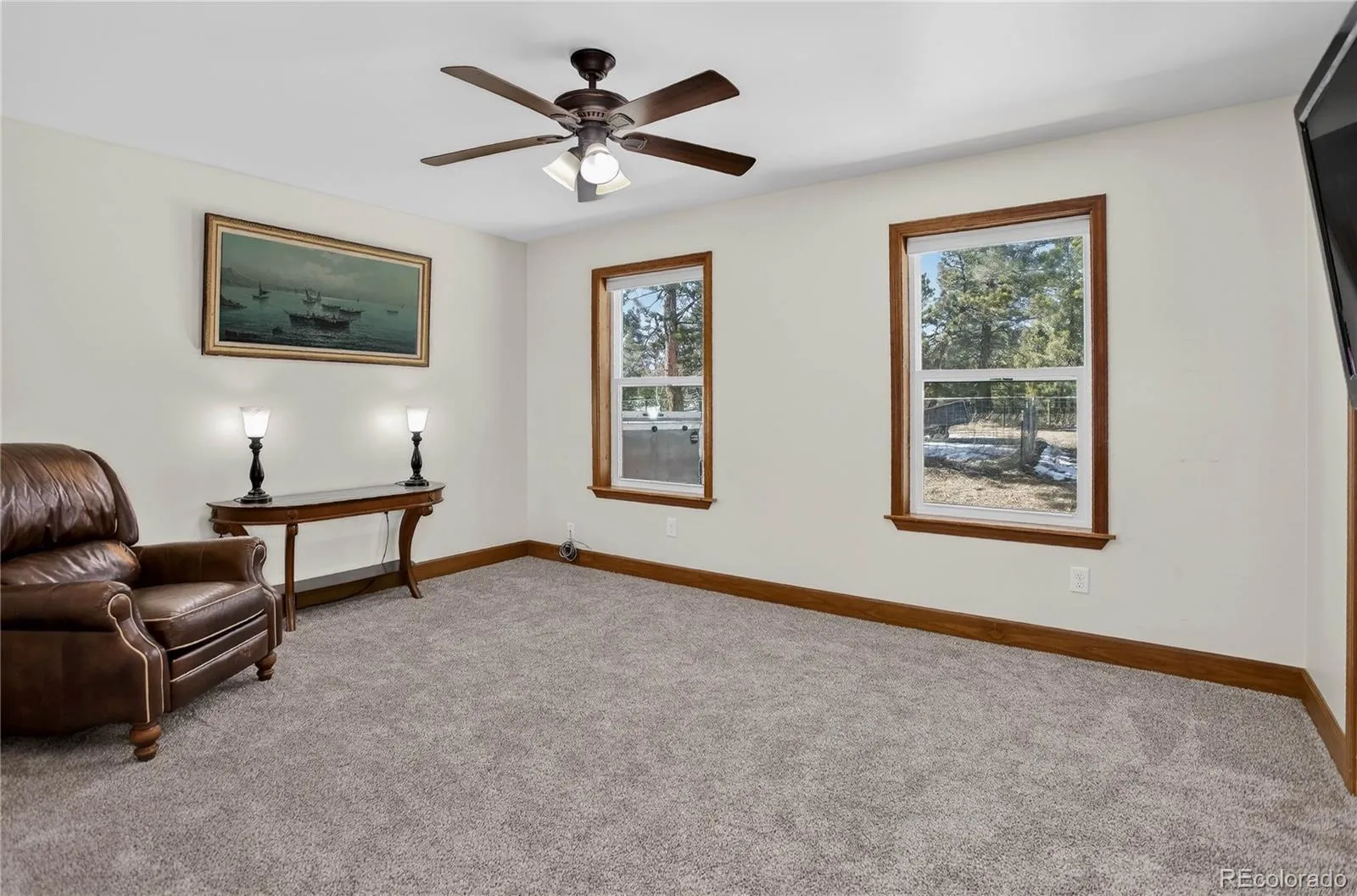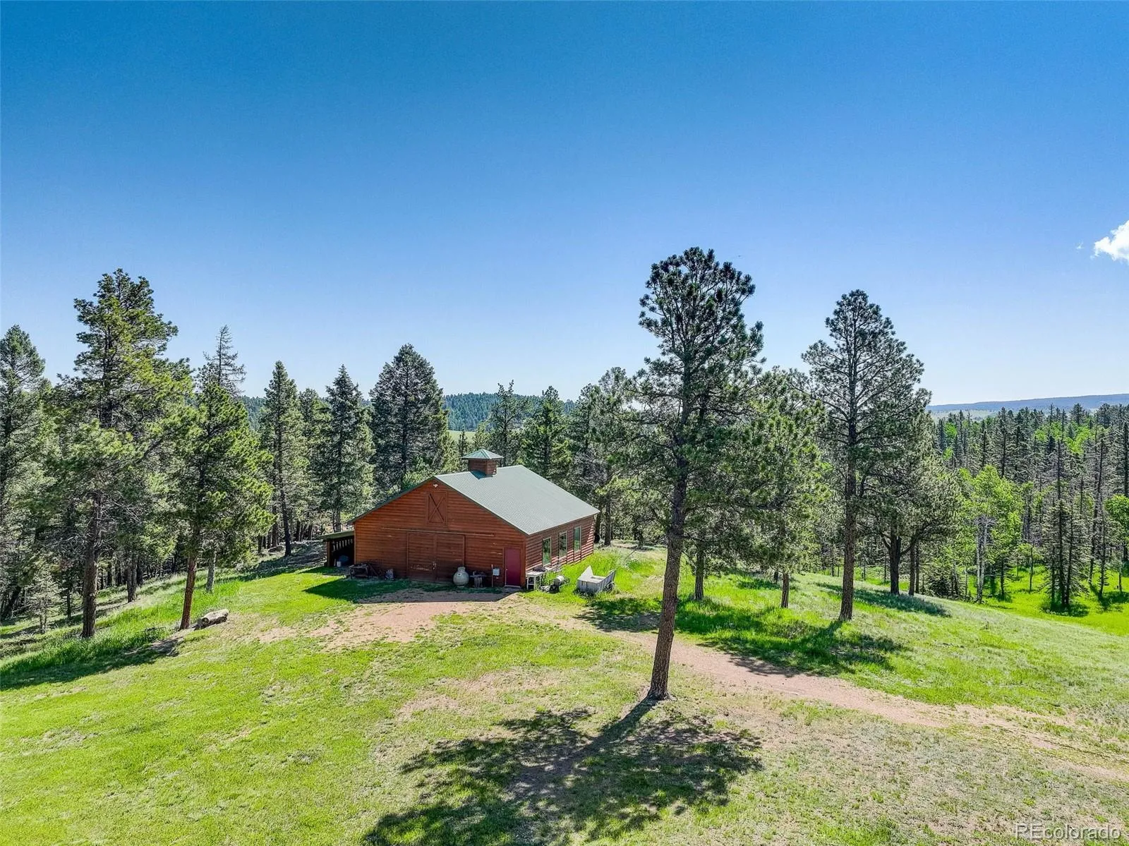 Welcome to your mountain dream home, where unobstructed Pikes Peak views greet you each morning, are visible through many windows and add a breathtaking inclusion to the spectacular sunrises in the morning. This spacious 4680 sq ft, 5-bedroom, 4-bathroom home, located in Divide Colorado, is nestled on a fenced-gated 38.68-acre property, where it provides the perfect blend of grassy meadow and heavily treed terrain with a creek that runs through and often draws the local wildlife to come visit. Inside this impressive home, you will discover a showstopping kitchen that would make any cooking enthusiast smile. Featuring gorgeous- engineered stone countertops, ample cabinets with soft close hinges and convenient pull-outs, a center island with a prep sink and beverage fridge, a walk-in pantry, and a convenient built in desk! Rich hardwood flooring flows throughout the main living areas, adding warmth and timeless elegance to this light and bright space. Generous sized bedrooms include walk-in closets, providing amazing storage options throughout. The primary bedroom includes a spacious ensuite bathroom with a tiled walk-in shower, bench seat and dual shower heads, a double vanity, an impressive walk-in closet and access out to the deck. The walkout lower-level houses a large office/multi use space, media room, and so much more. Outside, the large, covered deck and covered patio provide year-round enjoyment, whether you are sipping coffee with those jaw-dropping Pike’s Peak views or watching wildlife wander through your meadow. The detached 2 car garage is oversized at 750 sq ft and your 1024 sq ft barn boasts a loft, concrete floors, a wood burning stove, three 220 outlets, and a lean-to for additional storage making it the perfect space for a workshop, your hobbies, or whatever your heart desires. Thoughtful improvements such as a generator interlock system at the pole located close to the propane tank make you prepared whatever the weather. Strong cell service at home