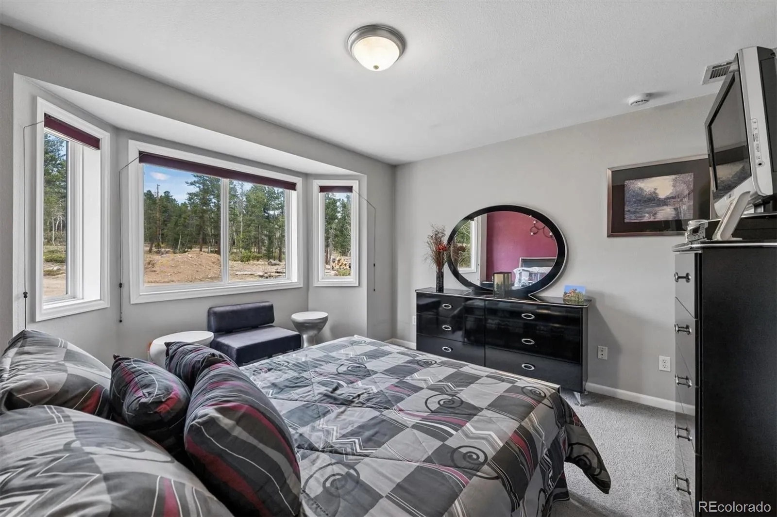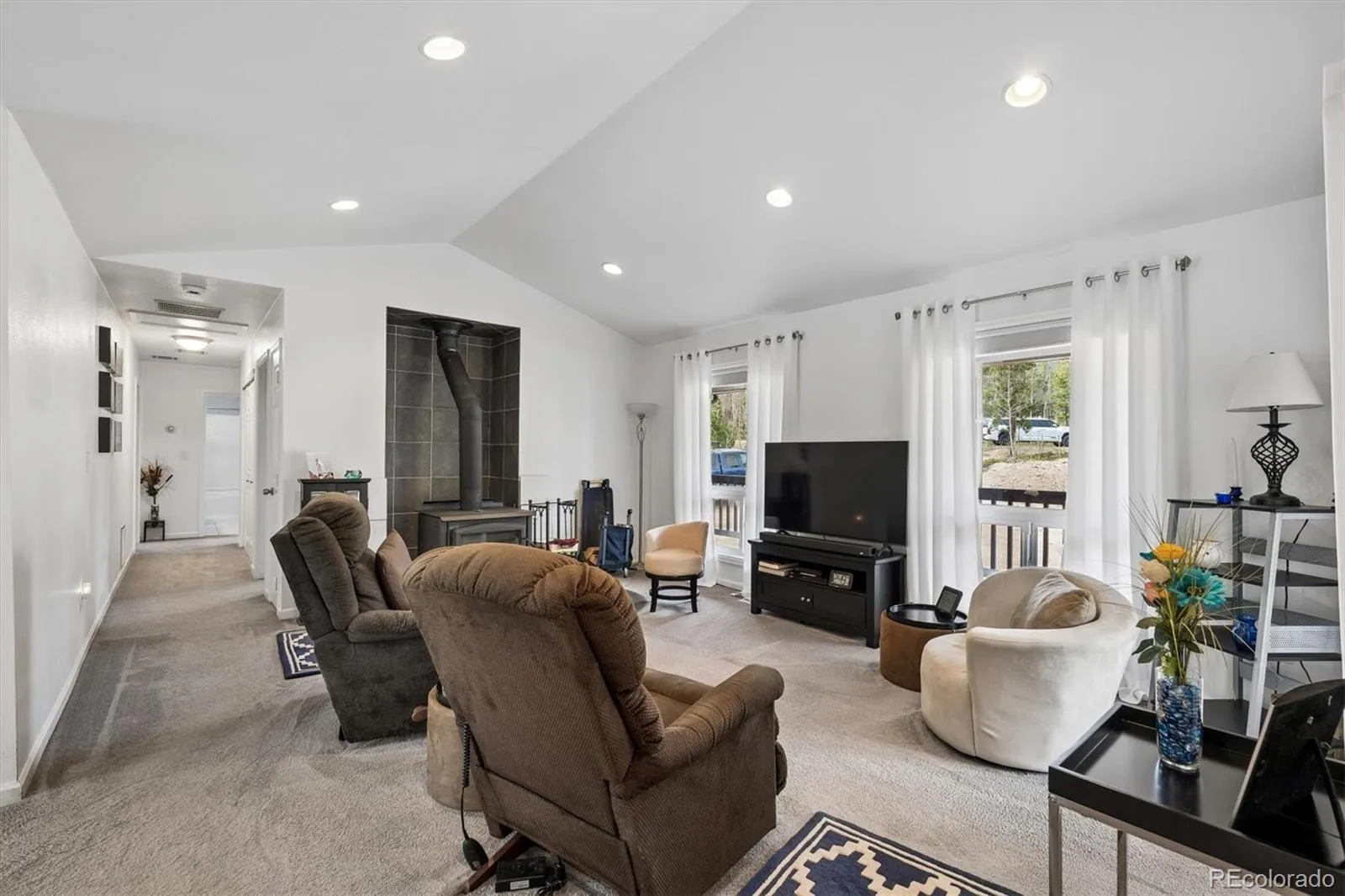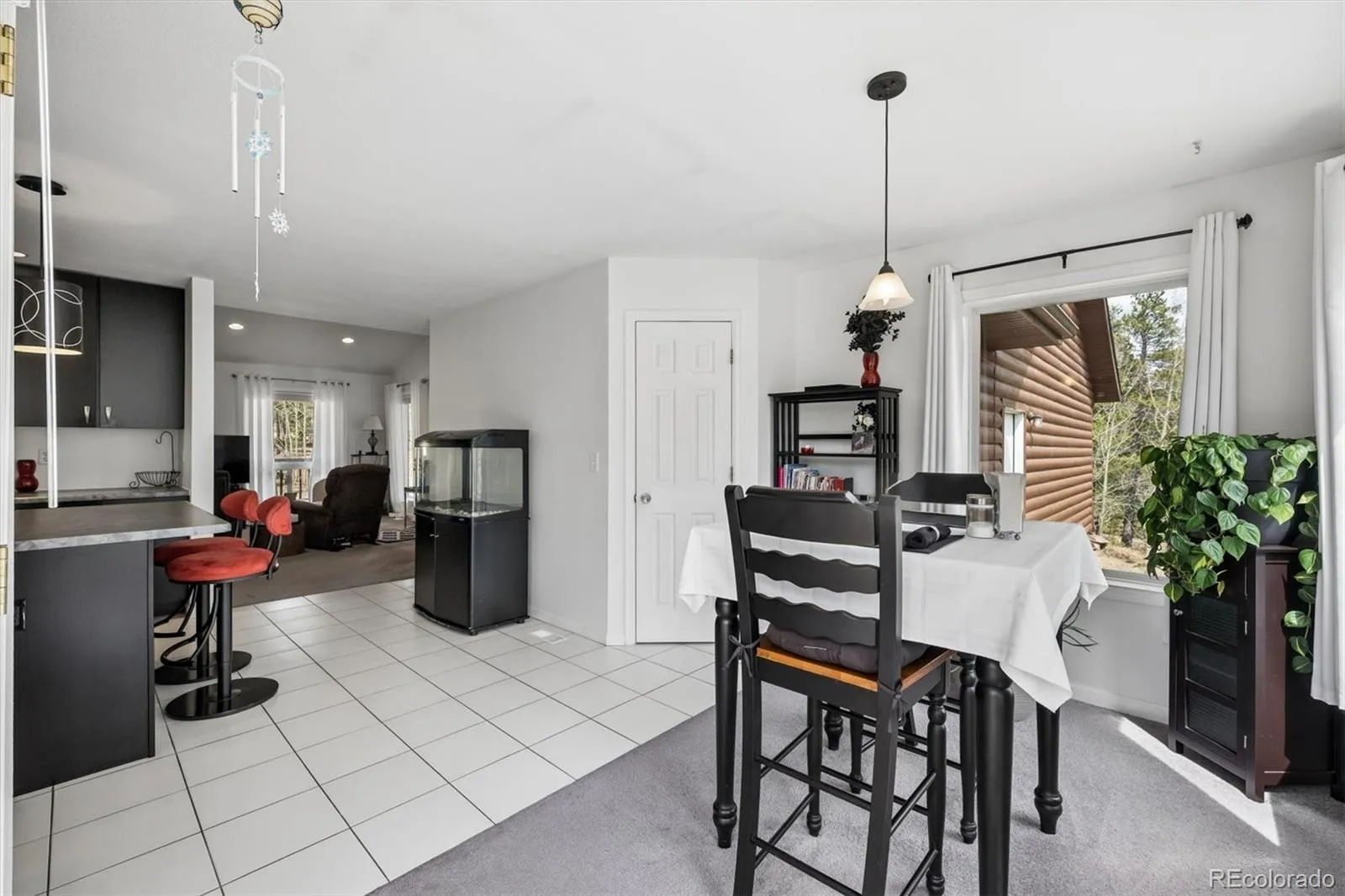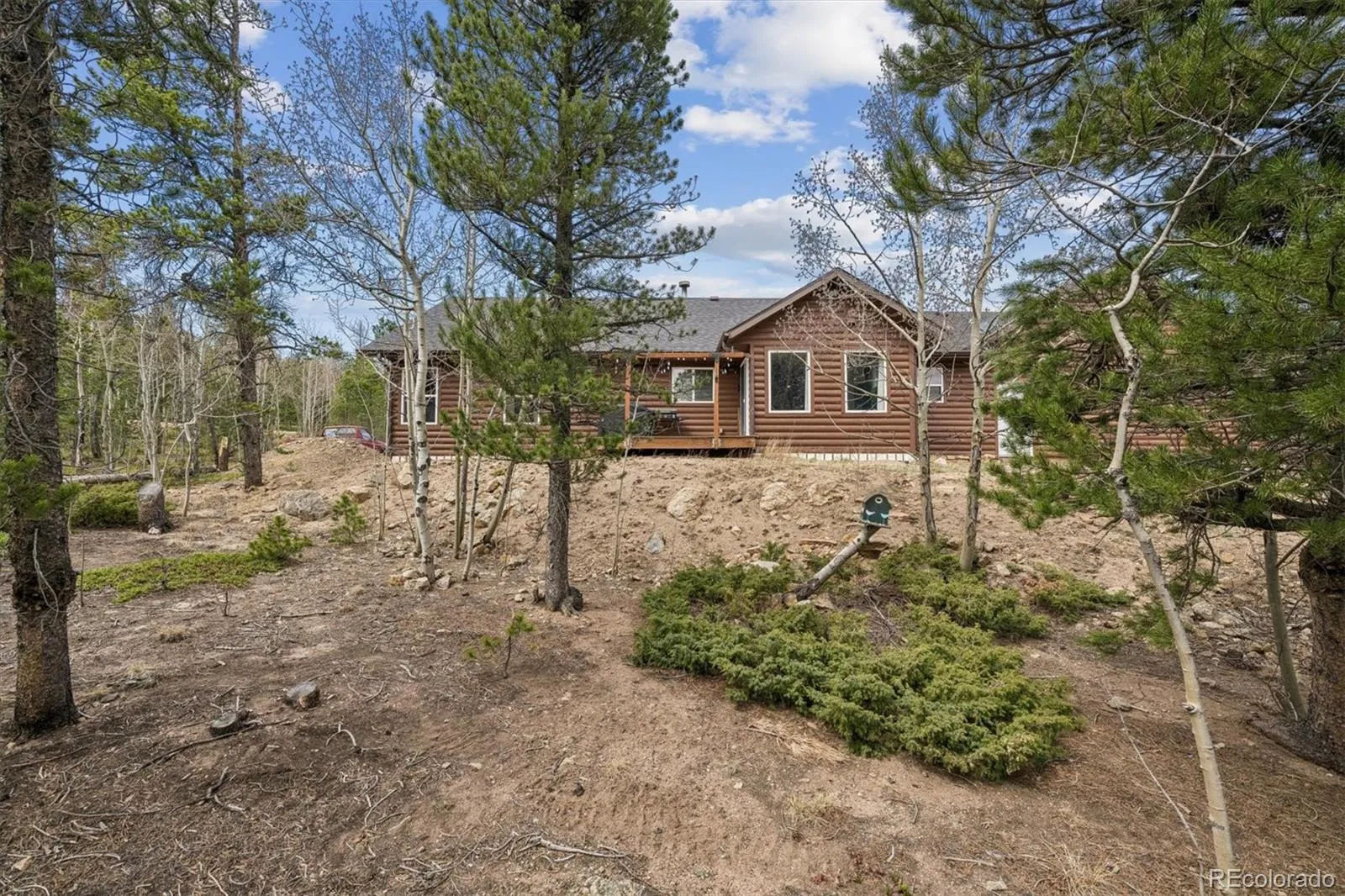 Welcome to this charming ranch-style log home, perfectly set on an expansive 52,272 sq ft lot with breathtaking views and a peaceful cabin-like ambiance. Blending rustic character with modern updates, this home offers both comfort and functionality in a serene setting. Step inside to an airy living room that serves as the heart of the home, featuring soaring vaulted ceilings that create an open, inviting atmosphere. A cozy wood-burning fireplace with an elegant tile surround anchors the space, making it ideal for relaxing evenings. The updated kitchen is truly a standout, designed with both style and practicality in mind. It showcases beautiful appliances, an expansive island perfect for meal prep or casual gatherings, and generous cabinet space for effortless organization. Just beyond, the light-filled dining room offers seamless flow from the kitchen, with large windows that flood the space with natural light and direct access to the back deck—perfect for indoor-outdoor entertaining. A thoughtfully designed half bath and laundry room combination maximizes efficiency without sacrificing style. The home features versatile living spaces, including a flexible secondary bedroom ideal for a home office, guest room, or hobby space. Another bright secondary bedroom is enhanced by multiple large windows, creating a cheerful and inviting retreat. A spacious full bath provides ample room for comfort and ease. The primary suite serves as a private sanctuary, offering a spacious retreat at the end of the day. Enjoy a generous walk-in closet with abundant storage, along with a luxurious en-suite bath featuring a dual-sink vanity and plentiful cabinetry for optimal organization. Additional highlights include a 2-car attached garage, low HOA fees, and a brand-new roof installed in 2025. This unique property combines the warmth of a log cabin feel with modern conveniences and stunning surroundings—an exceptional place to call home.
