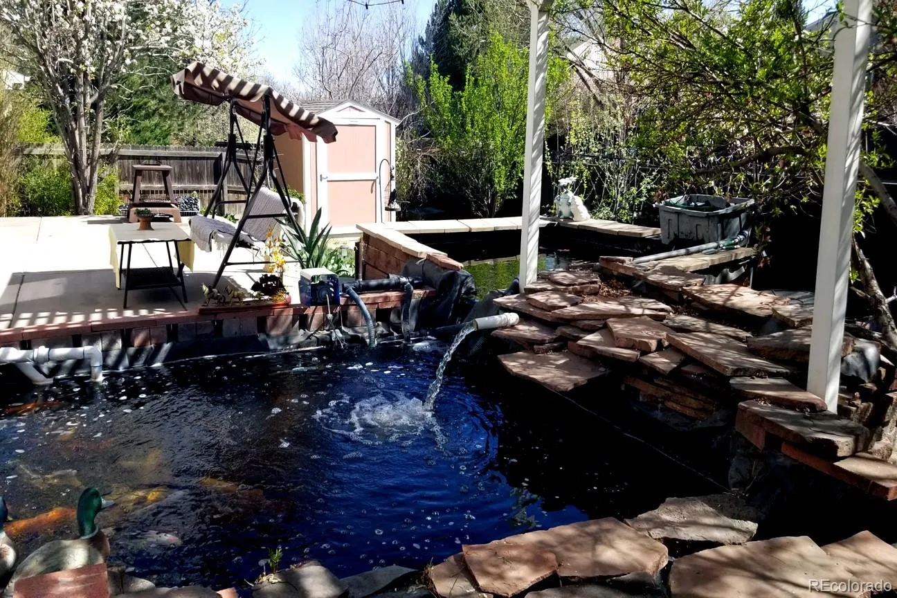 Central AC. Private backyard oasis. The expansive patio is perfect for summer BBQs and relaxing evenings, while the stunning water gardens—complete with fish that greet visitors—create a truly one-of-a-kind setting. Professionally landscaped with exotic fruit trees and evergreens, this yard is unlike anything else in the neighborhood.
