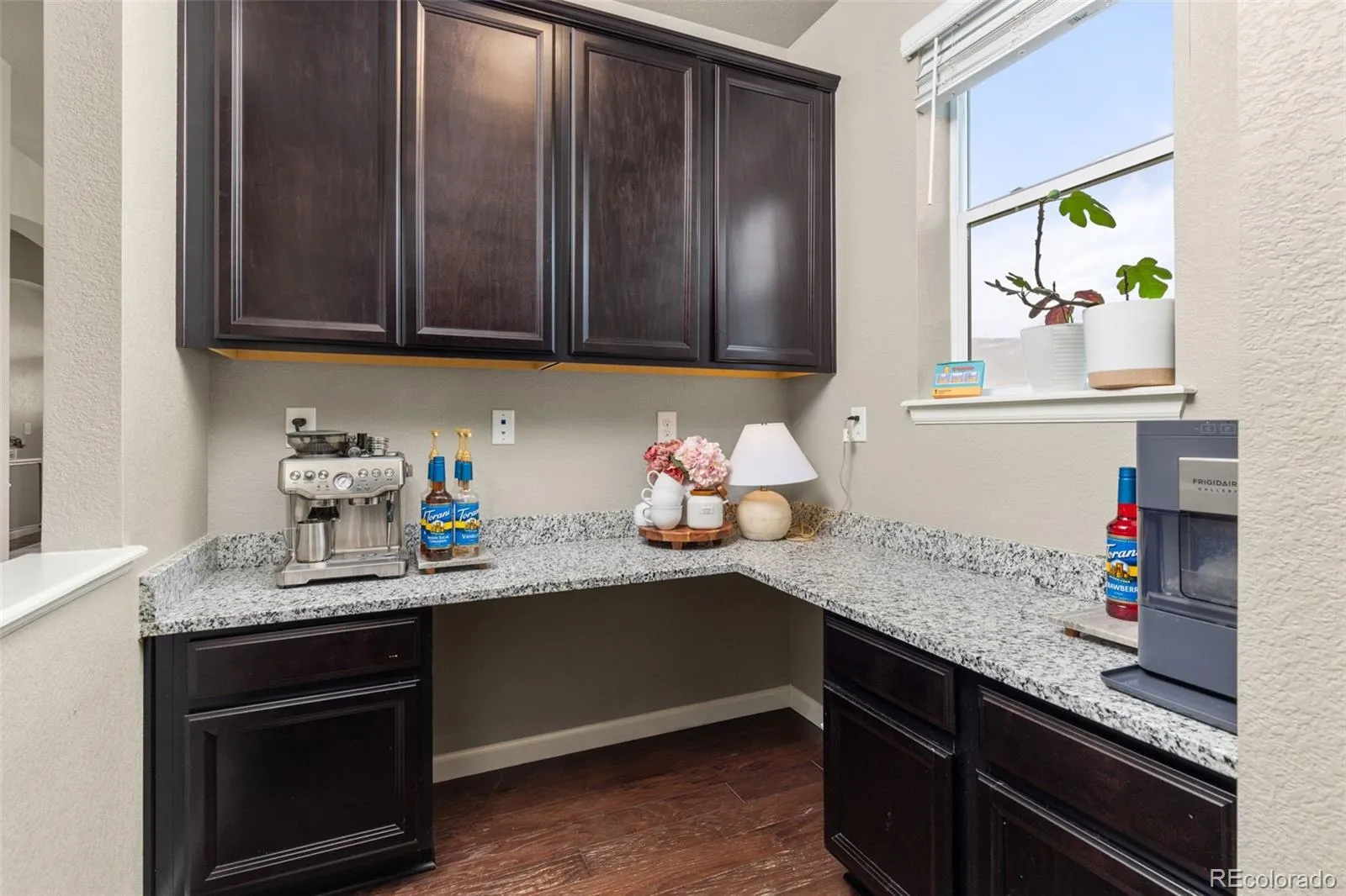 Situated on a garden-level lot, this property invites you to enjoy Colorado’s beautiful seasons with inviting outdoor living space—perfect for relaxing evenings or casual gatherings. Inside, the main level features rich hardwood flooring, creating a warm and cohesive feel throughout. The kitchen is designed for both function and style, highlighted by granite countertops and seamless flow into the living area, where a gas fireplace with custom built-ins creates a cozy focal point.