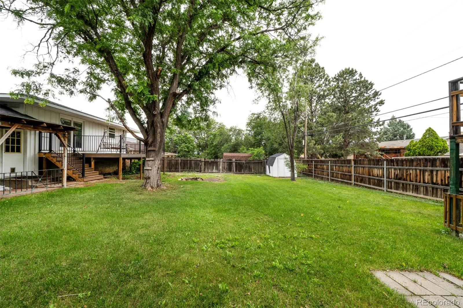 Well designed bi-level home located on a spacious 0.19-acre lot in the tranquil Belmont neighborhood of Pueblo. No HOA. Offering 2,195 square feet of living space, this 4-bedroom, 2-bathroom residence blends comfort, style, and functionality. Enjoy year-round comfort with central air and heating. The upper level features hardwood floors throughout the living room and bedrooms, while the bright and airy living room includes French doors that open to a backyard deck, perfect for outdoor dining and relaxing evenings. The eat-in kitchen offers tile flooring, a ceiling fan, and plenty of cabinet and countertop space for meal prep and storage. Included appliances are a refrigerator, dishwasher, gas range oven, vent hood, and countertop microwave. Three upper-level bedrooms each feature lighted ceiling fans and share a full hall bath with a vanity, framed mirror, and tub/shower combination. Downstairs, the garden-level primary suite is a spacious retreat with neutral carpeting and a luxurious 5-piece en-suite bath complete with a jetted tub, separate shower, tile flooring, and vanity. The lower level also includes a large flex room, ideal as a family room, office, gym, or guest bedroom—and a spacious laundry room with washer, dryer, clothes-hanging bar, and extra storage space. Oversized 1-car garage with workshop space. Room for RV parking on the side yard. The fully fenced backyard features mature trees, a Rainbird sprinkler system, deck, and covered patio, perfect for outdoor entertaining and fun. There is also a play house for the kids and storage shed for tools and toys. Ideally located close to schools and local parks with easy access to I-25 and Highway 50. This delightful home is ready for you to make it your own!