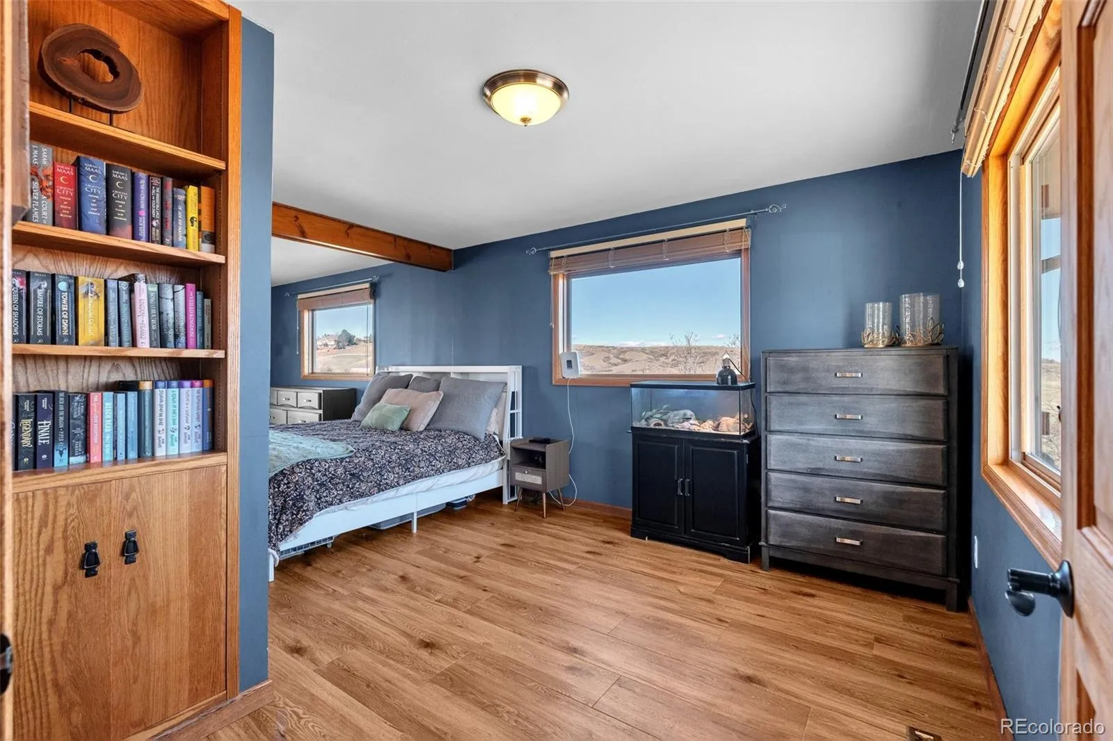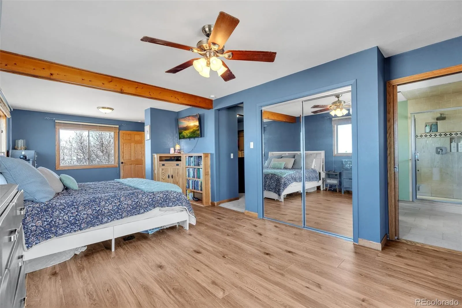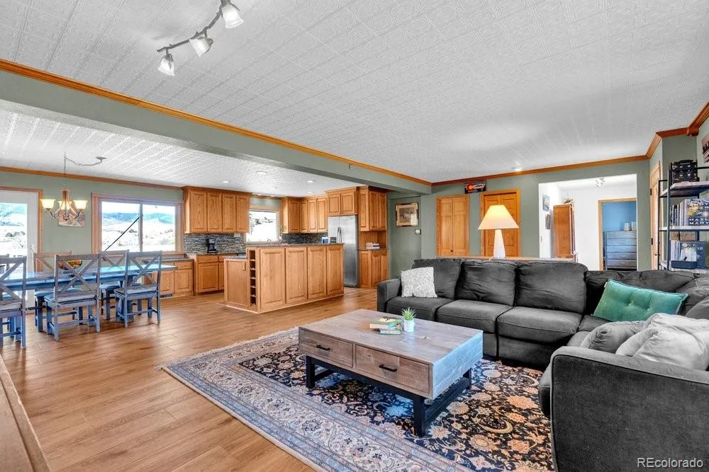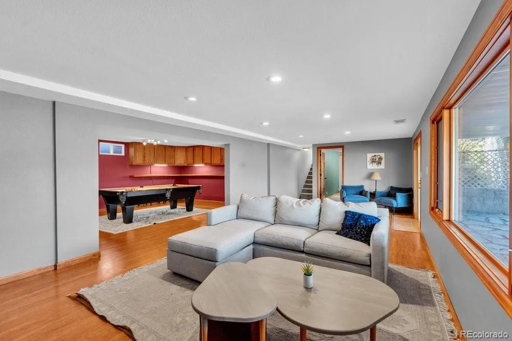 Tucked away at the end of a private cul-de-sac on 5 quiet acres, this exquisite 3500 square foot stucco & stone home is located within the sought-after equestrian community of Indian Creek Ranch. This beautiful home features new flooring, embossed ceiling tiles, floor-to-ceiling stone gas fireplace, lots of windows all framed by breathtaking mountain views. Designed as a culinarian’s dream, the kitchen boasts granite countertops, custom backsplash, new dishwasher, 42-inch high cabinetry w/crown molding, built-in wine rack & a butcher bar. Enjoy the convenience of 100% main-floor living with an expansive primary suite featuring a reading nook, new flooring, dual closets w/built-in drawers, glass doors to the deck and a 5-pc bath featuring dual sinks, a jet tub & heated floors. Even the laundry & mudroom are thoughtfully positioned on the main level to maximize ease & functionality. The walk-out basement expands your living space with 3 additional BRs, full bath and a billiards room which includes the pool table! Glass doors lead to a fenced flagstone patio, complete with a firepit & custom rock water feature—perfect for Colorado evenings. The home also features a humidifier, whole-house filtration system, a 2022 A/C unit and don’t forget the attached, oversized 2-car garage, complemented by an expansive driveway & apron that offers plenty of room for guest parking! Equestrians will find everything they need in the 3-stall heated barn, equipped with electricity, Nelson Automatic Waterers, a tack room & storage for plenty of bales of hay. Within the barn is an insulated & heated workshop which provides the perfect space for projects. Located adjacent to a bridle path, the property also grants access to a community arena, playground & clubhouse. Despite its privacy, you remain minutes from top-rated schools, shopping & dining. With its rare combination of beauty, comfort, friendly neighbors & low HOA fees, this is the ultimate retreat for you & your horses.