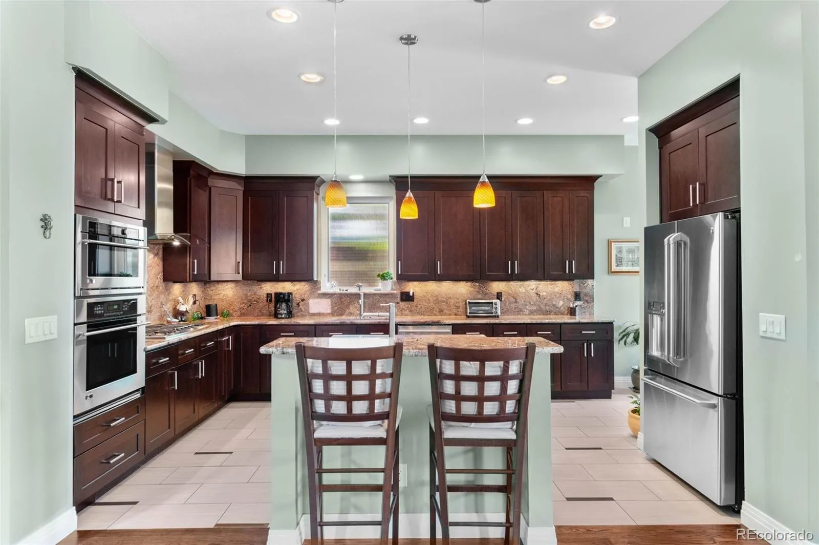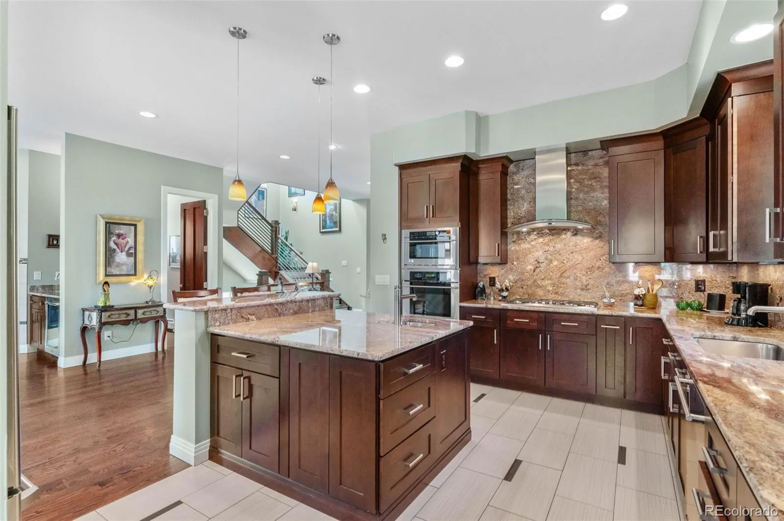 Exquisite home for buyers requiring premium quality of construction and innovation of features, this Developer’s own personal home is perfectly situated where Cory Merrill meets Bonnie Brae and excels amongst its peers. No expense spared! Upgrades flowing throughout the home include 10′ ceilings, solid core 8′ hand rubbed doors, matching custom built-ins throughout, hand blown Italian sconces & tray lighting, chandeliers, handmade iron stair railings and fences, art niches EVERYWHERE, ribbed windows facing neighbors for light while maintaining privacy, and top-grade materials and fitment throughout. An open floorplan blends with distinct living areas, upon entry you are greeted by a sitting/piano room, formal dining room for 12, and office with custom built-ins and a separate exterior guest entry for privacy. The kitchen is adorned with granite, quality cabinets with soft close, GE Monogram appliances and under-cab lighting, which leads to a breakfast nook and walk in pantry. The powder room is finished with imported sink and features a “doggie door” that leads to an exterior enclosed, sheltered, & illuminated dog run. The living room features a wet bar with beverage center & more built-ins. The 2nd floor primary suite is complimented by a Ritz Carlton reminiscent 5-piece bath with soaking tub & steam shower, custom walk-in closets and French doors opening to an 11×11′ patio. Large junior bedrooms are adjoined by a 4pc bath, and nearby laundry. The basement is entertainment galore with a full bar, Infrared Sauna, massage room/spa, & pool table. Original plans provide for 2 egressible basement bedrooms, owner elected to delete dividers to open to den – bedroom walls can be replaced for the right price! Mature landscaping adorns an oasis like yard with gas hookups and a rare 3 car garage! Economical boiler heat for lower floors, forced air with A/C for upper floor zones! Piano, office desk, pool table included with full price offer! See links to 3D & video tours.