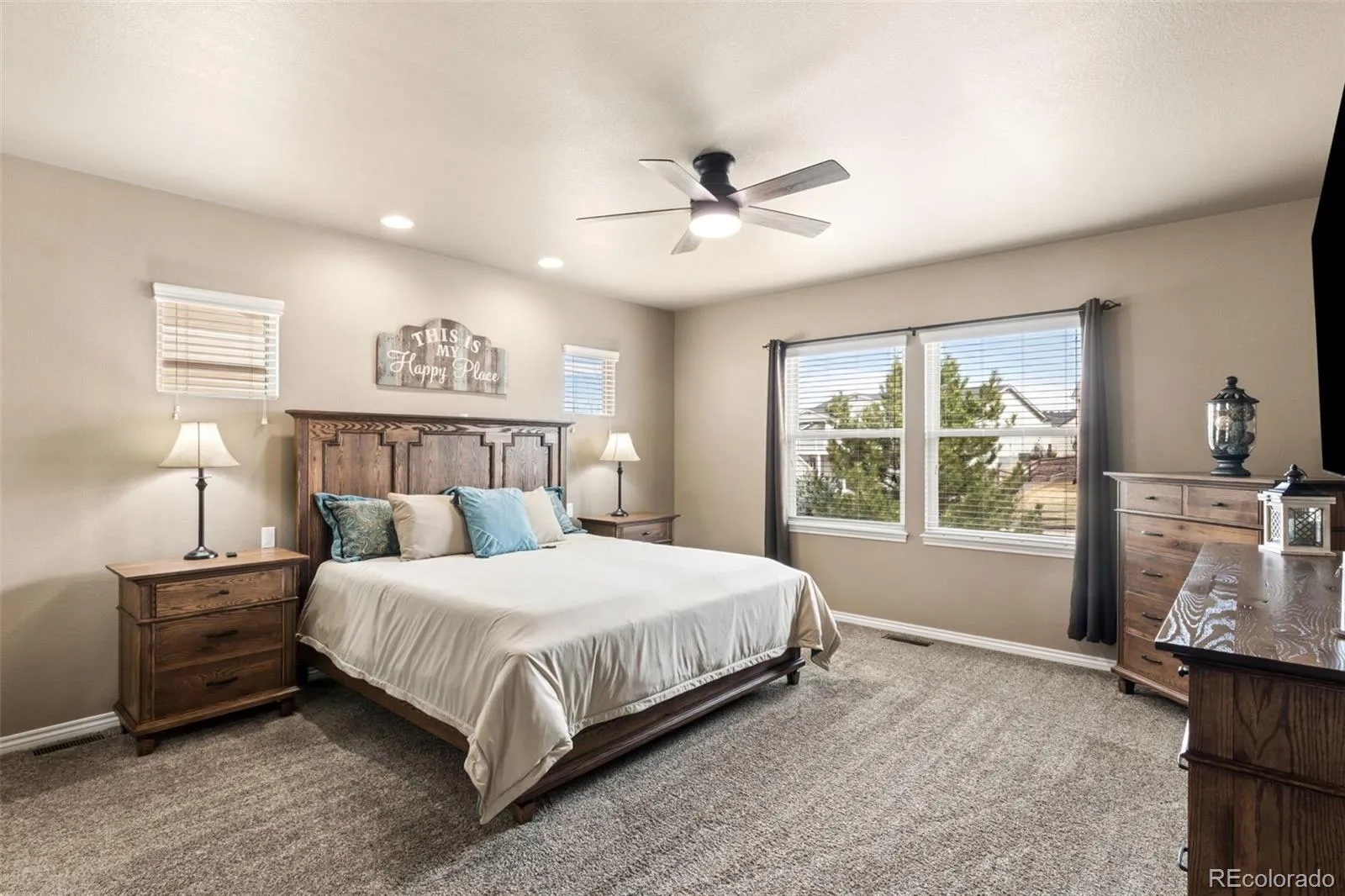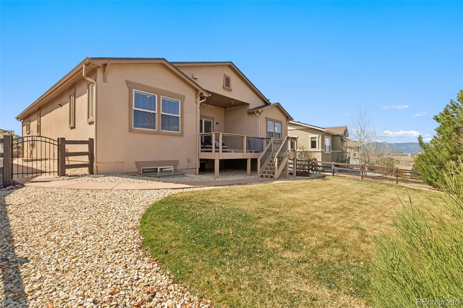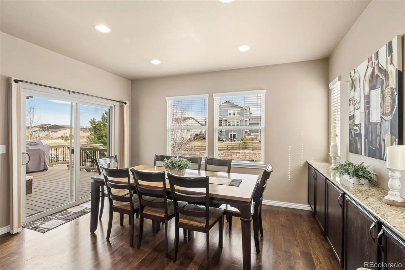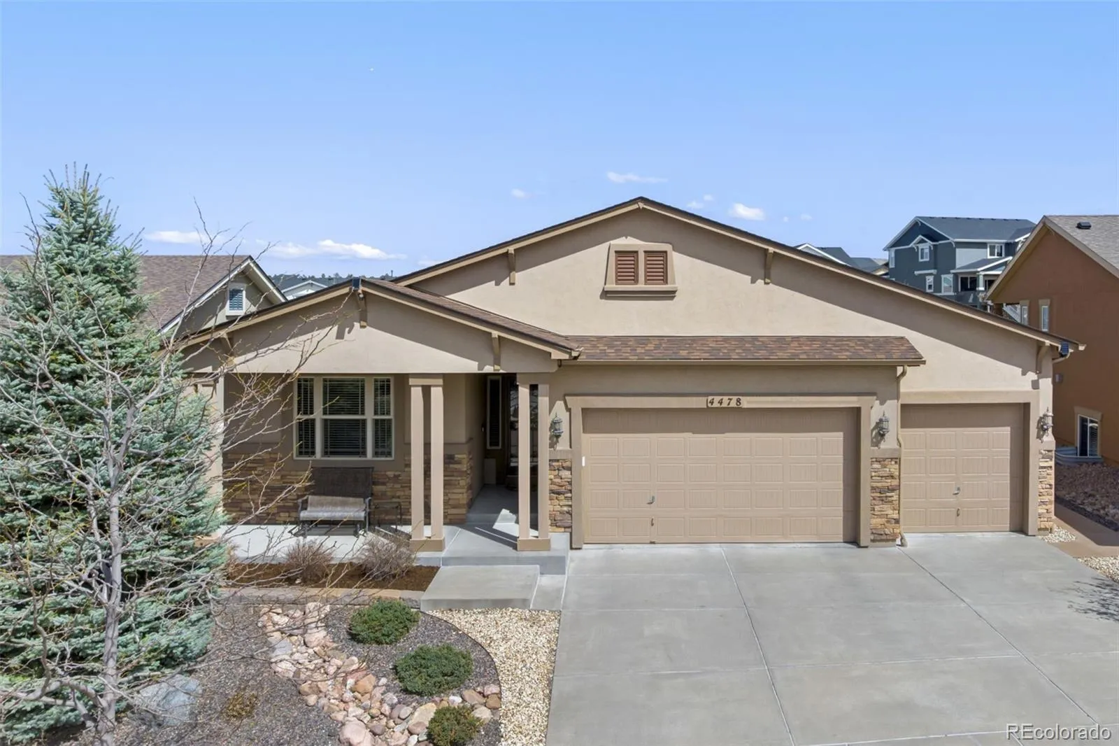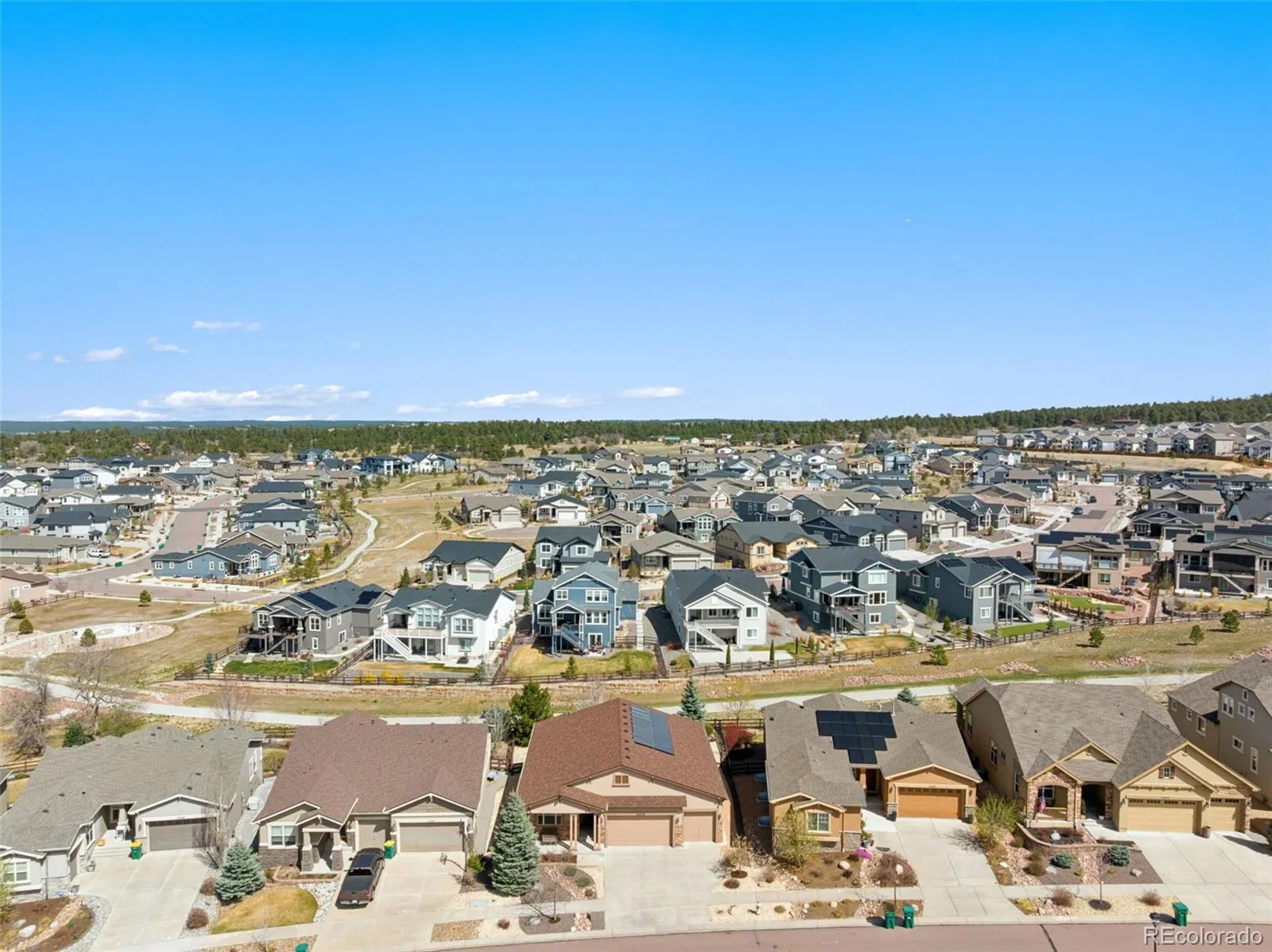 SUPER CUSTOMIZED AND UPGRADED!! Vantage Massey rancher with finished garden level basement. You name it, It’s here. Hickory Hardwood floors greet you and take you throughout most of the main level. Great room concept with high ceilings and built in speakers accented by stacked stone fireplace and Custom fan. Granite slab kitchen including double ovens and Stainless Steel appliances including washer/dryer. From kitchen, step onto the large composite deck with gas hookups, Custom window well covers and “Smart” sprinkler system for easy care yard. The Custom heated tiled and zero entry shower in master suite is gorgeous and spacious. The lower level has game room, family room, and wet bar complete with wine refrigerator plus Theatre room with TV and Theatre sofa. Other amenities include: Central Vacuum, Epoxy finished 3 car garage, Central A/C, Solar Assist, 2 EV Smart Chargers, Ring Camaras, Custom front security door, Tech center in laundry room, Radon Mitigation System, Class 4 Shingles, Hot Water Circulation System. Outdoor LED Security and year round Holiday lights. All in District 20 Schools and easy access to I-25 and SO Much, Much More!!