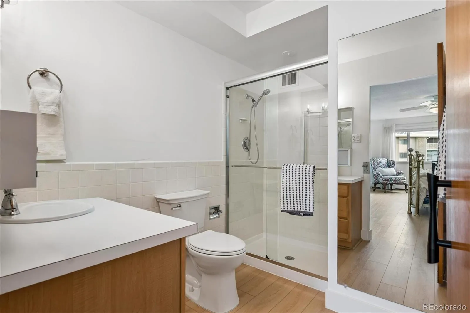 Updated bathrooms with new sinks, faucets, lighting, and a new shower enclosure