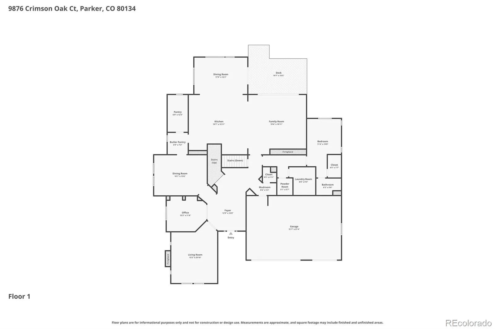 Luxury Home in the Prestigious Timbers Pinery Neighborhood in Parker Colorado. A very rare offering of one of the largest floorplans featuring 7,440 sq. ft. of living space. The home has been Professionally Designed, it is remarkable and stunning and has every imaginable amenity and upgrade including a large media room that seats 8, with a top of the line custom sound system. Every design and detail is the perfect balance of style, elegance and comfort. The home has stunning curb appeal with beautiful pine trees centered around a waterfall. There are 6 bedrooms (one is on the main level with en-suite bath) and 6 bathrooms, private office, and a finished basement. There is a beautiful foyer with 20 foot ceilings and a grand chandelier and designer lighting. Natural light fills the open-concept main level with soaring two story ceilings and expansive windows framing the living room centered on a gas fireplace with custom tile to the ceiling. As you proceed through the main floor you enter the designer kitchen crafted for everyday living and entertaining, with custom cabinetry stacked to the ceiling with smart pull-outs, tile backsplash, quartz counters, chefs appliances that create a space both functional and beautiful. Just off the kitchen is a large family room with a fireplace with a giant stacking window slider that leads to the covered patio with mountain views. The kitchen flows into the dining area and living room, mudroom, laundry room and powder bath. Upstairs, the primary suite has beautiful mountain views and is a retreat with a double sided fireplace, custom tile to the ceiling and a large serenity seating area. The spa inspired bath includes a free standing soaking tub. Three additional bedrooms complete the upper level, offering ample space for family and guests. The giant finished walk-out basement includes a bedroom, bathroom, large storage areas, and a large media room with custom sound system, a large basketball court and a large three car garage.