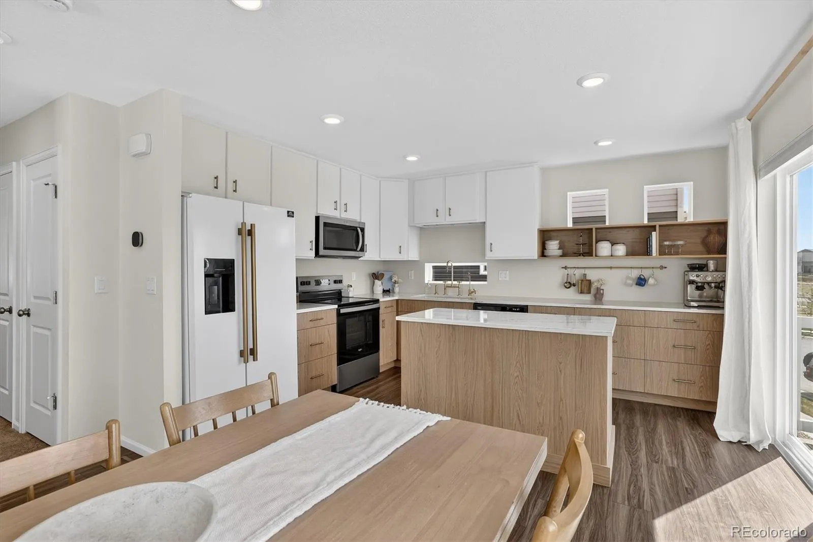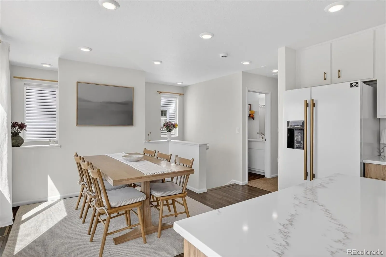 The versatile floor plan adapts to your lifestyle. As you enter, you’ll find a welcoming main-level living space—perfect as a cozy lounge, home office, or living room—plus a convenient half bath. Upstairs, the heart of the home opens up with a bright kitchen and flex area currently being used as a formal dining room. The seller has upgraded the space with a custom island and additional cabinetry, and is even willing to extend the island for bar-top dining—ideal for casual meals, entertaining and using the flex space as your main living area.