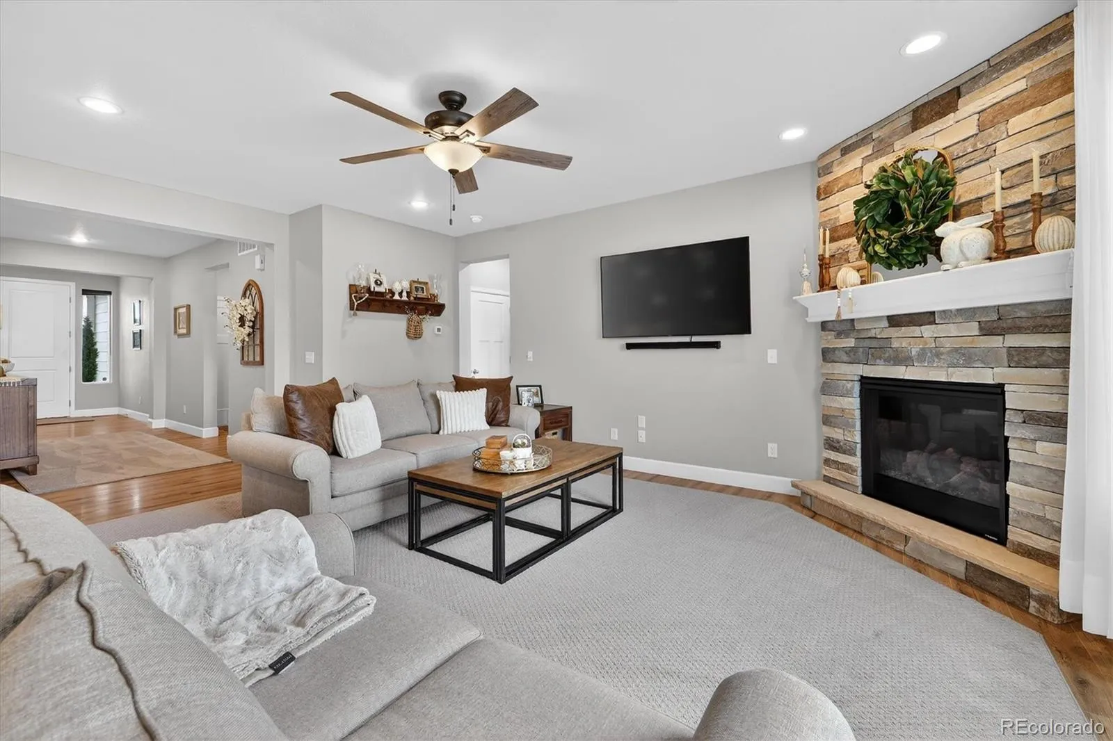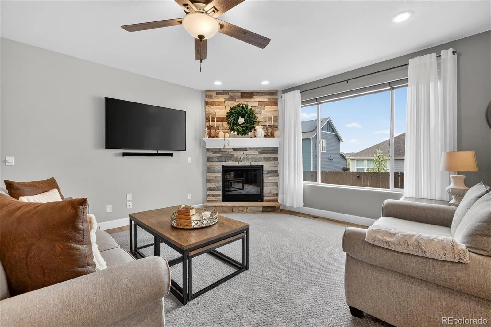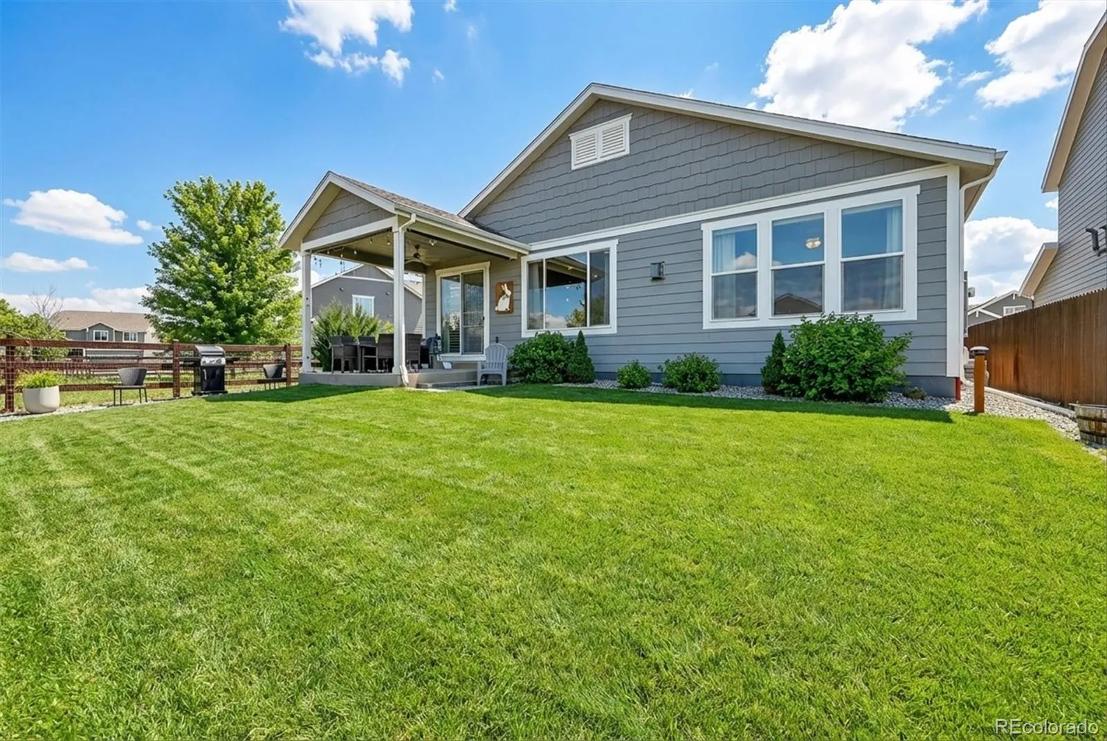 OPEN HOUSE SAT 4/11 (11:00-2:00pm) – Searching for a Ranch home in Mead priced under $500K that offers modern design, privacy, and a standout lot? This Highlands property delivers single-level living, a bright open layout, and thoughtful upgrades throughout, all positioned to compete strongly in today’s market. Welcome to 16738 Beaumont Blvd, a well-maintained ranch built by Richfield Homes featuring 3 bedrooms, 2 baths, and 1,666 sq-ft of functional living space. The home sits next to a greenbelt and walking path, creating a bright and private setting with a corner-lot feel without added maintenance. Inside, the open-concept layout connects the living room, dining area, and a designer kitchen complete with granite countertops, white tile backsplash, a 36-inch gas cooktop, built-in oven and microwave stack, and a large island with farmhouse sink and seating for three. The living area is anchored by a custom floor-to-ceiling stone gas fireplace, a standout upgrade added after construction. The primary suite is privately located at the rear of the home and filled w/ natural light, featuring a dual sink vanity, oversized shower w/ bench, private toilet room, and a spacious walk-in closet. Two additional bedrooms and a full bathroom are positioned near the front entry. A functional mudroom w/ built-in shelving, bench seating, and coat storage connects to the laundry room and attached 2-car garage. The backyard features a covered patio, a $16K builder upgrade not commonly found in nearby listings. Located in the Highlands neighborhood with parks & trails, and within the St Vrain Valley School District. Convenient access to I-25, Hwy-66, and nearby cities including Denver, Boulder, & Fort Collins. Mead’s small-town charm continues to grow with new additions like Ziggi’s Coffee. With limited homes offering this level of cleanliness, designer finishes, and thoughtful upgrades, this property stands out as a move-in ready opportunity in today’s market. Come take a look today!