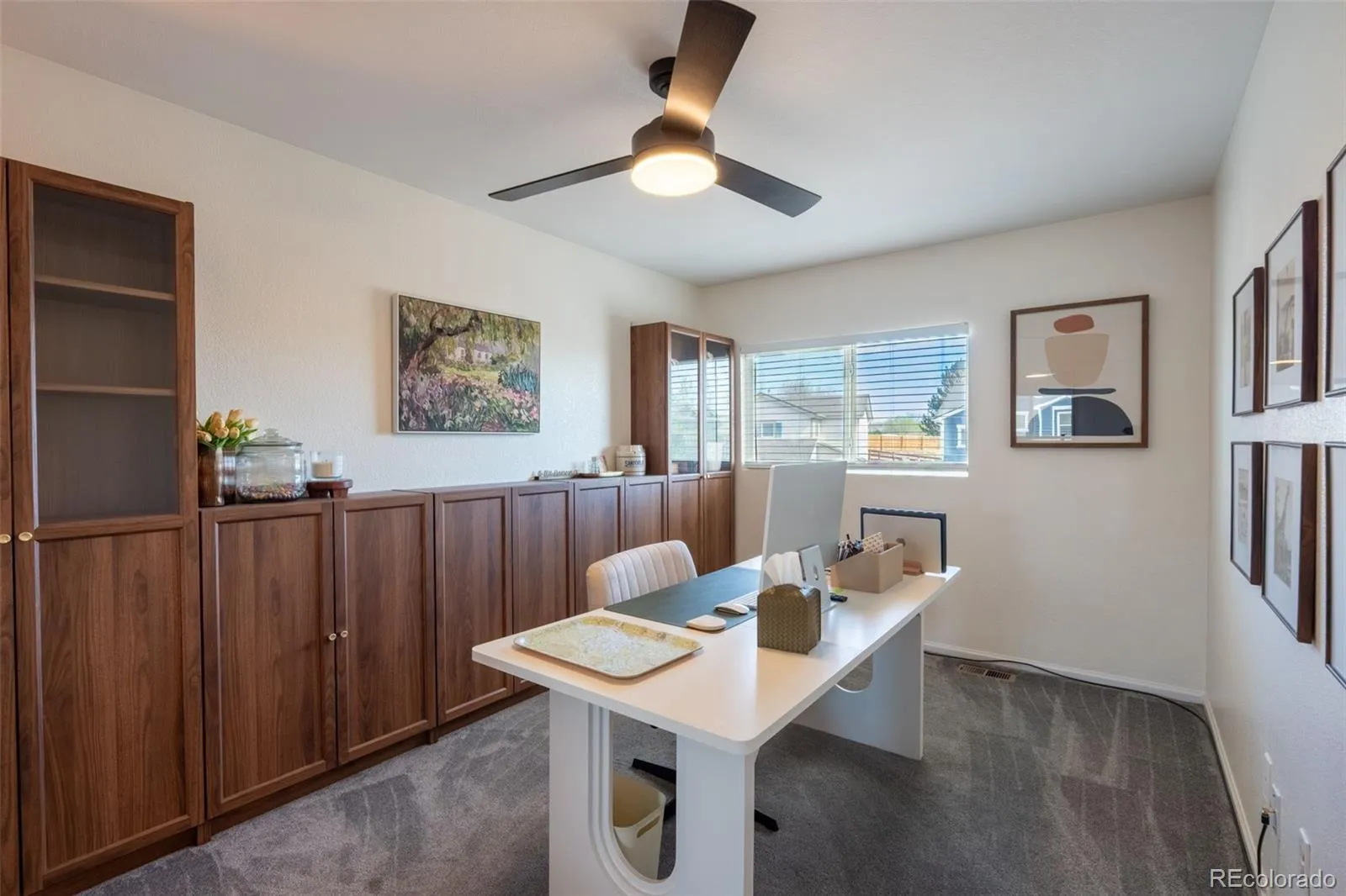 The open-concept main level features hardwood floors, abundant natural light, and a fully renovated kitchen with quartz countertops, custom pantry, induction oven, smart-capable appliances, new dishwasher, and dedicated coffee bar. The sought-after main-floor primary suite includes a beautifully renovated en-suite bath and custom walk-in closet. Upstairs offers three additional bedrooms, a bright loft, and a spacious laundry room with built-in storage and countertops. One bedroom includes custom built-ins, ideal for a home office.