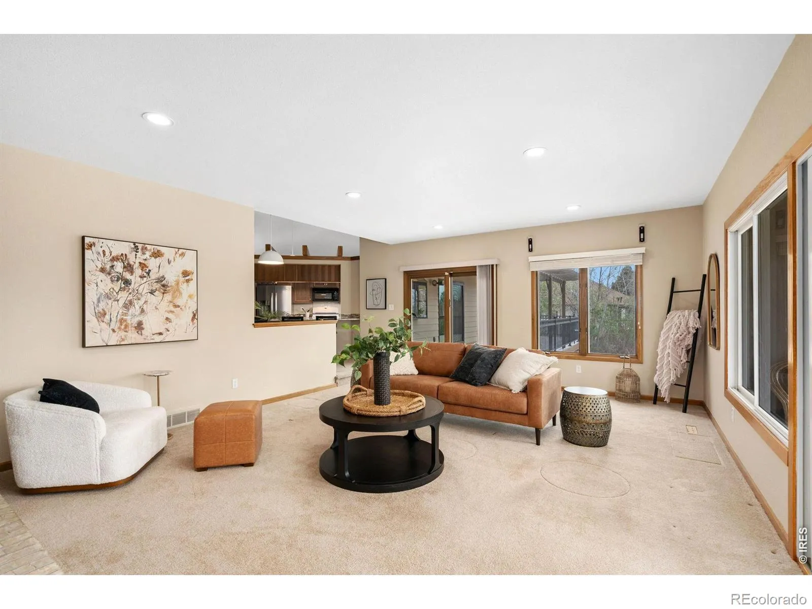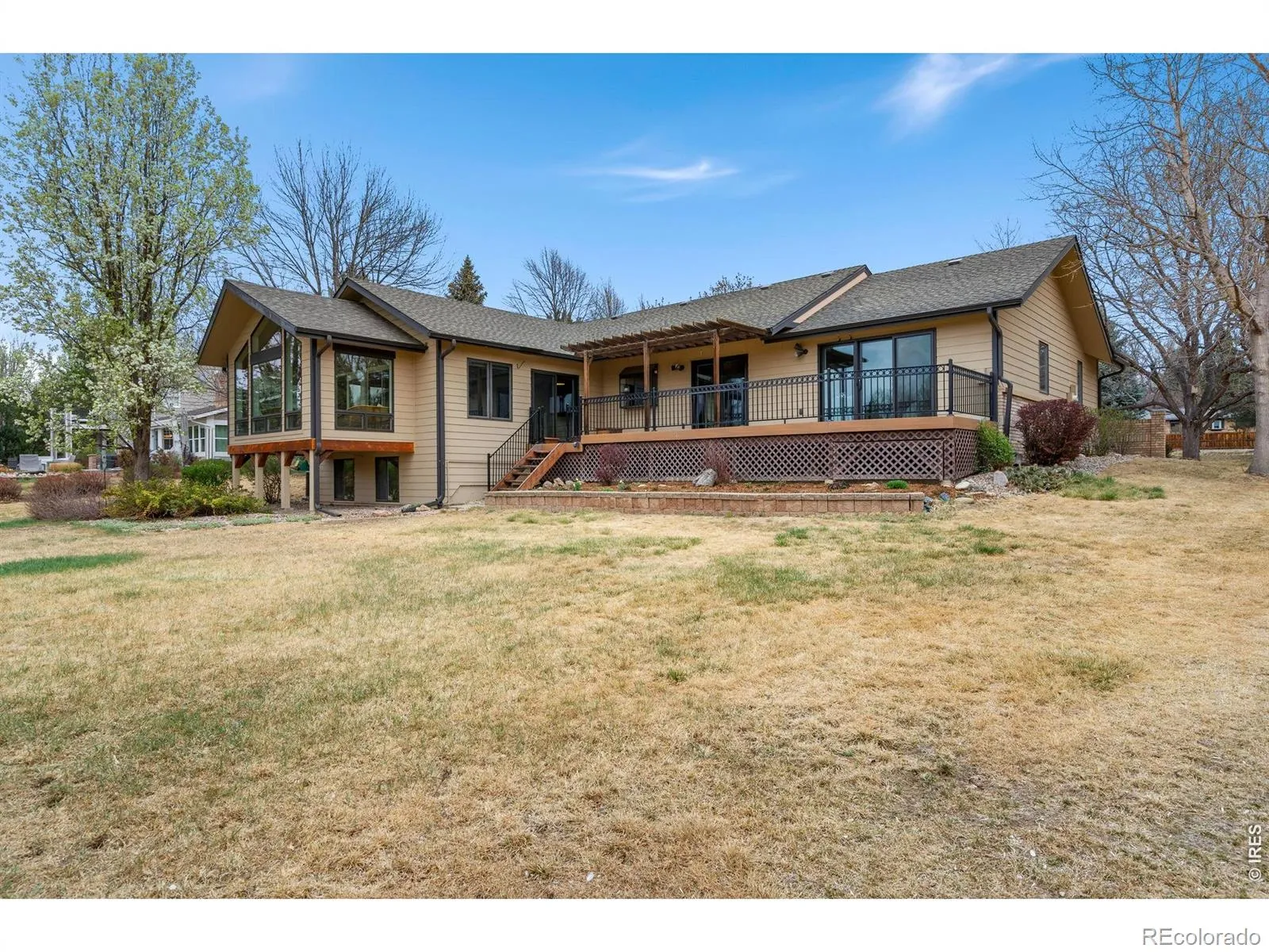 Set along the peaceful edge of open green space with views stretching toward Lindenmeier Lake, this custom ranch residence offers a rare blend of privacy, scale, and everyday livability.Thoughtfully designed for both refined entertaining and comfortable daily living, the main level unfolds with intention. A welcoming living room with custom built-ins creates an elegant first impression, while the heart of the home transitions seamlessly into an expansive family room anchored by a gas fireplace. Walls of windows and multiple access points invite you onto the composite deck, creating a natural extension of indoor and outdoor living.The kitchen is both functional and inviting, featuring a peninsula with seating, a dedicated breakfast nook, and effortless connection to a formal dining space finished with warm wood flooring. Whether hosting intimate dinners or larger gatherings, the flow supports it all.Privately positioned, the primary suite serves as a retreat with direct deck access, a spacious walk-in closet, and a well-appointed bath with dual vanities and a walk-in shower. A fully enclosed sunroom offers a tranquil setting to enjoy Colorado’s changing seasons year-round.The lower level expands the lifestyle possibilities with a generous recreation room filled with natural light, a flexible bonus space, additional bath, and extensive storage.For those who value space for hobbies, vehicles, or projects, the oversized heated three-car garage is a standout, featuring a high-clearance bay and over 1,200 square feet of functional space.With shared access to Lindenmeier Lake and a setting that balances quiet surroundings with proximity to Fort Collins amenities, this home presents a unique opportunity to enjoy space, nature, and comfort in one cohesive offering.
