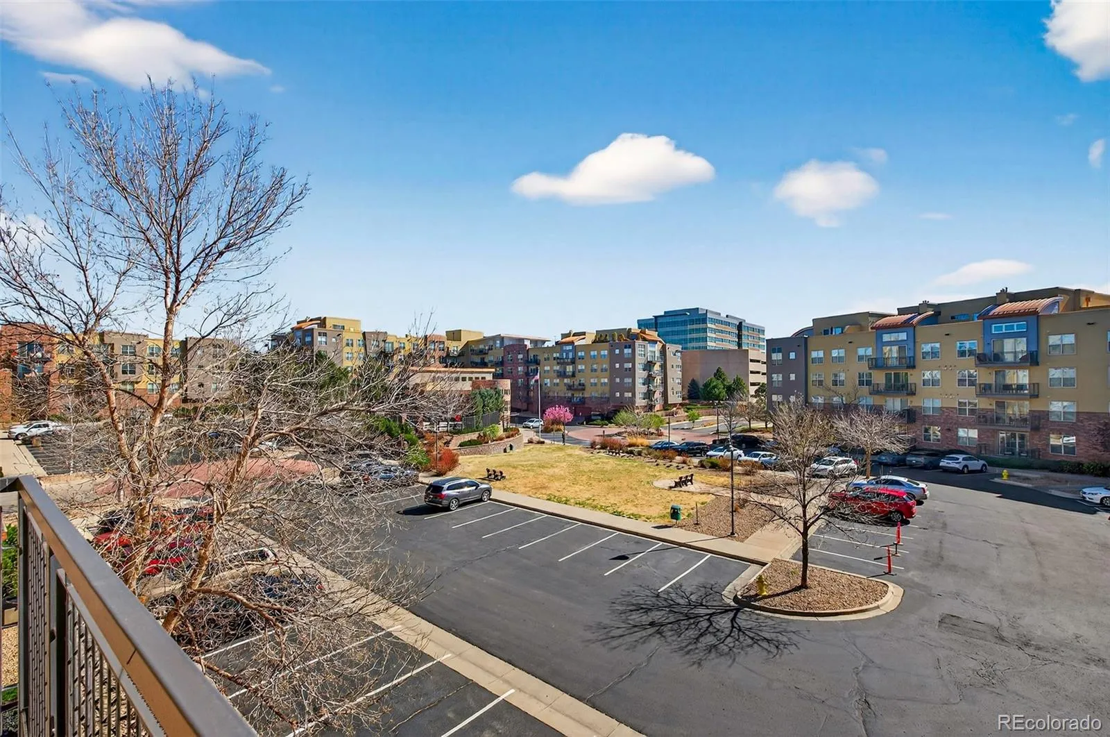 Rarer top floor 1 bedroom with Full AND 1/2 bath condo with unique office you could run a company from with TERRIFIC counter and cabinet built-ins. Quiet, near end of hallway. Spacious 14×13 bedroom has large windows, high ceilings and ceiling fan, walk n closet with custom metal shelving system. Roomy full bath with tile counter. Living area is 19×13 with remote operated ceiling fan, gas fireplace with mantle, hardwood flooring and a dining area. Kitchen features LOTS of cabinets, all stainless steel appliances including refrigerator (2022), dishwasher, microwave, oven/range, granite counters and a walk up granite counter/bar. Stacked washer/dryer combo (2021) is also included. East facing (cool in Summers!) 13×6 balcony includes a gas valve for BBQ or small winter heater. Central air conditioned, high efficiency gas water heater (2004). Underground lighted secure parking space #219 is about 50 feet from interior building entry and includes a 7×4 key lock storage closet with metal shelving for tools and toys. Complex amenities include clubhouse, fitness center, pool, bike storage, electricity, water, trash/recycling, snow removal, hot tub, exterior and grounds maintenance. At Yosemite and Dry Creek, location is close to the DTC, Park Meadows, Ikea, local dining and services. Dry Creek RTD Light Rail station is 3 minutes. 1/2 mile. All information is deemed reliable but not guaranteed and interested parties should perform their own due diligence.