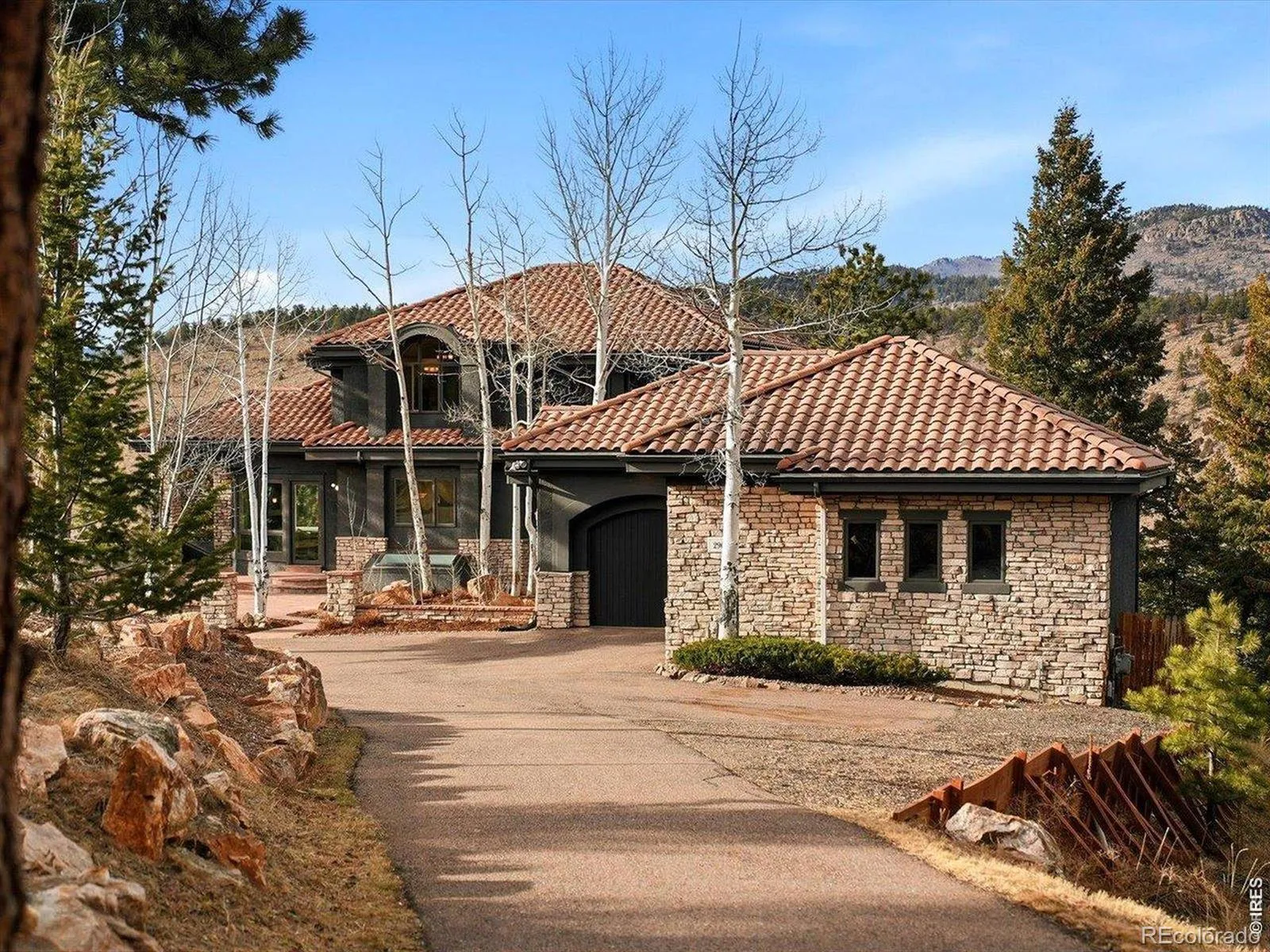 Top-of-the-World Views 10 Private Acres True Mountain Serenity. Set at the top of Skyhill Estates, 290 Skyhill offers a rare blend of privacy, infrastructure, and proximity. One of just six homes in this gated enclave of 10-acre estates, it sits at the end of the road with no visible neighbors and sweeping panoramic views.The 5,155 sq ft residence is positioned to capture mountain beauty from nearly every room. Soaring ceilings, dramatic windows, and Brazilian slate flooring create a refined aesthetic. Recent updates enhance the heart of the home, including refreshed kitchen finishes with a new Sub-Zero refrigerator and an updated primary bath with spa-quality surfaces and fixtures. The upper-level primary suite offers expansive views, a beautifully remodeled bath, and a generous walk-in closet.The walkout lower level features high ceilings, abundant natural light, a large TV/media room or office, two additional bedrooms, and a built-in reading nook-ideal for guests or work-from-home living.Infrastructure sets this property apart: radiant in-floor heat throughout (including the oversized three-car garage), a new whole-house generator, water filtration with reverse osmosis, fiber optic internet plus Starlink, and buried on-site power lines that preserve reliability and uninterrupted views. With convenient access to I-70 and Denver, the setting remains peaceful-highways and street noise are neither visible nor audible from the home.The full 10 acres are usable and private, with established trails connecting toward Beaver Brook for hiking and exploration. Community tennis and pickleball are within Skyhill Estates, just minutes to Evergreen, Golden, Denver, and world-class skiing.290 Skyhill delivers privacy without isolation, meaningful acreage, updated luxury finishes, top-tier infrastructure, and commanding views in a serene, gated Evergreen setting close to everything.