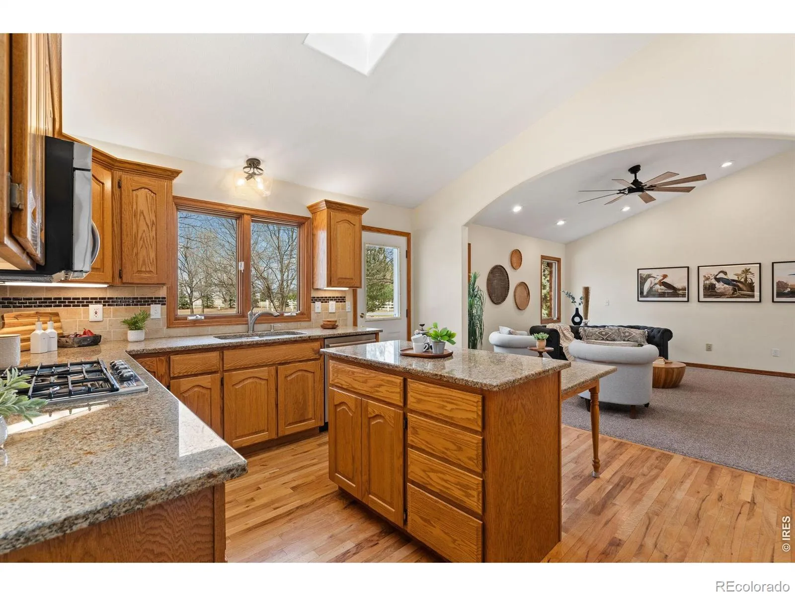 Welcome to this beautifully maintained ranch-style home set back on 1.99 acres with mature trees and a spacious outdoor patio-perfect for relaxing or entertaining. Located in the desirable Grand View Estates, this property offers quiet and peaceful acreage, non-potable irrigation water available in the summer, along with unlimited golf at the neighborhood’s private 9-hole golf course. Designed for both comfort and entertaining, this 3-bed, 2.5 bath home offers a bright, inviting floor plan with formal living and dining rooms as well as a cozy family room with gas fireplace. The kitchen is thoughtfully designed with a center island, stainless steel appliances, double oven, generous cabinetry, and granite countertops-ideal for everyday living and hosting family or friends. The primary suite features a walk-in closet and a five-piece bath with a jetted tub, new tile flooring, backsplash, and shower surround. Two additional bedrooms share a full bathroom and complete the main level. A large unfinished basement provides abundant storage or the opportunity to expand your living space to suit your needs. Additional highlights include a heated 3-car garage, south-facing orientation, newly refinished wood flooring, and low-maintenance brick exterior. This is a rare opportunity to enjoy peaceful acreage living, work on your golf game, and still have shopping close by! 1-year Home Warranty included. Listing Agent is related to Seller