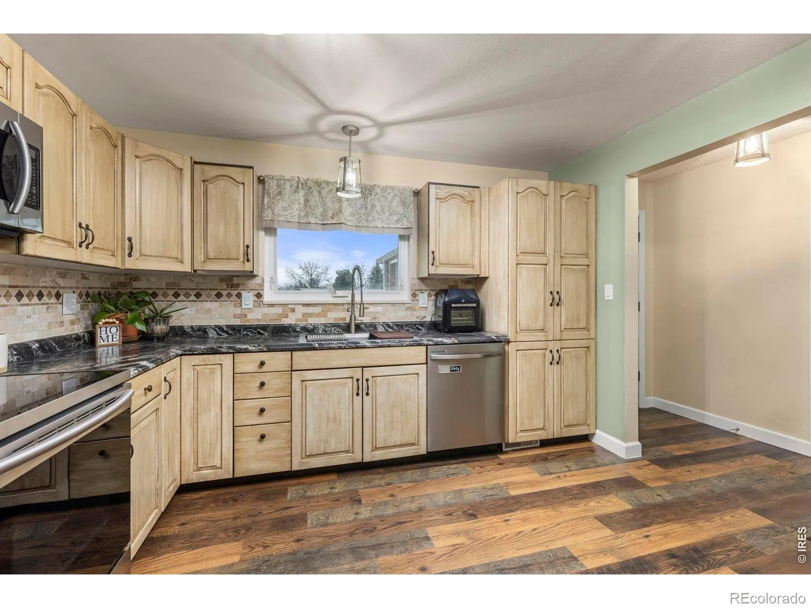 NO HOA OR METRO! Welcome to this updated 5-bedroom, 3-bath home in Greeley, sitting on a spacious 0.25-acre lot with room to live, host, and enjoy. PLUS, mineral rights are INCLUDED-royalties have been between $2,000-$5,000/year! The main level has been thoughtfully refreshed with updated flooring, updated bathrooms, and a functional kitchen featuring newer appliances and smart storage upgrades that make everyday living easy. Upstairs, all windows have been replaced within the last 3 years, bringing in great natural light and added efficiency. Step outside to a backyard that truly stands out. You’ll find a covered patio perfect for relaxing or entertaining, a dedicated garden area, and established fruit plants including raspberries, strawberries, mulberries, and grapes. There’s also a turf dog run, making it a great setup for pet owners. Additional highlights include a radon mitigation system, gutter guards, a bar area in the basement, and a large laundry room with plenty of space for storage and organization. With space inside and out, plus meaningful updates throughout, this home offers a great blend of comfort, functionality, and lifestyle.