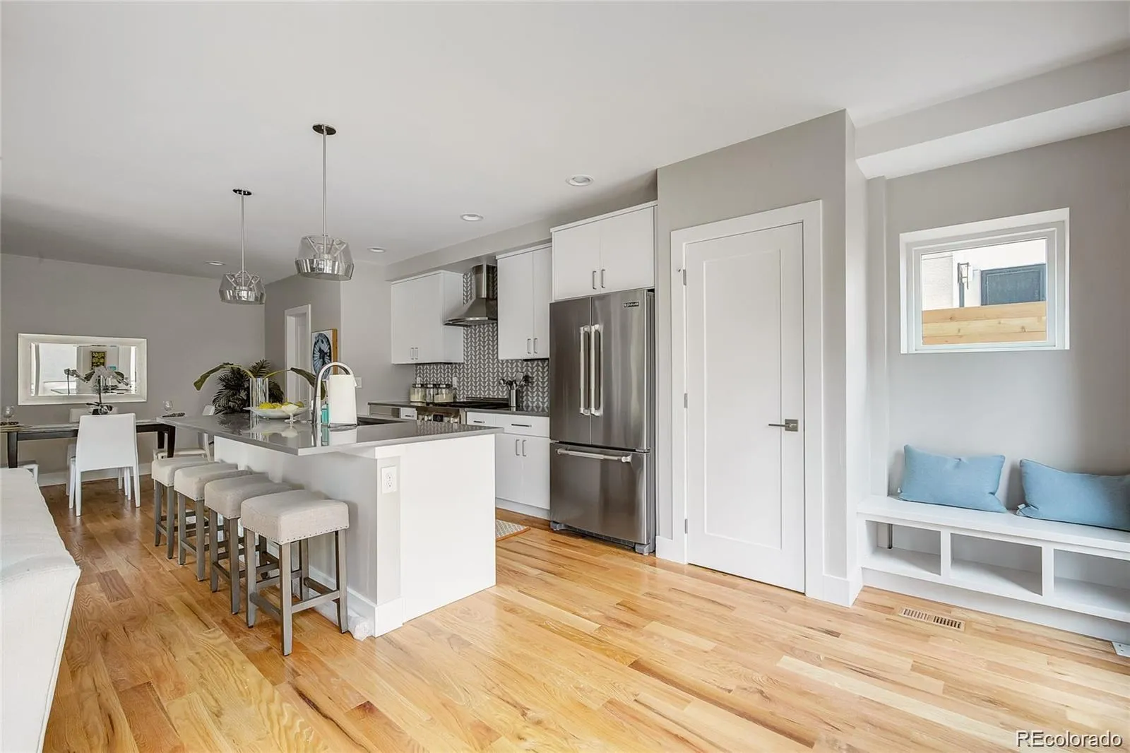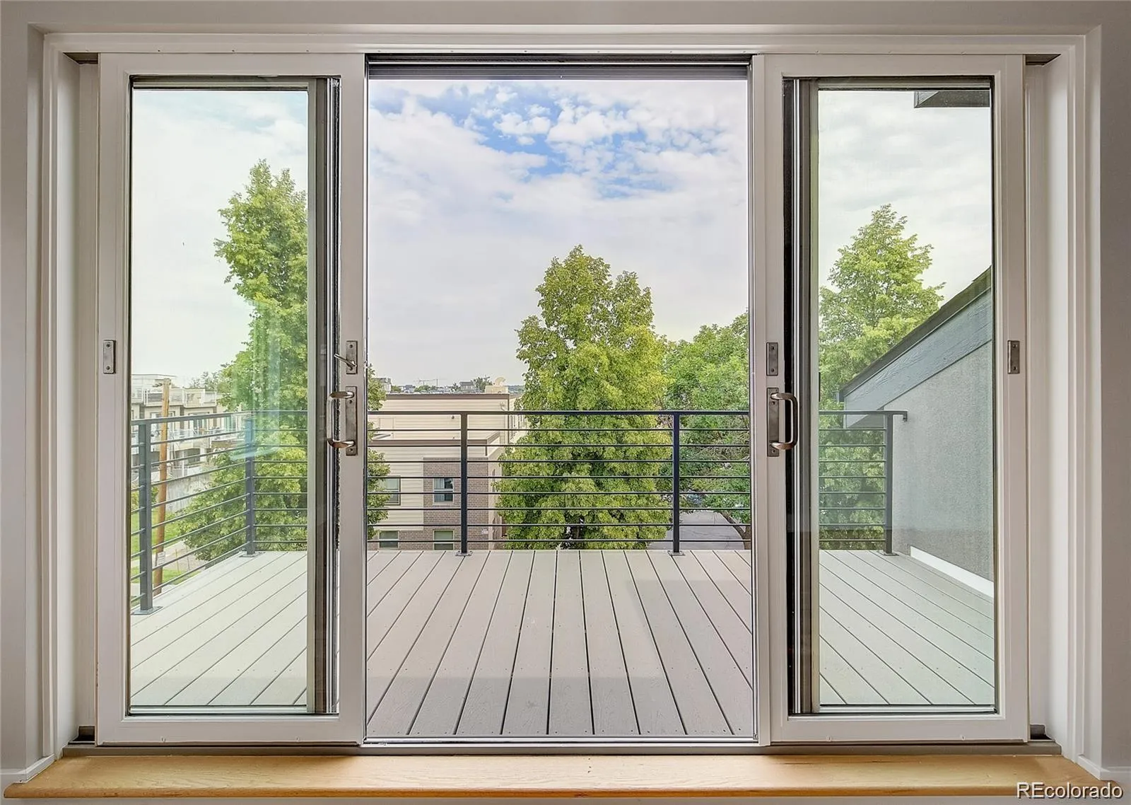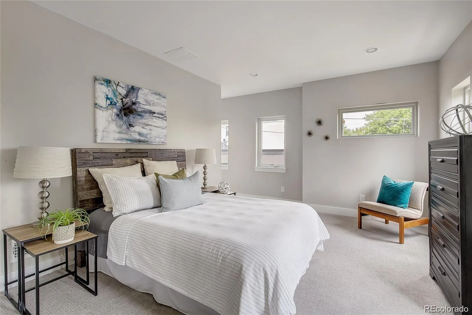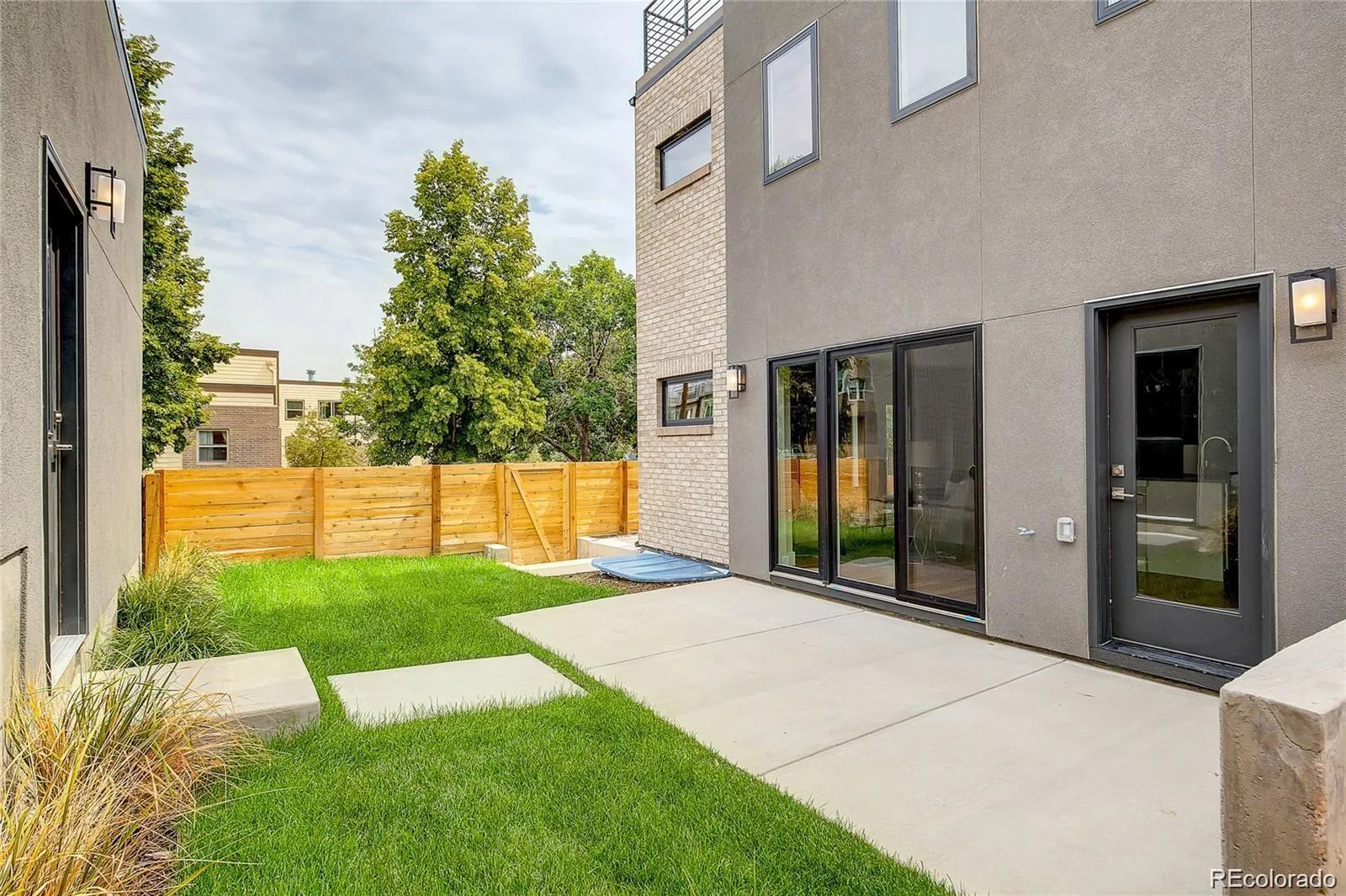 This stylish and modern 4-bedroom, 5-bathroom duplex is newly built in the vibrant heart of LoHi. Designed by professionals, it features upscale finishes including wide-plank oak hardwood floors, top-of-the-line Jenn-Air appliances, luxurious tile throughout, and a sleek gas fireplace. The main level boasts a spacious kitchen with a large island, pantry, and sliding glass doors that open to a private, fenced yard with a patio. The impressive master suite offers dual vanities, a spacious shower, a large walk-in closet with custom shelving, and heated tile floors. The second bedroom includes an ensuite bath and walk-in closet, making it ideal for roommates, children, or guests. Head up to the third level for an additional seating area with a wet bar, sliding glass doors leading to a patio with city views, a fourth bedroom, and a full bath. The fully finished basement features a large entertainment area, an additional bedroom, and a full bathroom. This home is pre-wired for sound, data, and alarm systems, all of which can be controlled via phone or tablet.
