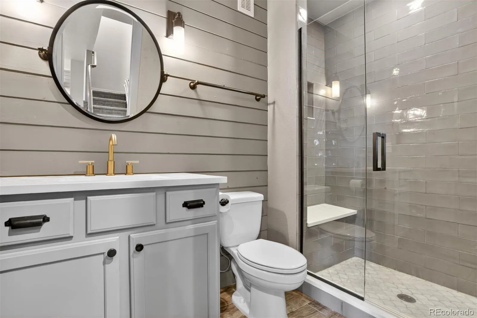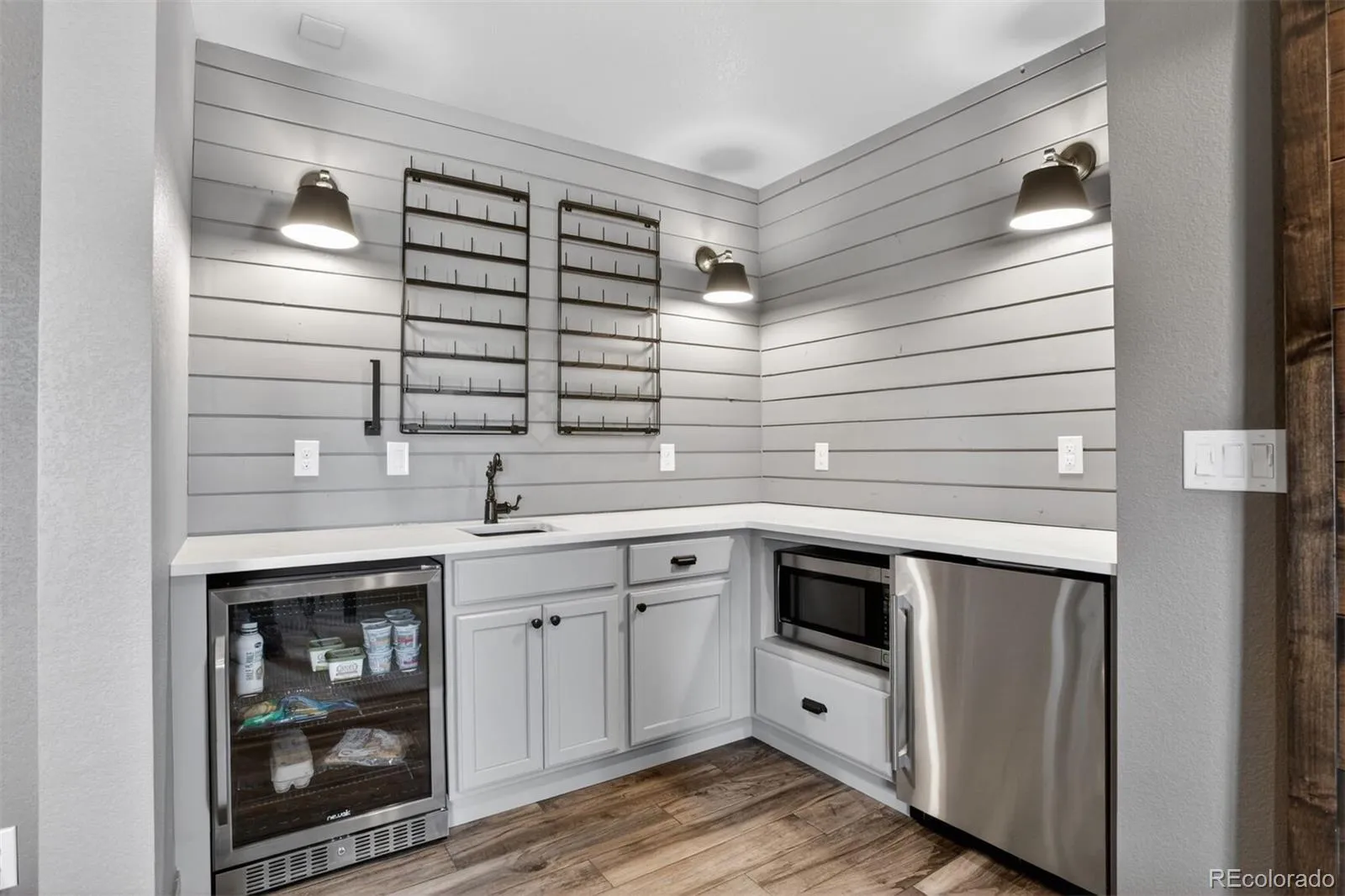 The walkout basement delivers an entertainer’s dream great room with exposed beams, stacked stone feature wall, wet bar, wine cooler, two additional bedrooms, and a fully finished home gym.