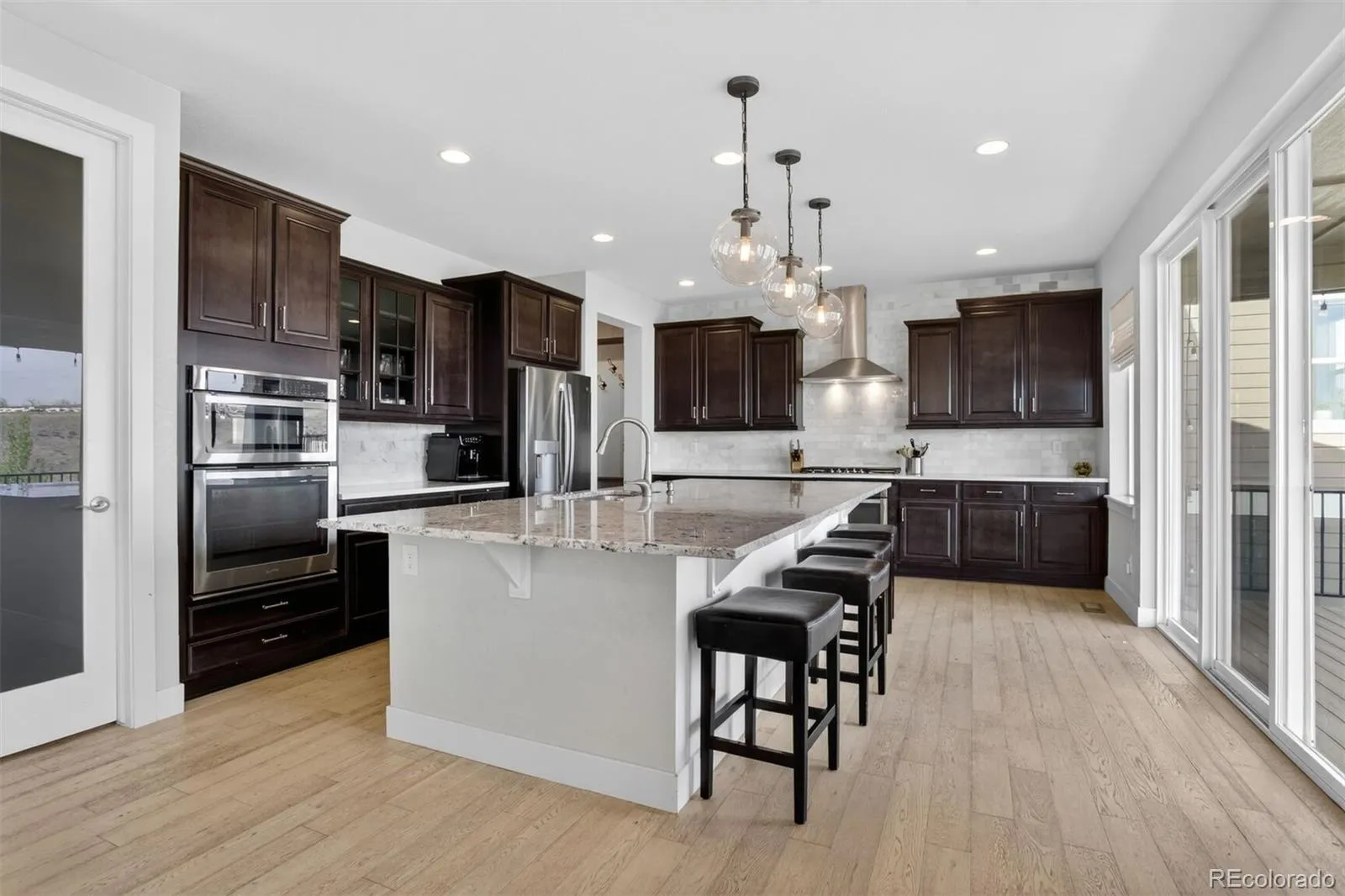 Outside, enjoy a covered deck, custom fire pit, hot tub, and low-maintenance artificial turf. The three-car garage adds overhead storage and an 11-foot ceiling. All within Leyden Rock’s prestigious community featuring top-rated schools, pool, clubhouse, and miles of trails.