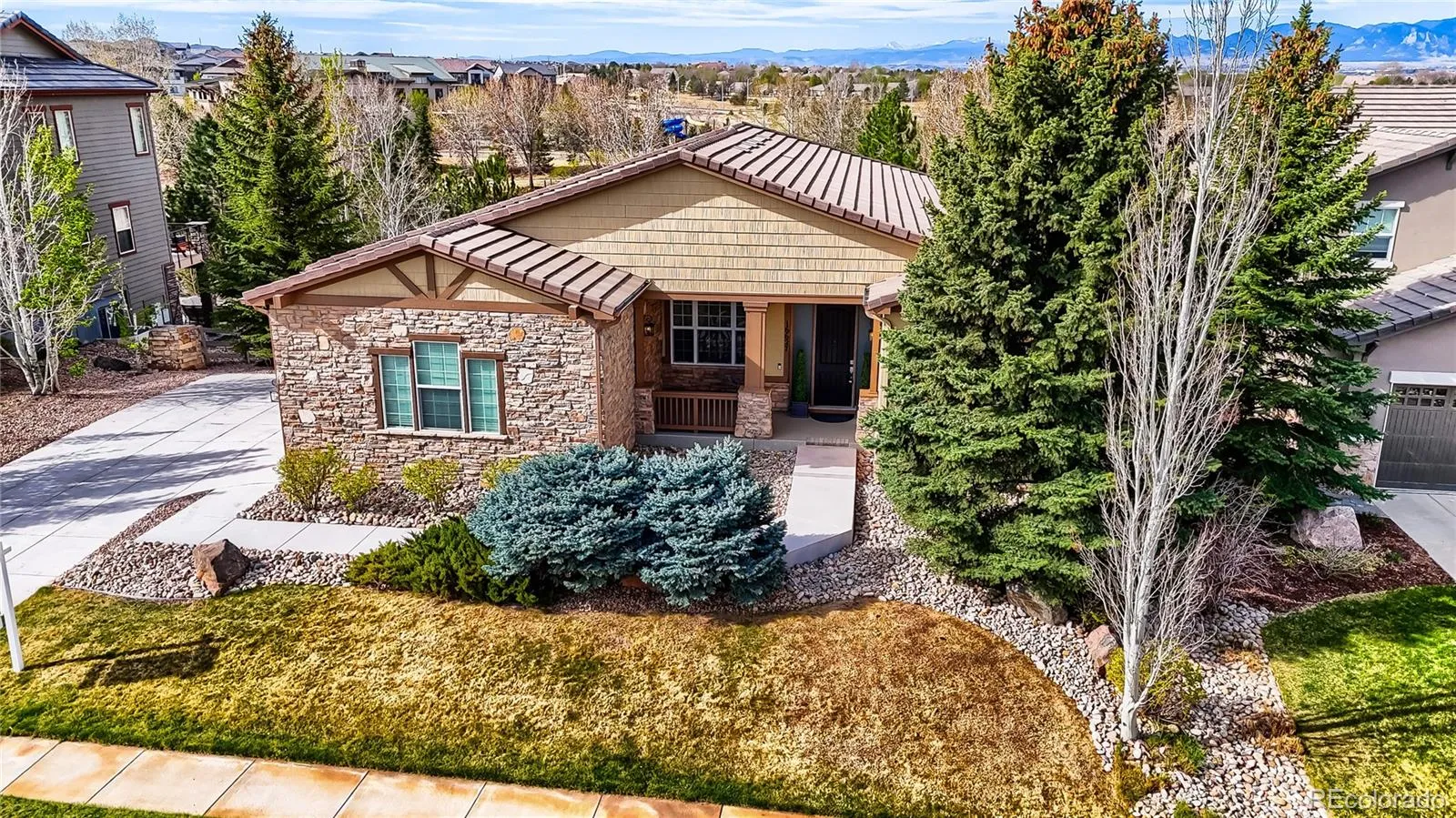 STUNNING “MONARCH” RANCH-STYLE HOME WITH COMMUNITY POND AND INCREDIBLE MT. VIEWS…Formerly the sales office and premier model home for the highly sought-after Anthem Highlands community, this exceptional property sits on a cul-de-sac near the rec center and is truly a showcase of upgrades, thoughtful design, and a professional decorator touch…a real MUST SEE. The 2,509 sq.ft. main level includes 10’ high ceilings thru-out, a welcoming foyer, 2 full baths, 1 3/4 main, 1/2 bath, 1 3/4 basement, and a large office/flex space. The comfortable LR and DR are enhanced by elegant architectural arches and flow seamlessly into a beautifully appointed kitchen and family room, both perfectly positioned to capture amazing views. The kitchen boasts a large island with seating, an under-counter sink, black granite countertops, rich cherry cabinetry, double ovens, refrigerator, dishwasher, electric cooktop with an above-range microwave, and generous pantry spaces. A charming breakfast nook offers the perfect setting for meals with a view, and the adjacent family room features a gas fireplace. The primary suite is a true retreat with stunning views, a spacious layout, and a luxurious en-suite bath complete with a Roman tub, separate shower, private water closet, cherry cabinetry, with 2 walk-in closets. The laundry is located off the 3-car garage. BUT WAIT…Approx. 1,772 sq.ft. of finished walk-out basement expands the home dramatically. Designed as an open, studio-style ”apartment”, it maximizes views and includes a patio just steps from the pond and trails. The space features a kitchenette with electric range, refrigerator, sink, and pantry, along with a dining area, LR/TV room, ½ bath, and 1 BR with a walk-in closet, plus an additional BR – bringing the home’s total to 6 BRs and 5 baths…perfect for guests and/or multigenerational living. Preppers and packrats will be thrilled with approx. 630 sq.ft. of unfinished storage space. Some of this space could be converted to a 7th BR.