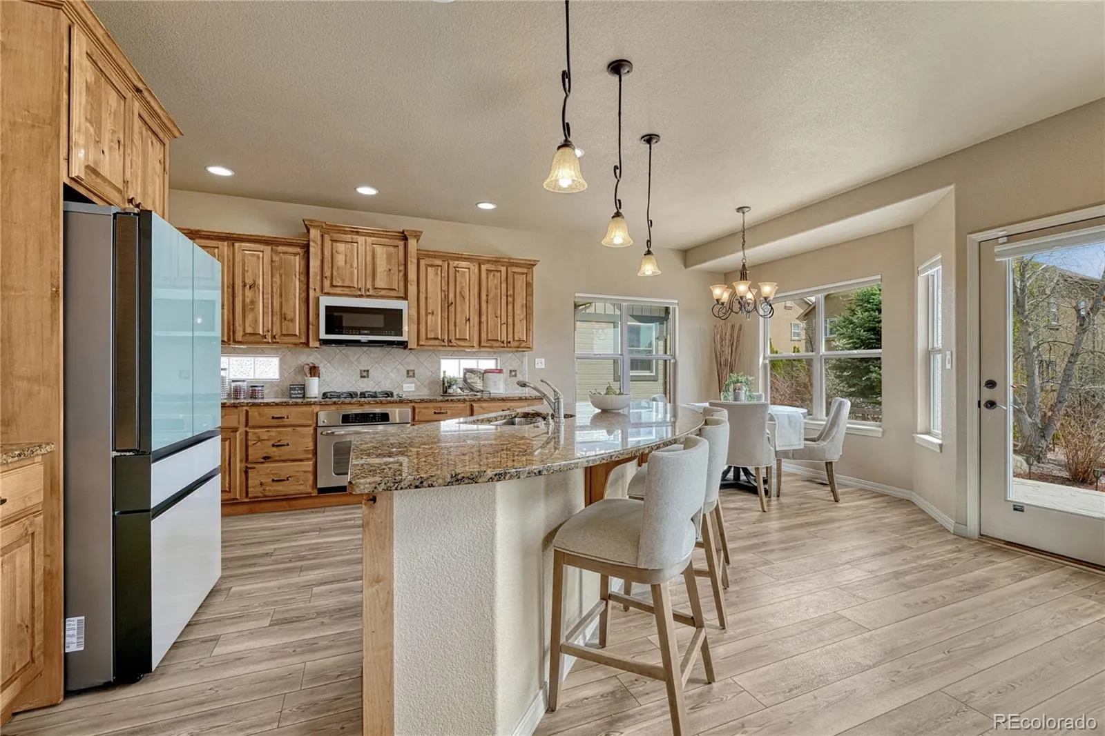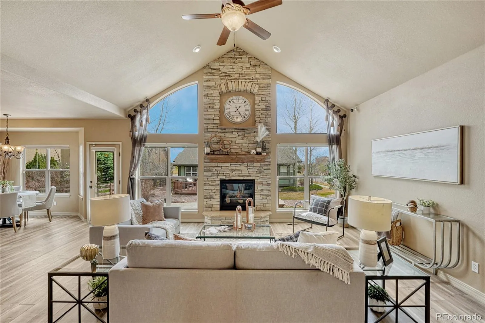 Fall in Love | Discover the True Meaning of “HOME” | Thoughtfully Designed Ranch! Conveniently situated on a corner lot in the coveted community of Wolf Ranch, this 4BR/3BA, 4,106 SQFT residence immediately captures your heart with a stunning stucco exterior, immaculate landscaping, & rustic stacked stone exterior accents. Originally built in 2010, the meticulously maintained home offers an unparalleled sense of comfort with carefully curated touches throughout the interior. Soft natural light is complemented by the gorgeous luxury vinyl plank flooring, while the organically flowing layout & separate home office add to the modern appeal. Perfect for entertaining, the open concept chef’s kitchen offers foodies the dream with granite countertops, 42” alder wood cabinets, pantry, gas stove, breakfast bar island, & a breakfast nook. Enjoy easy dinner conversations in the adjoining formal dining room, or opt for more casual vibes in the grand great room, which dazzles with vaulted ceilings & a beautiful stone gas fireplace. Continue to explore to find the main-level primary bedroom featuring a spacious walk-in closet & a luxe en suite with a soaking tub, dual vanities, separate shower, pocket door, & a water closet. An extra main-level bedroom serves as a junior suite with an attached full bathroom. Explore the finished basement to discover 9’ ceilings, huge rec room, oversized storage area with built-ins, two bedrooms (each with walk-in closets), & a full bathroom boasting a dual sink vanity. Other considerations: attached 3-car garage, laundry room w/utility sink, NEW furnace, high-impact resistant roof shingles, custom stone patio, built-in fire pit, Wolf Ranch Recreation Center & pool access, Gateway Park, convenient access to the Air Force Academy, Shriever, and Peterson, near shopping, hospitals, entertainment, & I-25 (easy commutes to Denver and Downtown Colorado Springs), & much more! Come see today, and start living your best life!