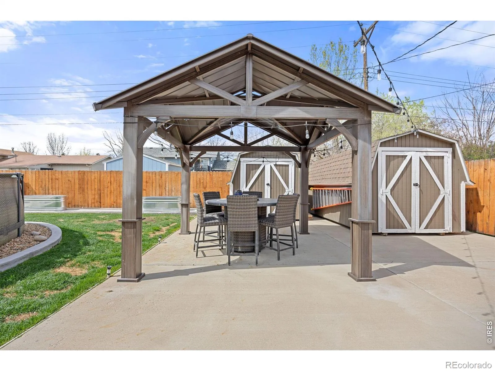 Ideally located in central Loveland near Benson Sculpture Park, Lake Loveland, North Lake Park, multiple schools including Loveland High School, shopping and restaurants, this beautifully maintained home offers an exceptional blend of comfort, upgrades, and outdoor amenities-with NO homeowner’s association! Inside, exquisitely updated interiors showcase hand scraped teak floors, a warm stone fireplace, knotty pine ceilings, and a thoughtfully designed layout. The kitchen is a chef’s dream with all new appliances, a copper sink with a designer faucet, a pantry, newer cabinets, quartz countertops and a striking copper sink under a sunny garden window. New windows, new roof and gutters, and new appliances add peace of mind and modern efficiency. The outdoor space is equally impressive, beginning with a large front patio perfect for enjoying coffee while you bask in the morning sun. The South side of the yard has a large gate, a 6″ concrete driveway, and hookups for parking and enjoying your RV or hosting guests. This home has a resort-like feel with an above ground pool, hot tub, two pergolas, two sheds, planters, misting system, and a backyard lighting system. The heated garage with epoxy floors, refrigerator, and cabinetry is ideal for projects or year round use. The owners have proudly maintained and extensively updated their home. Please review the SPECIAL FEATURES provided to appreciate the extent of their improvements. With its prime location and extensive upgrades, this home is a rare find offering both lifestyle and convenience. Finally, this is a home free of HOA and Metro Tax fees that will allow you to fully enjoy living in Colorado and fulfilling your dreams.