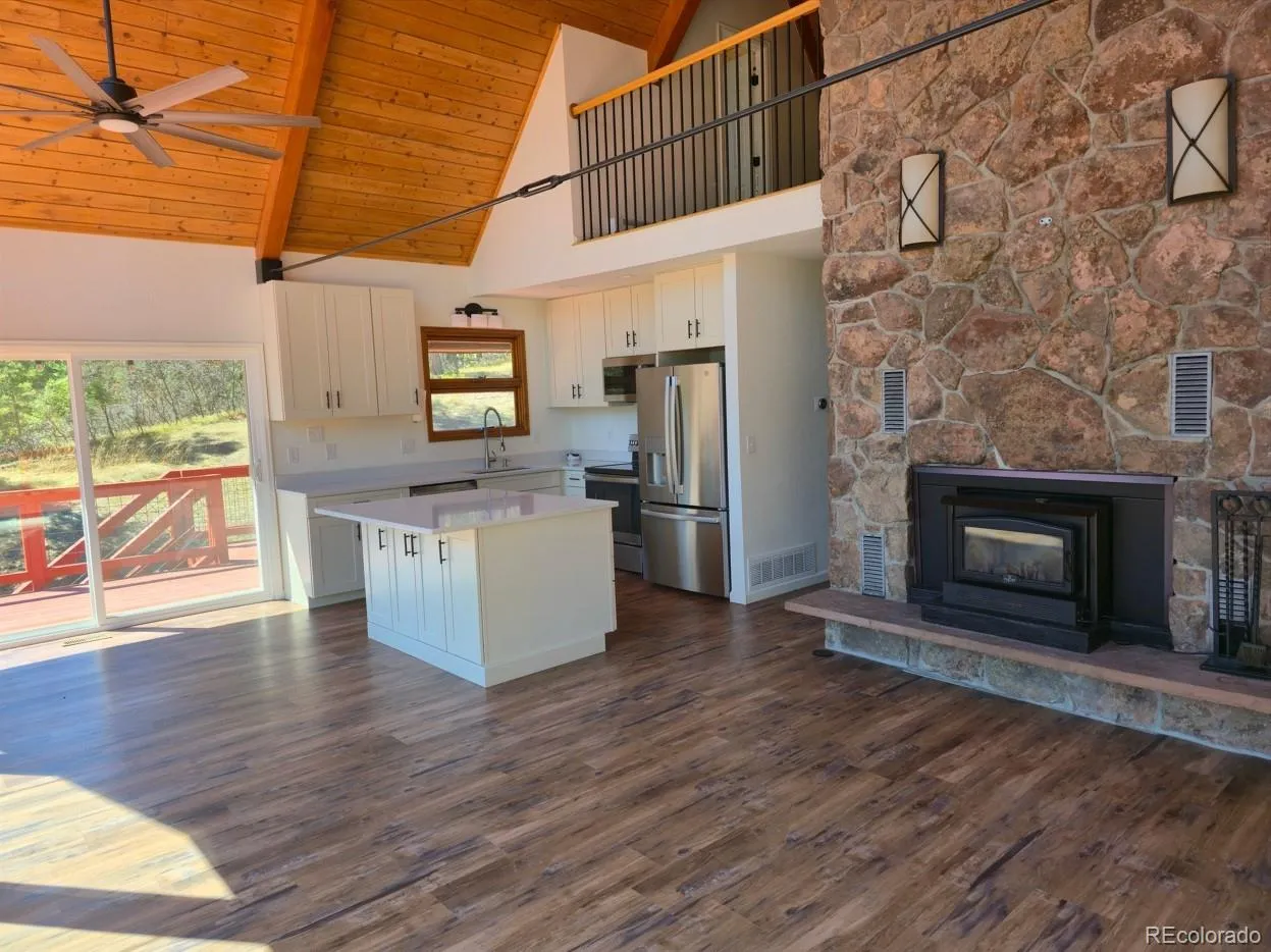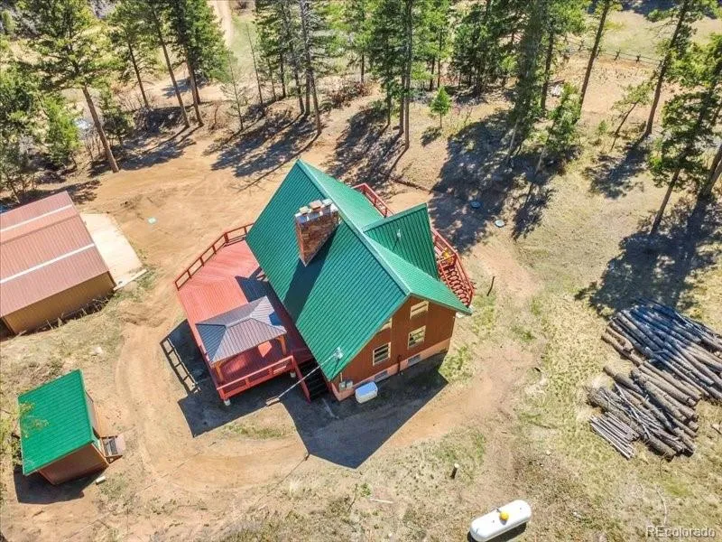 Modern A-Frame mountain retreat on 6 acres backing Pike National Forest, abundant wildlife, and unmatched privacy!!! Bordering Pike National Forest and set on 6 private acres, this fully updated A-frame retreat offers a rare blend of modern design and Colorado mountain living. This one is the FIRST property that backs up to Pike and 100’s of miles of restricted land. Offering hiking, climbing, camping, four wheeling, horseback riding and wild life watching. World class fishing, canoeing and dirt-biking in Deckers, GMU 51 hunting and much more. DTC in 25 min and Castle Rock in 15. Defined by a dramatic wall of glass, vaulted wood ceilings, and an open-concept great room filled with natural light, the home is designed to bring the outdoors in. The renovated kitchen features quartz countertops, updated cabinetry, and a spacious island that anchors the main living space. Everything is updated! The flexible layout includes a loft overlooking the main living area, updated bathrooms, and a finished lower level for additional living, recreation, or work-from-home space. Additional features include a tankless water heater, backup generator, natural fireplaces, and a detached 4-car garage with wood-burning stove—perfect for vehicles, storage, or workshop use. Step outside to the expansive wraparound deck and take in peaceful forest views, frequent wildlife sightings, and unmatched privacy. Whether you’re seeking a full-time residence or a private mountain escape, this property delivers a unique combination of design, setting, and accessibility—just a short drive from the Denver metro area.