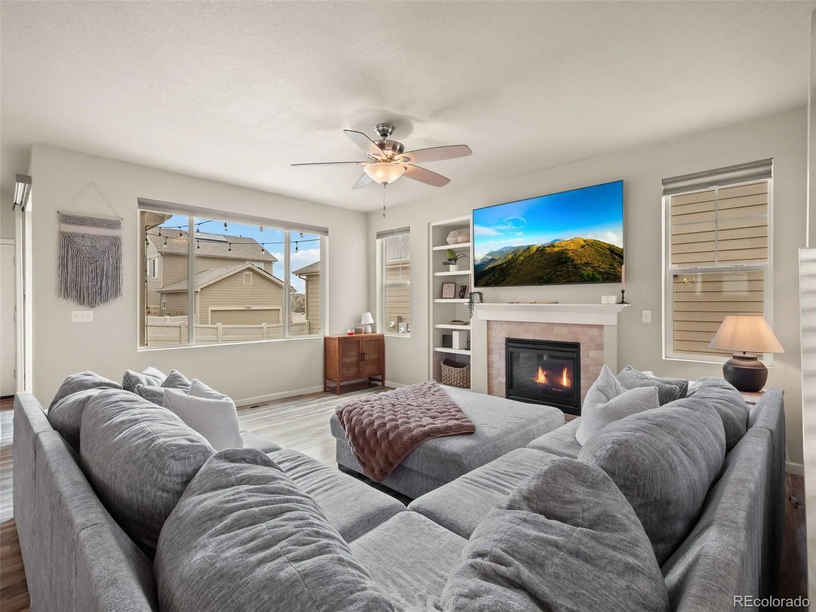 This beautiful 2-story Schoenberg Farms home is move in ready! This one checks all the boxes with newer interior paint, newer carpeting, laminate wood flooring, new Hunter Douglas blinds and updated lighting. Wide open floor plan with gorgeous kitchen with stainless appliances, gas range, casual seating and a huge kitchen island. There’s a defined dining space, large family room with a cozy fireplace and functional built ins. The main level also offers an office/den and 3/4 bath for functional living. Easy to entertain with access to the fully fenced back yard, new custom concrete patio with gas hook up for grilling and brand new sod. Head upstairs to the gorgeous, big primary suite with mountain views! Huge primary bath with dual vanities, large soaking tub, beautiful, updated walk in shower and walk in closet with custom organizer to die for! Two additional bedrooms with large windows offering beautiful ambient light, a full bath and a conveniently located laundry room round out the wonderful upper level. The finished basement is the ultimate teenage lair or man cave with two points of egress and a gorgeous, contemporary 3/4 bath. The home has great closets and functional storage throughout; even a sizable crawlspace provides excellent opportunity to keep things neat and tidy. Schoenberg Farms is conveniently located near shopping, dining, highway access and essential services. This home is mere steps from the private neighborhood park and Faversham Park with basketball courts, a lake to enjoy and other fun outdoor activities. 2 car attached garage, washer and dryer, a security system give you the freedom to move in and just enjoy. Don’t miss out on this gem.