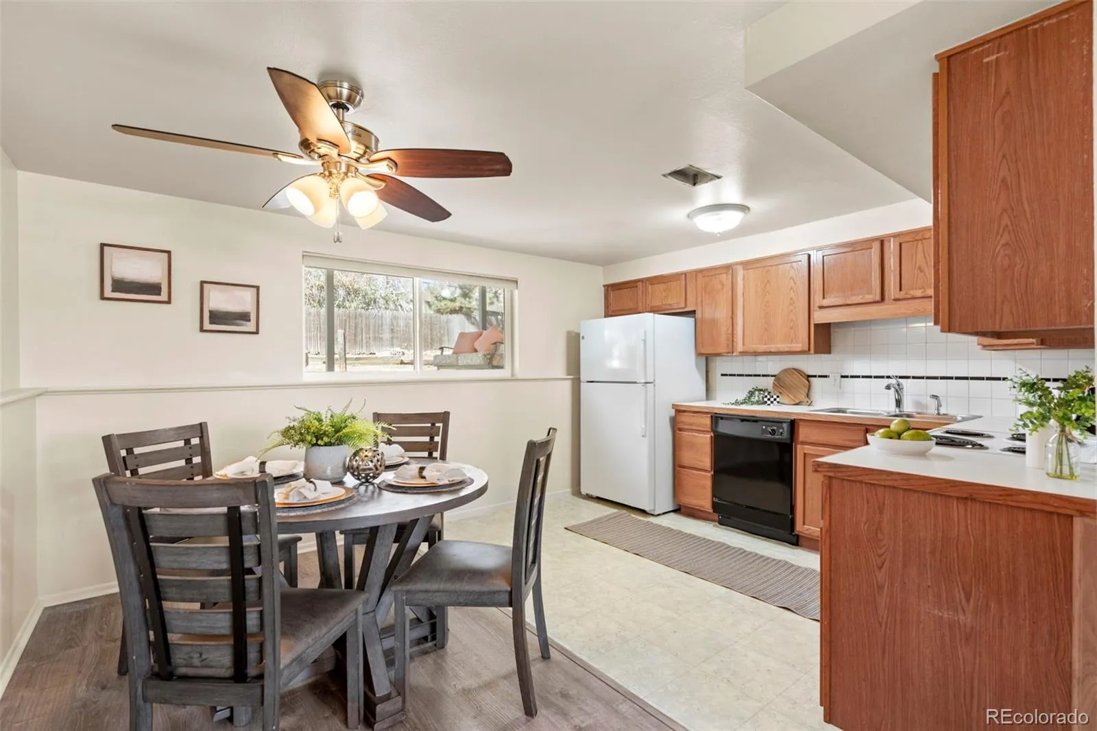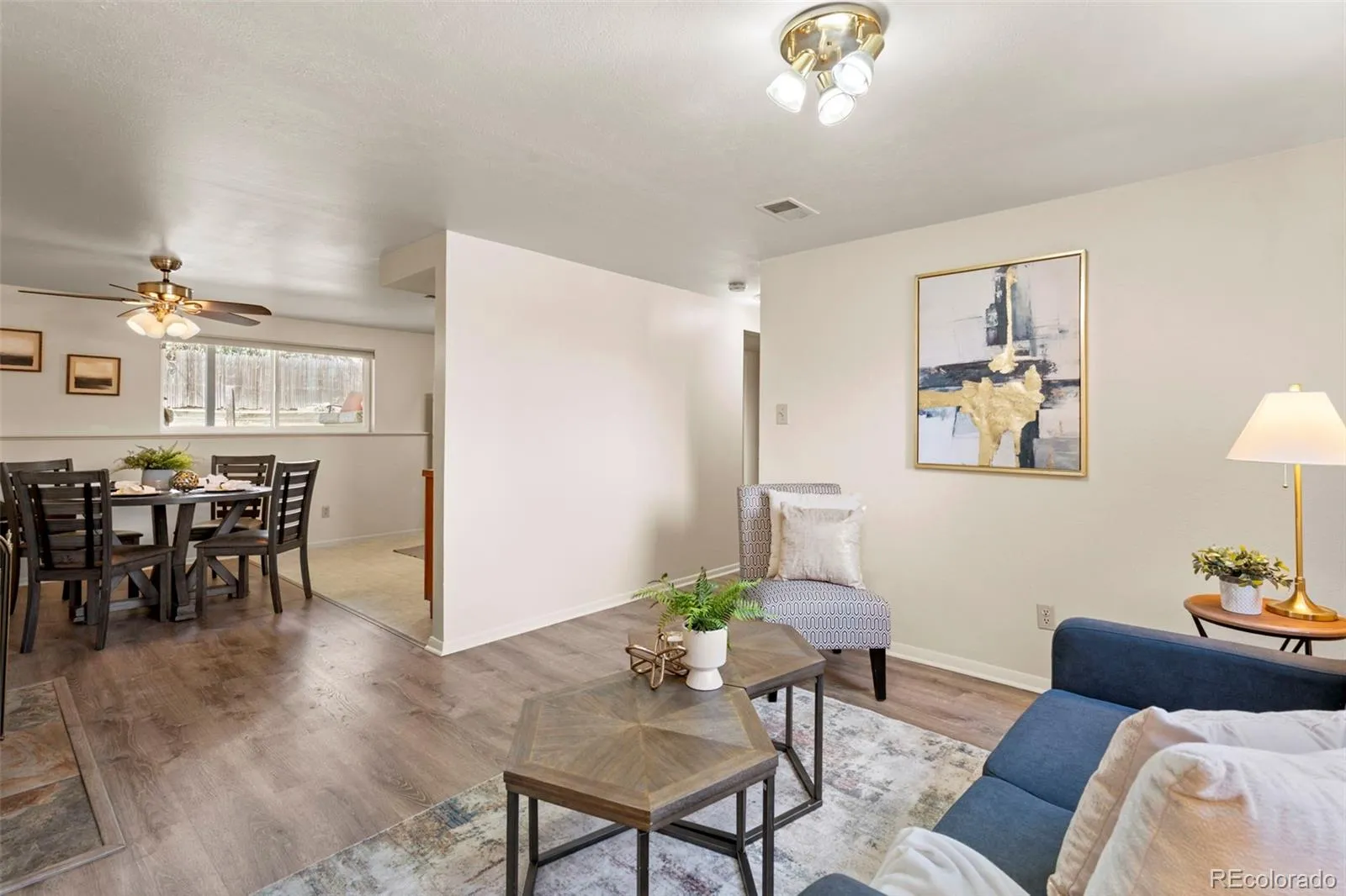 WELCOME TO THIS CLASSIC 1961 ARVADA GEM—a beautifully maintained 3 bedroom, 2 bath home perfectly positioned on a corner lot with incredible southern exposure! From the covered entryway, step into an open, light and bright living space filled with character and warmth! The spacious living room and dining area with large windows bringing in the sunshine is great for hosting gatherings around a brick wood-burning fireplace, while gleaming hardwood floors flow seamlessly throughout much of the main level! Two spacious bedrooms and a full bathroom complete the main floor! The garden level family room provides flexible space for relaxing, working or hosting movie nights with a convenient breakfast nook and full, open kitchen! The 3rd bedroom and a home office(or 4th bedroom) with a sparkling clean 3/4 bath and walk-in shower add to the walk out lower level, which includes the full size washer and dryer! An evaporative cooler helps keep the house comfortable before you step outside to a covered back patio overlooking an expansive fenced yard! Ideal for gardening with tons of room for the kids and dogs to run & play, all while enjoying entertaining your friends and family for those fun summer barbecues! You’ll appreciate the detached one-car garage and extra shed for storage and lawn care! Generous driveway for off street parking! Located just 5 minutes from Olde Town Arvada, enjoy quick access to beloved local spots like Arvada Tavern, School House Kitchen, Arvada Train Track & Flour Mills, Denver Beer Company & Kline’s Beer Hall, Hunter Bay Coffee Roasters, Home Grown Tap & Dough, Bluegrass Coffee & Bourbon Bar, Rheinlander German Bakery, Strawberry Vines Winery and Bluegrass Coffee & Bourbon Bar! Enjoy the arts at the Arvada Center, recreation at the Apex Center, Yankee Doodle & McIlvoy Parks and Playgrounds, Indian Tree Golf Course or take a short trip to the mountains with easy I-70 access! Experience living where timeless charm meets unbeatable location! OPEN SAT 1-3